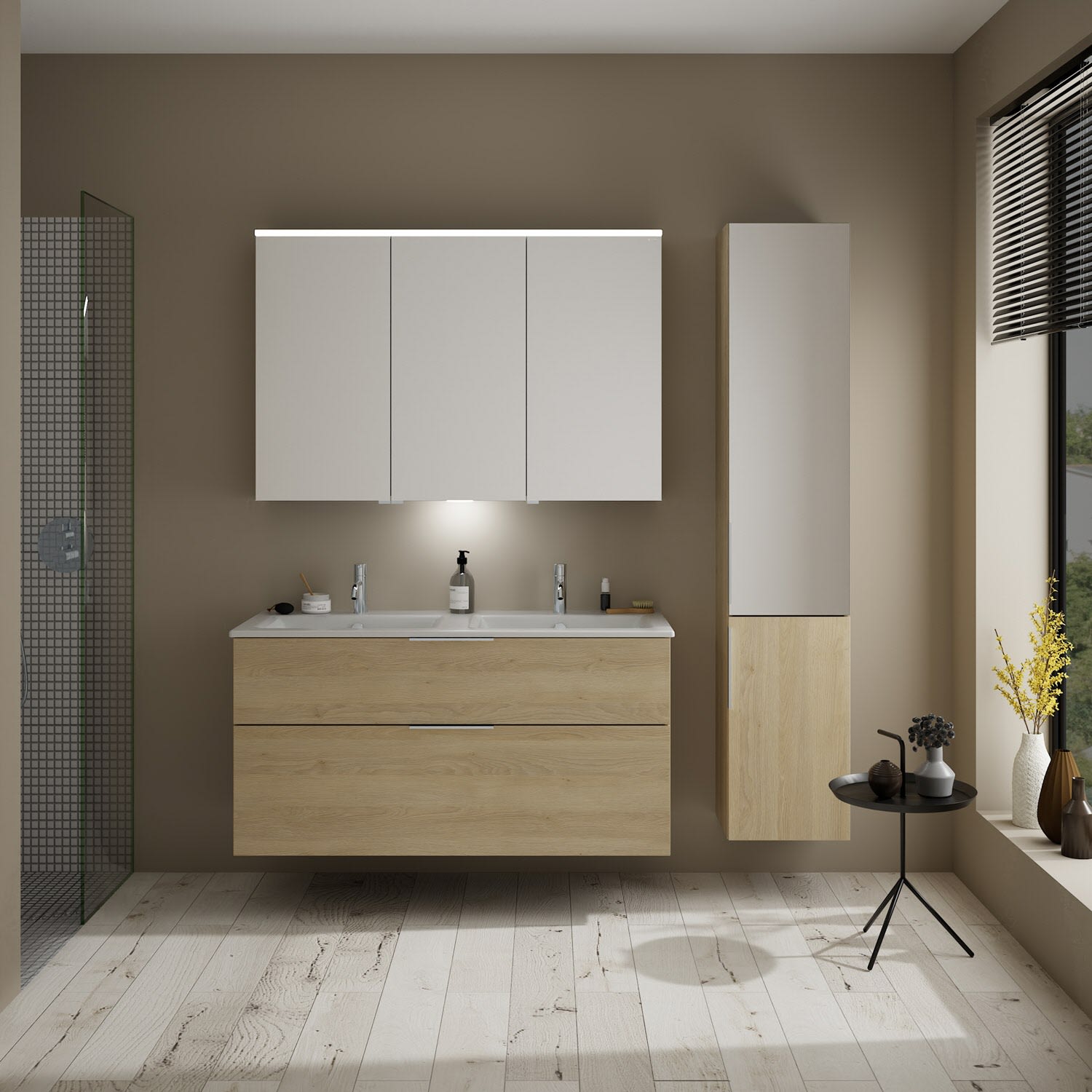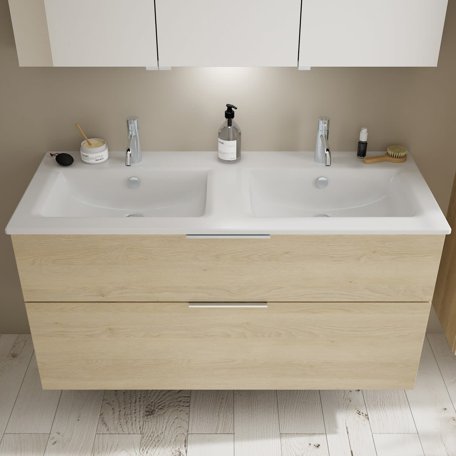 burgbad Eqio Waschtischkombination mit Keramik-Doppelwaschtisch Slim, 122 cm, mit Griff G0146