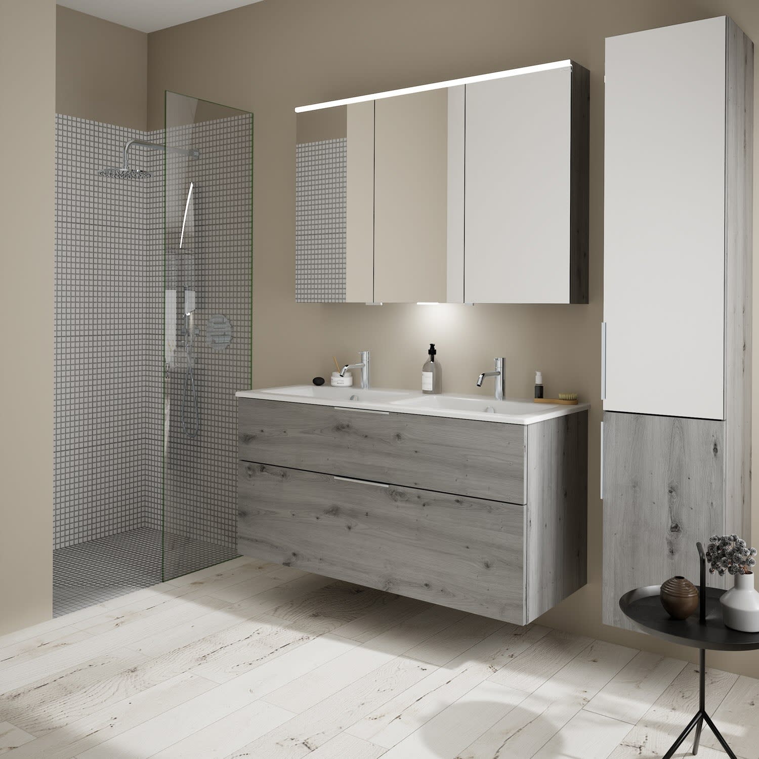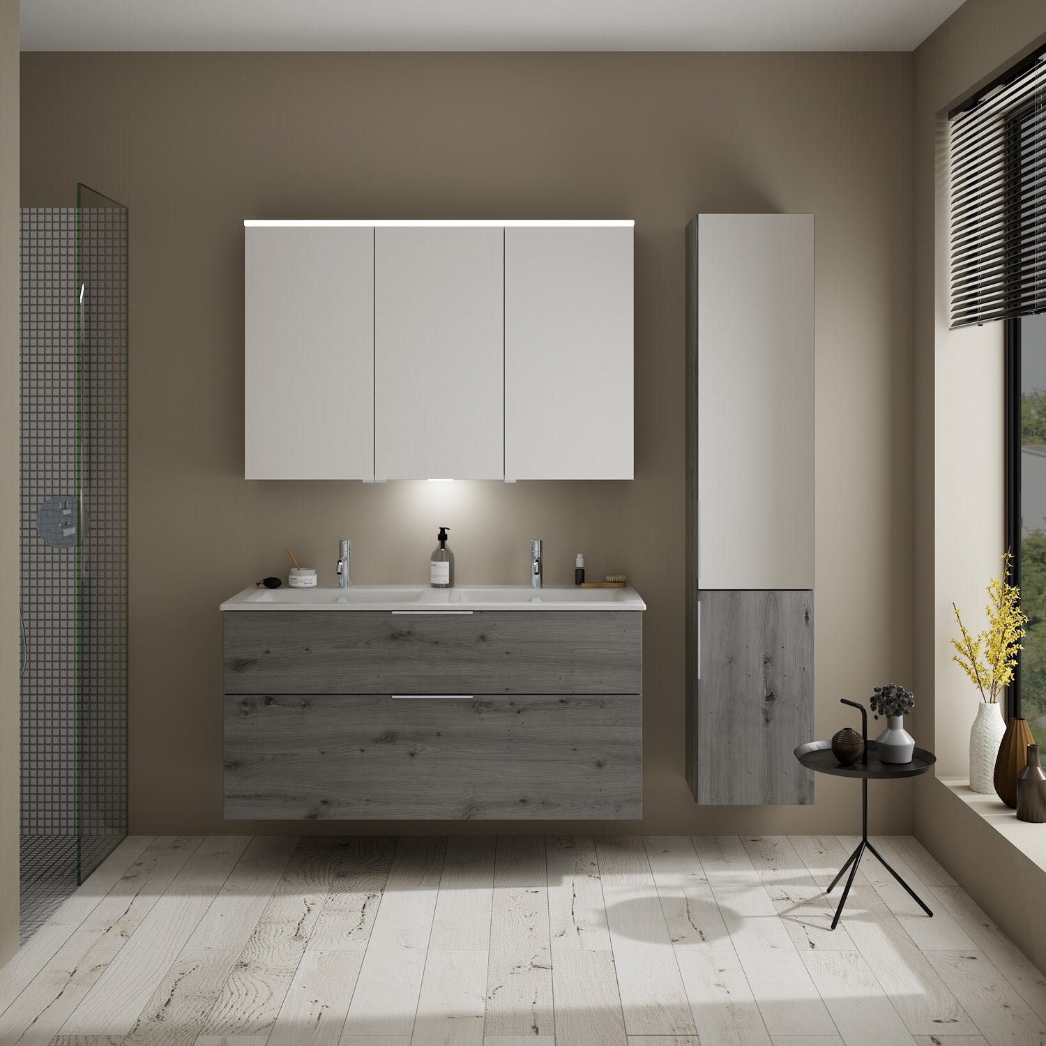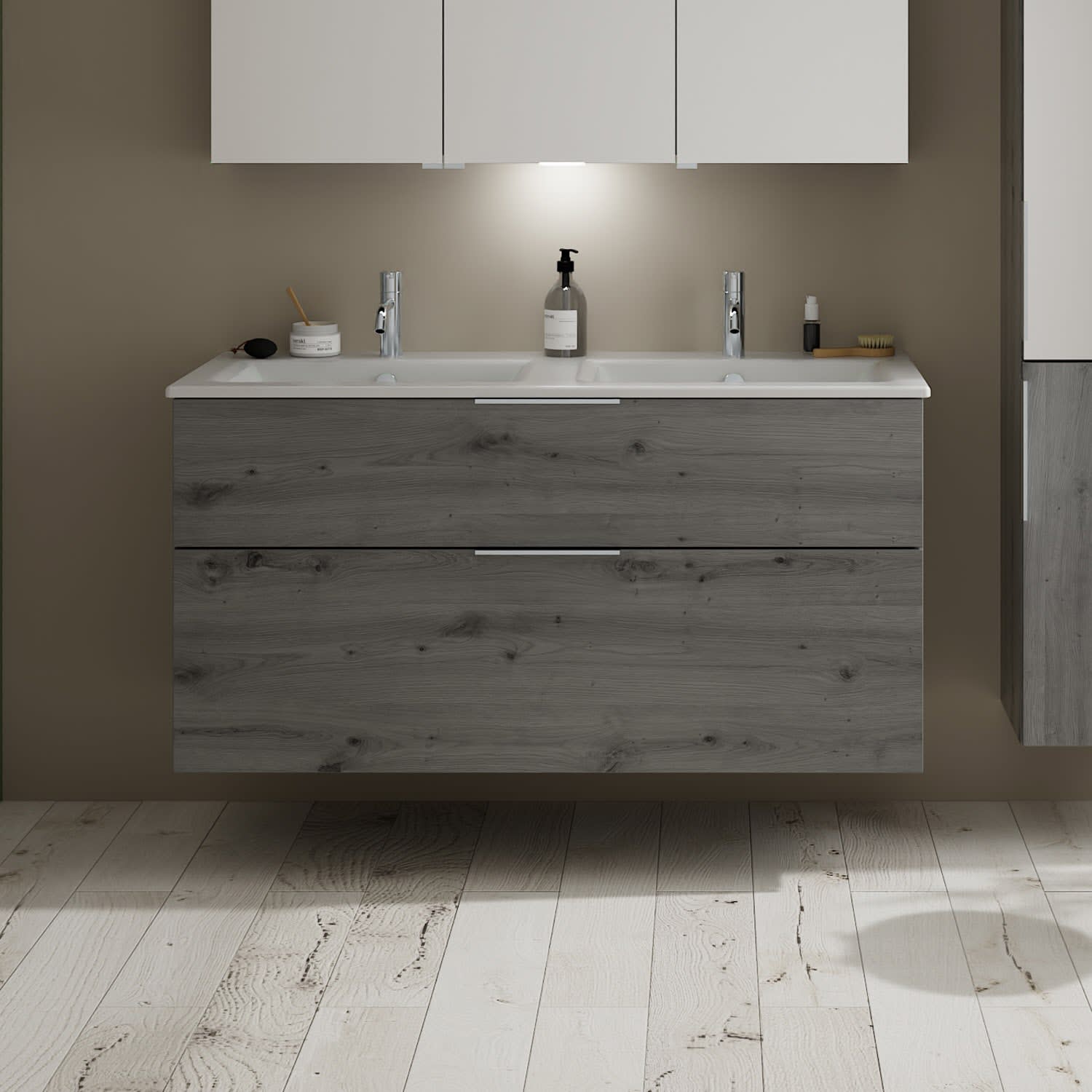 burgbad Eqio Waschtischkombination mit Keramik-Doppelwaschtisch Slim, 122 cm, mit Griff G0146