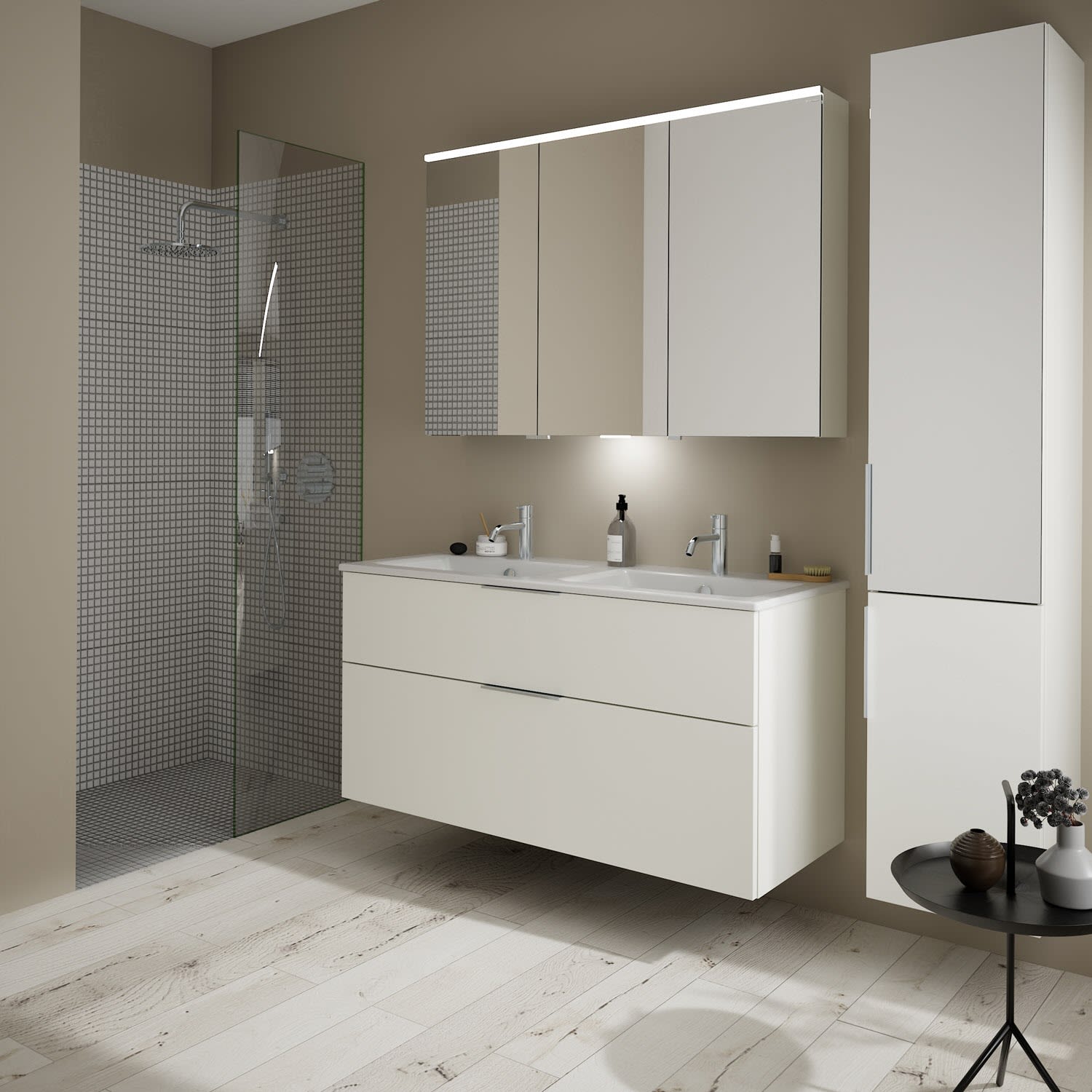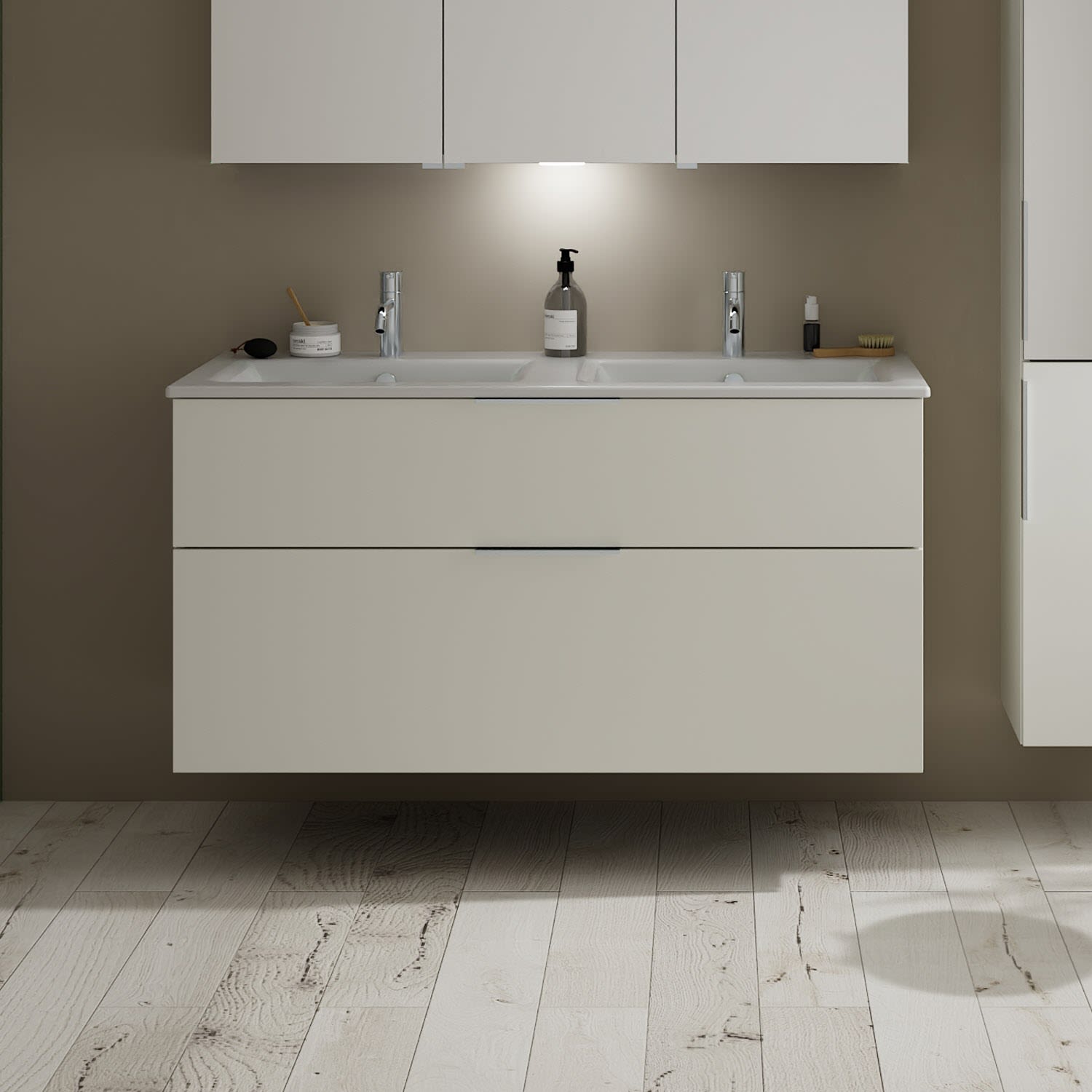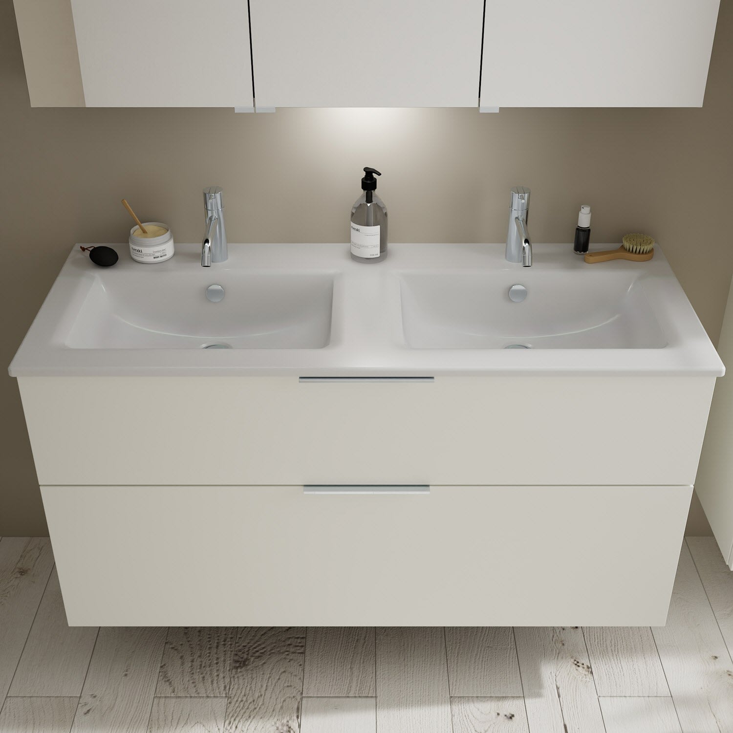 burgbad Eqio Waschtischkombination mit Keramik-Doppelwaschtisch Slim, 122 cm, mit Griff G0146