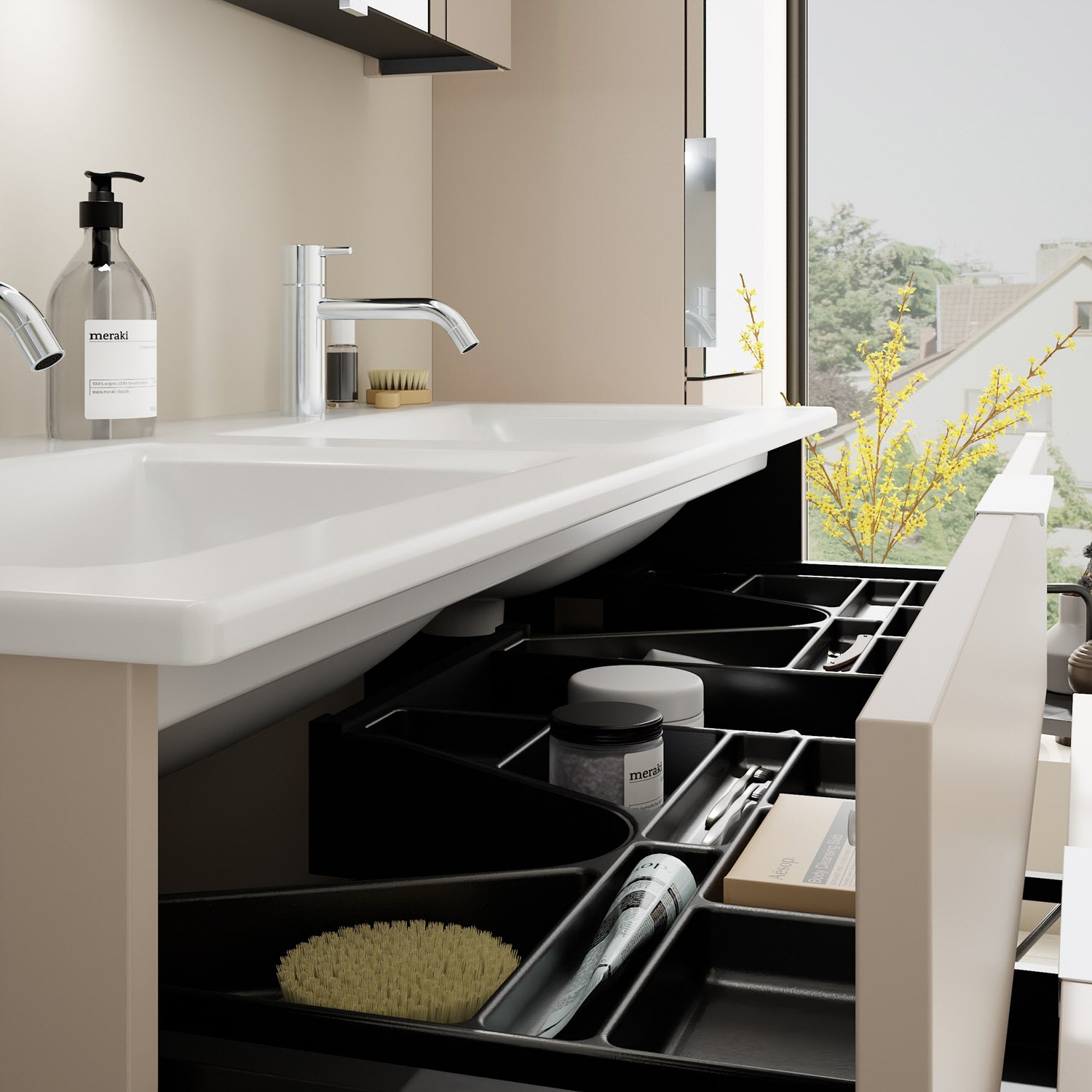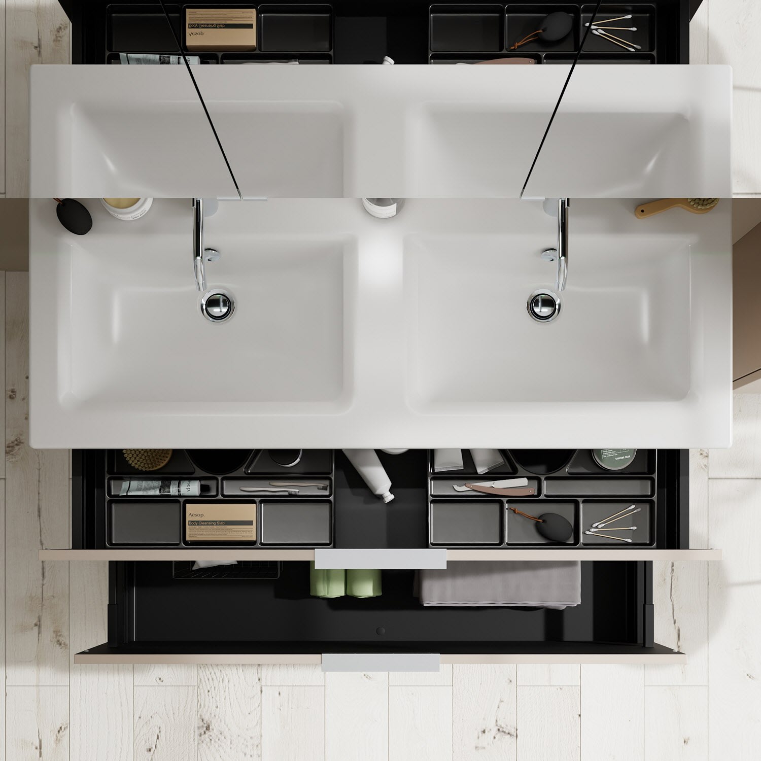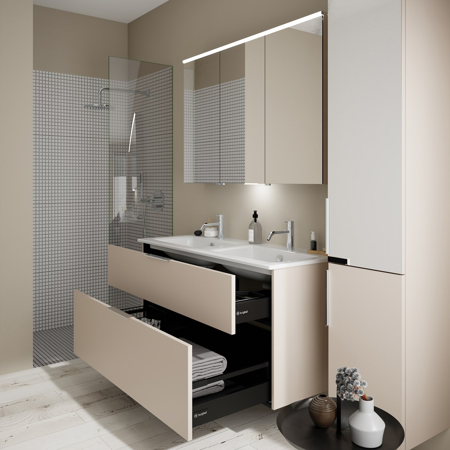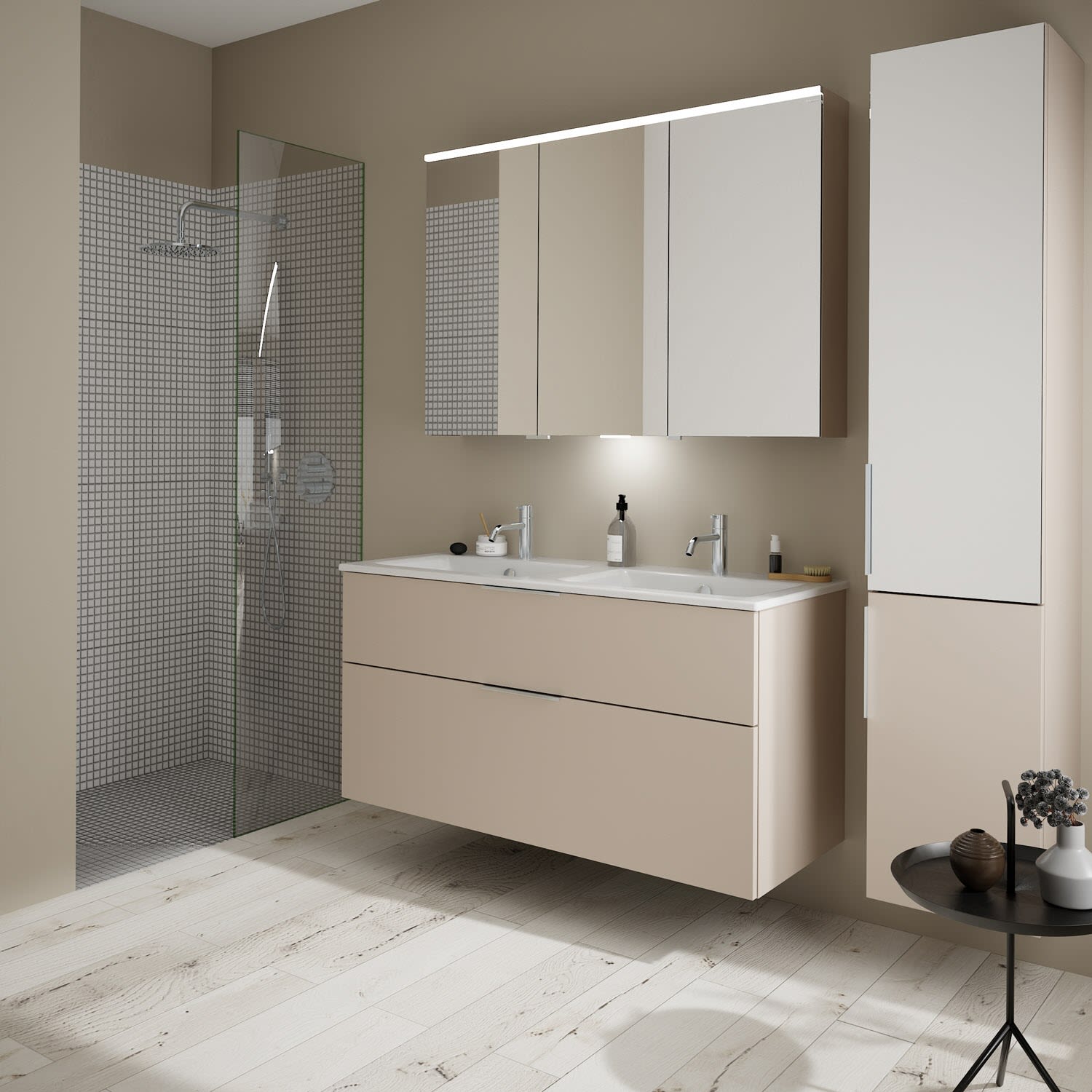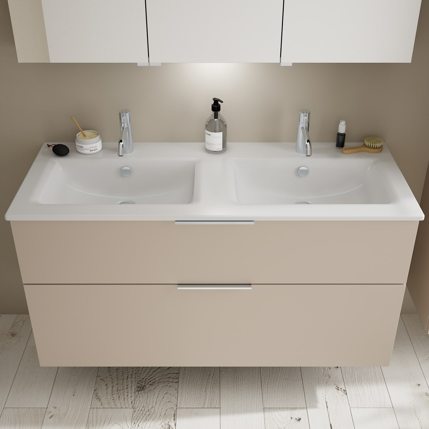burgbad Eqio Waschtischkombination mit Keramik-Doppelwaschtisch Slim, 122 cm, mit Griff G0146