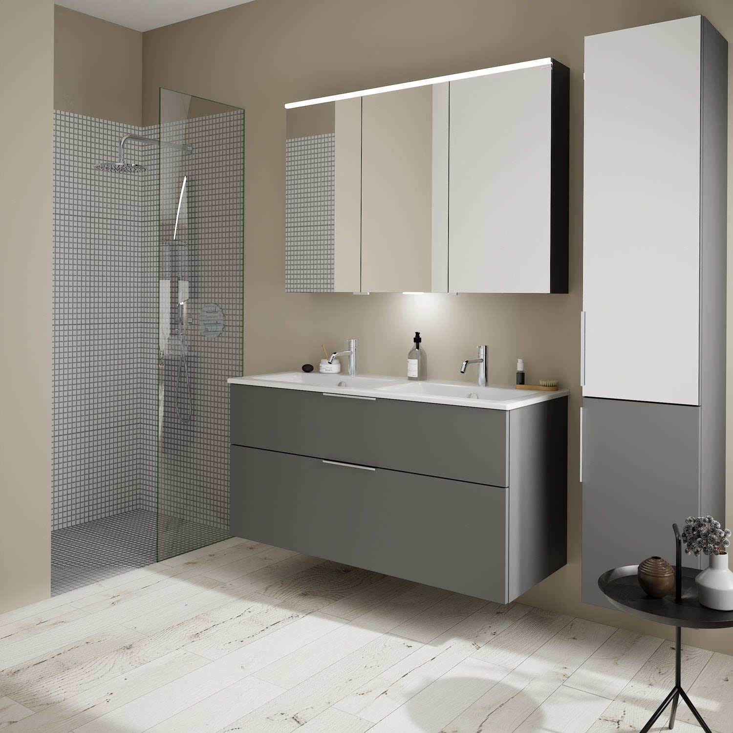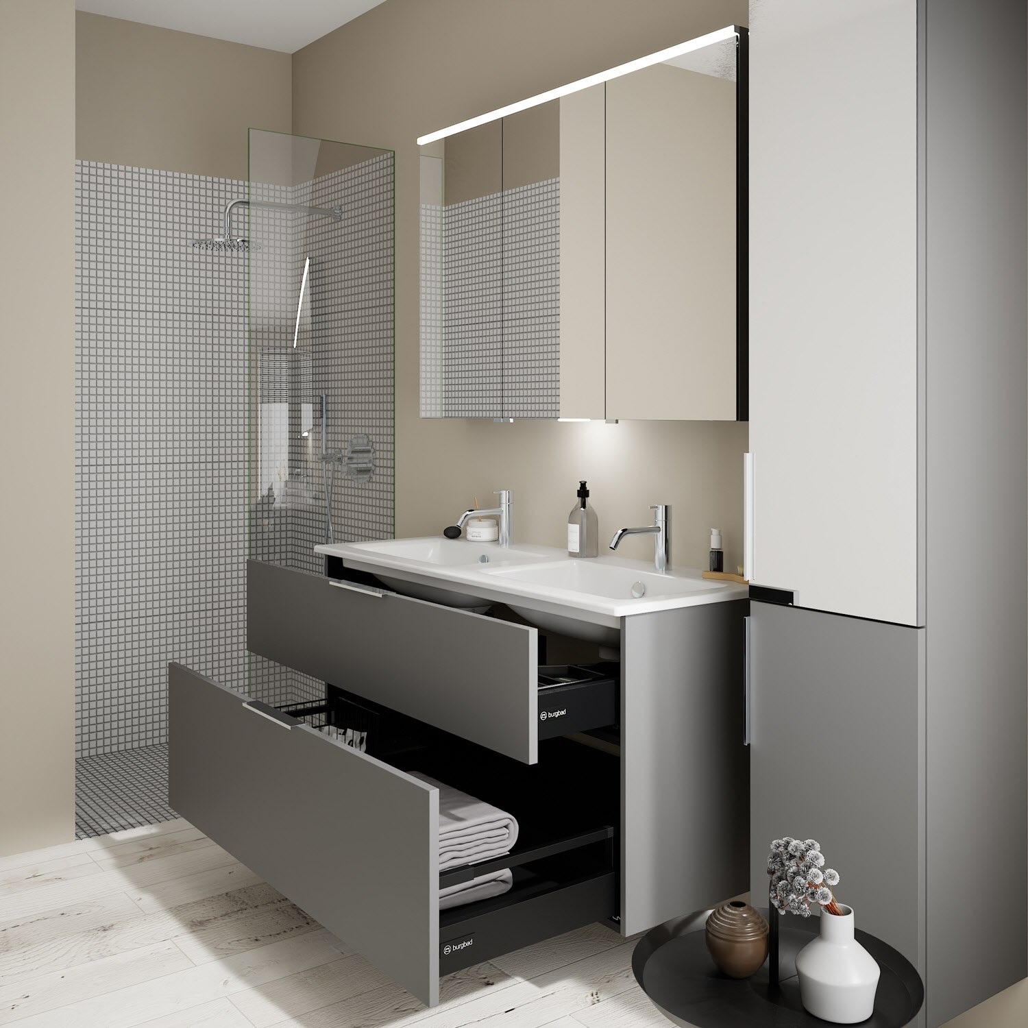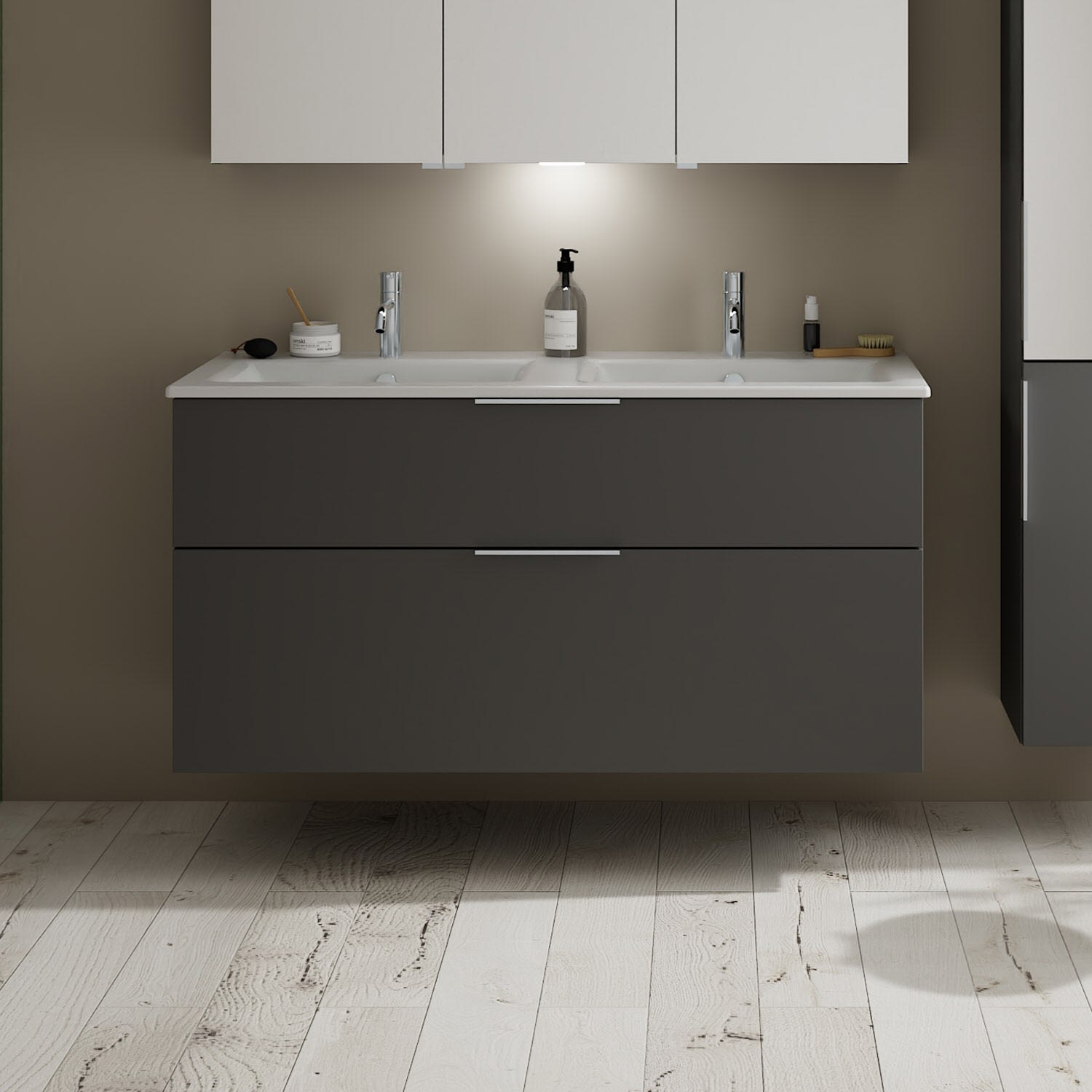 burgbad Eqio Waschtischkombination mit Keramik-Doppelwaschtisch Slim, 122 cm, mit Griff G0146