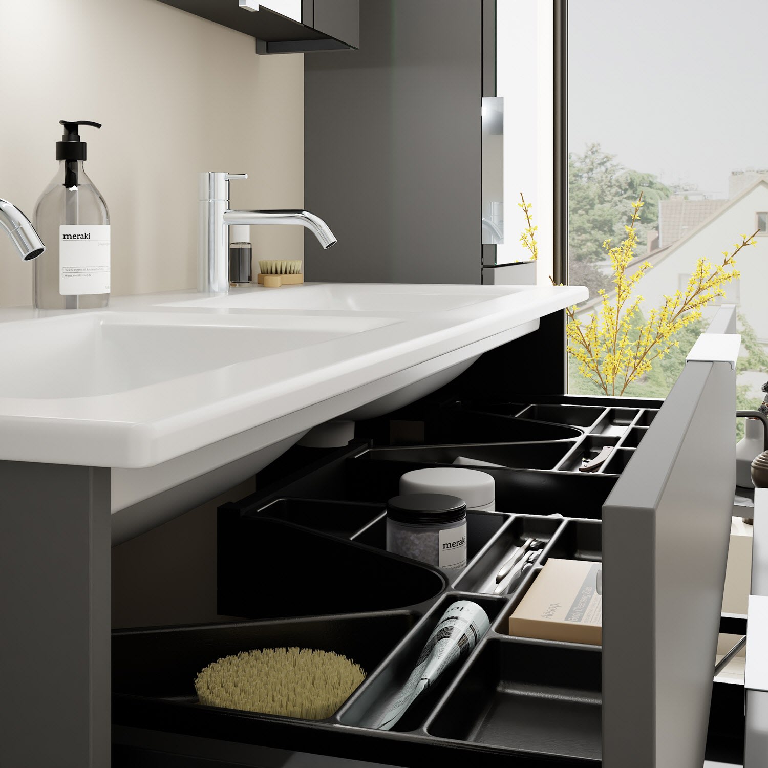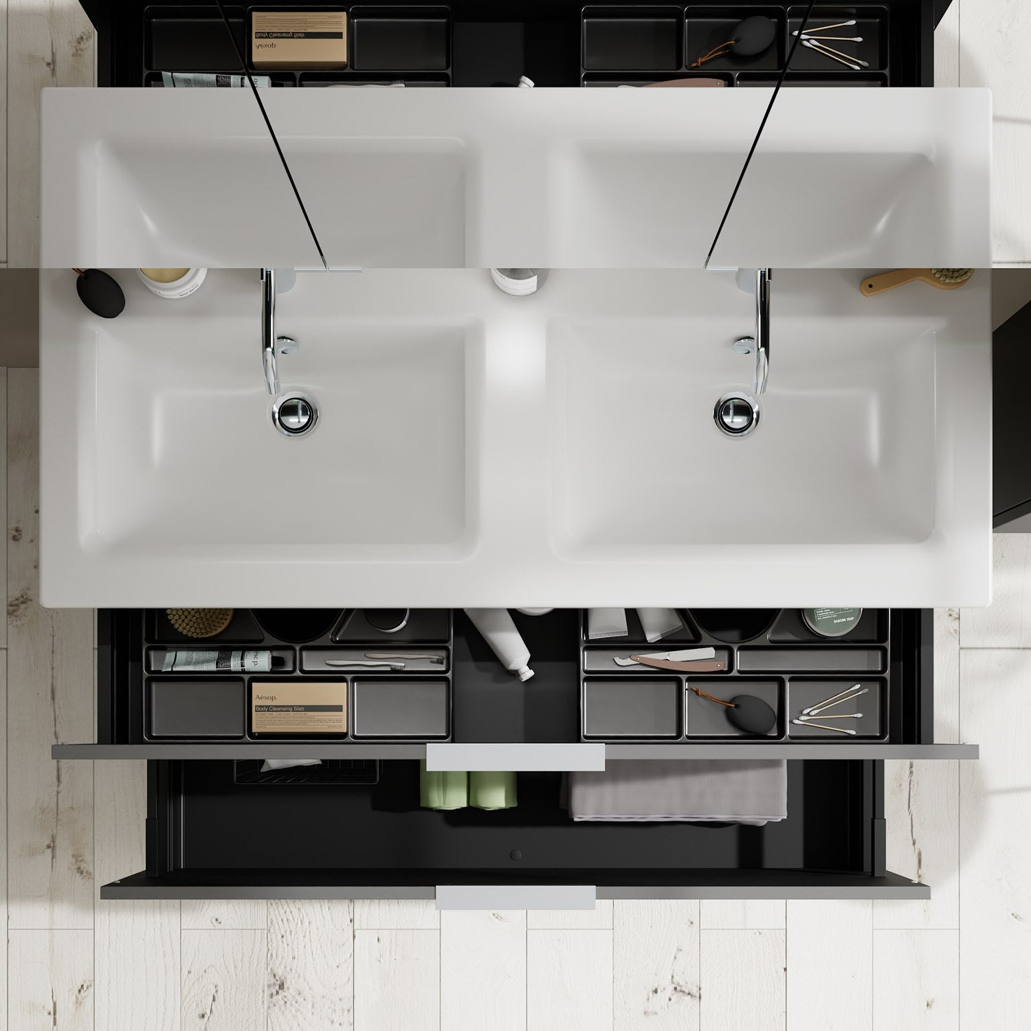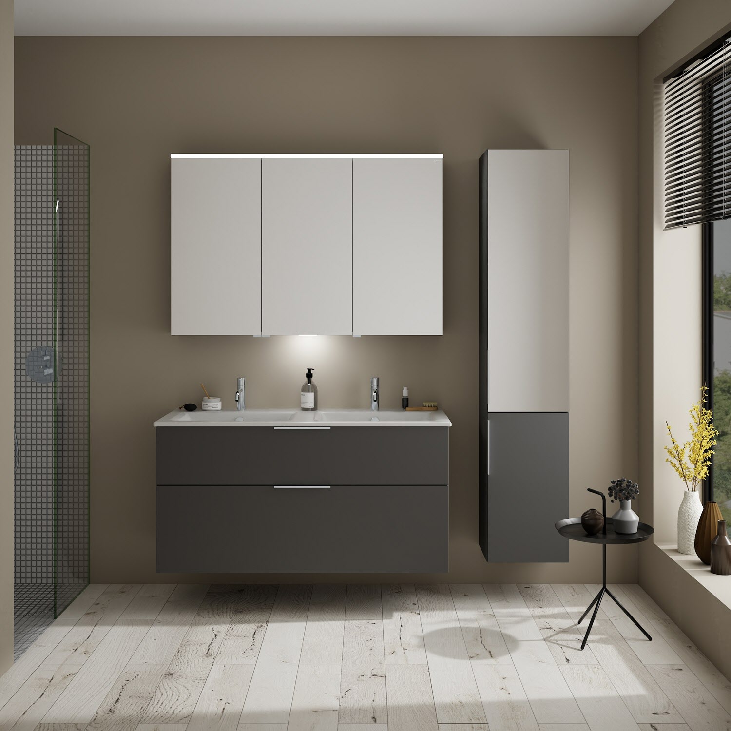 burgbad Eqio Waschtischkombination mit Keramik-Doppelwaschtisch Slim, 122 cm, mit Griff G0146