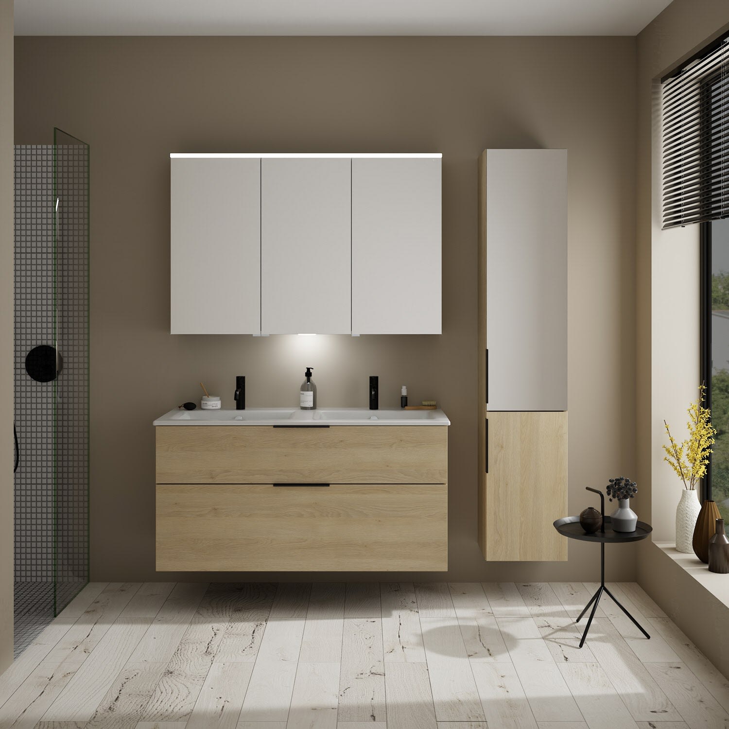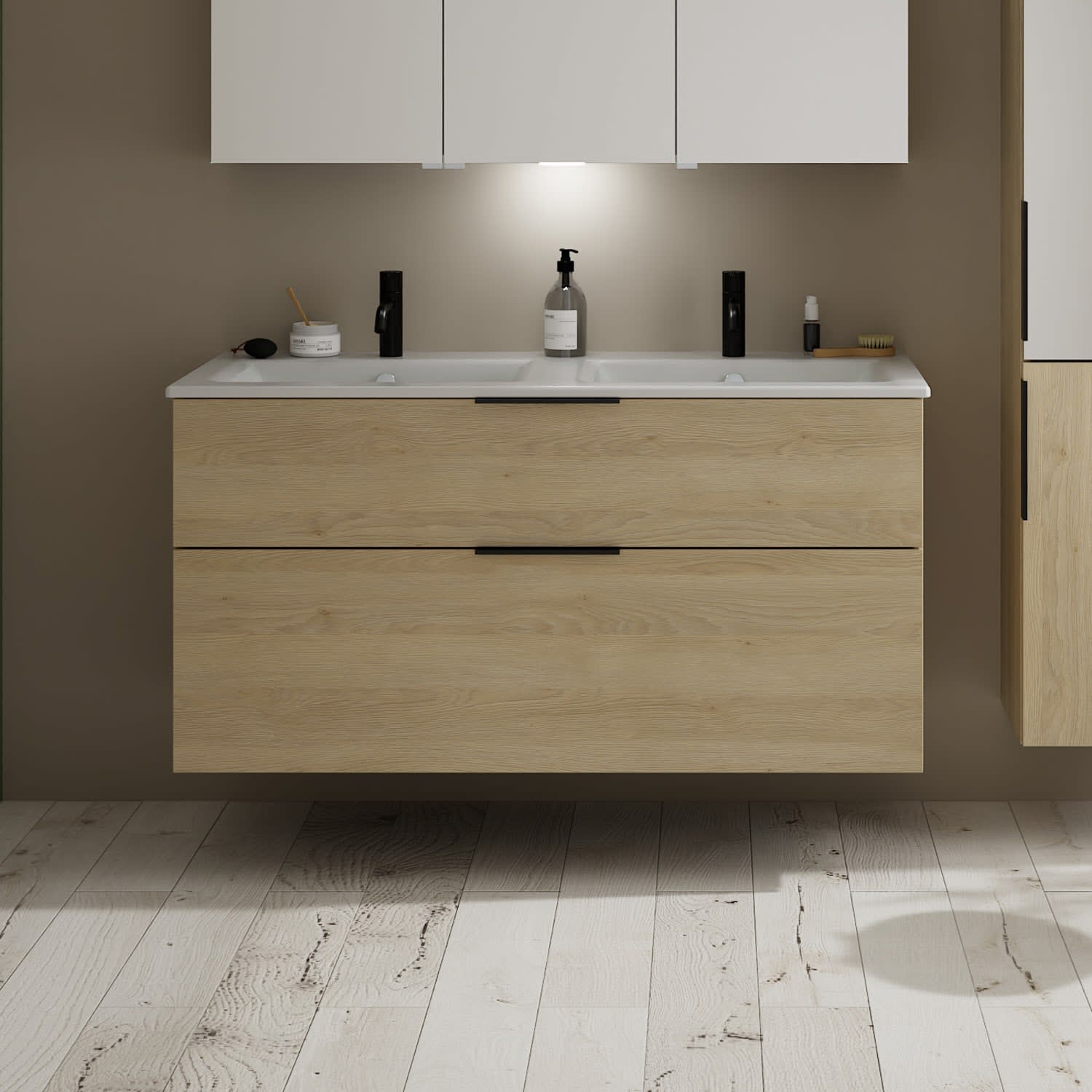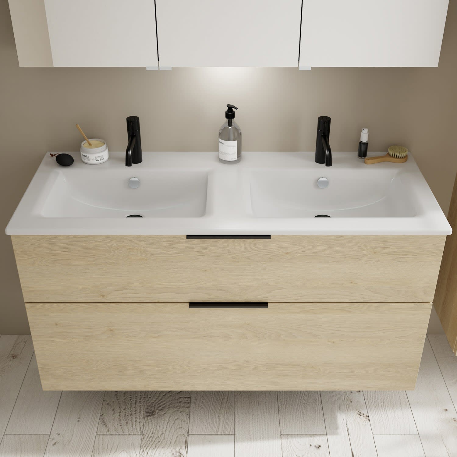 burgbad Eqio Waschtischkombination mit Keramik-Doppelwaschtisch Slim, 122 cm, mit Griff G0200