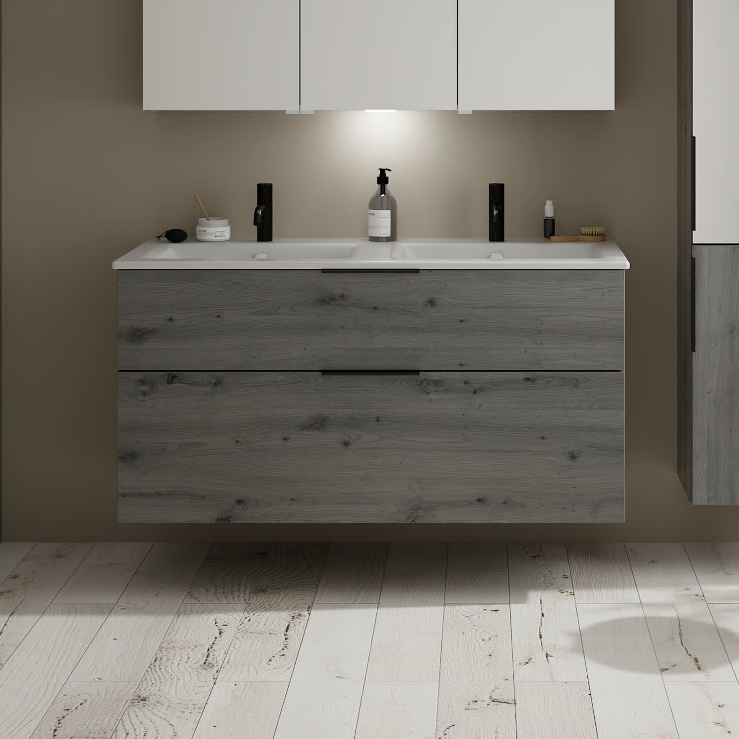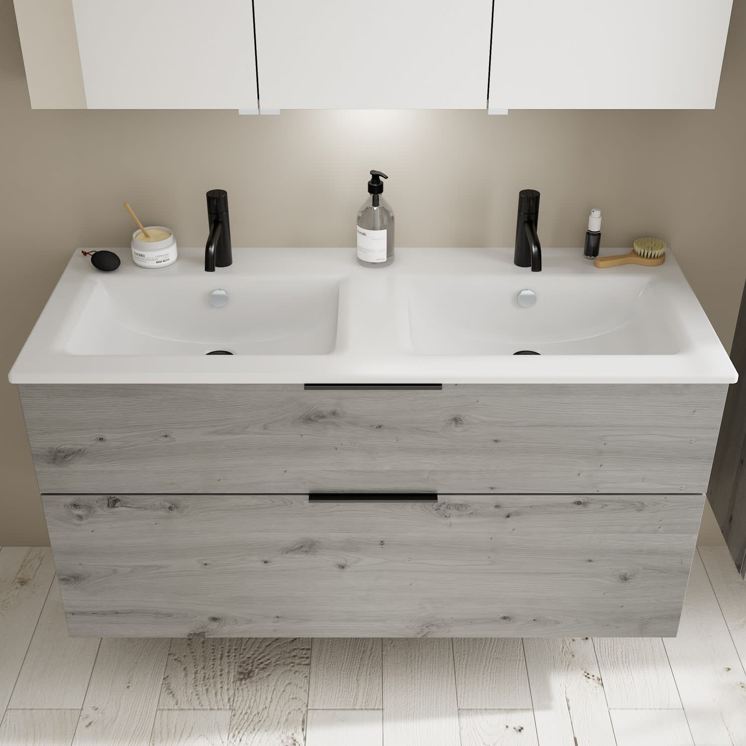 burgbad Eqio Waschtischkombination mit Keramik-Doppelwaschtisch Slim, 122 cm, mit Griff G0200