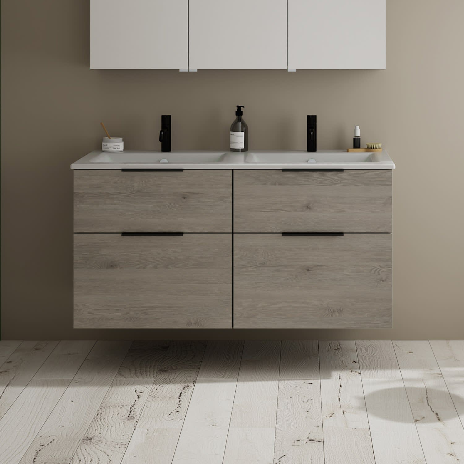 burgbad Eqio Waschtischkombination mit Keramik-Doppelwaschtisch Slim, 122 cm, mit Griff G0200