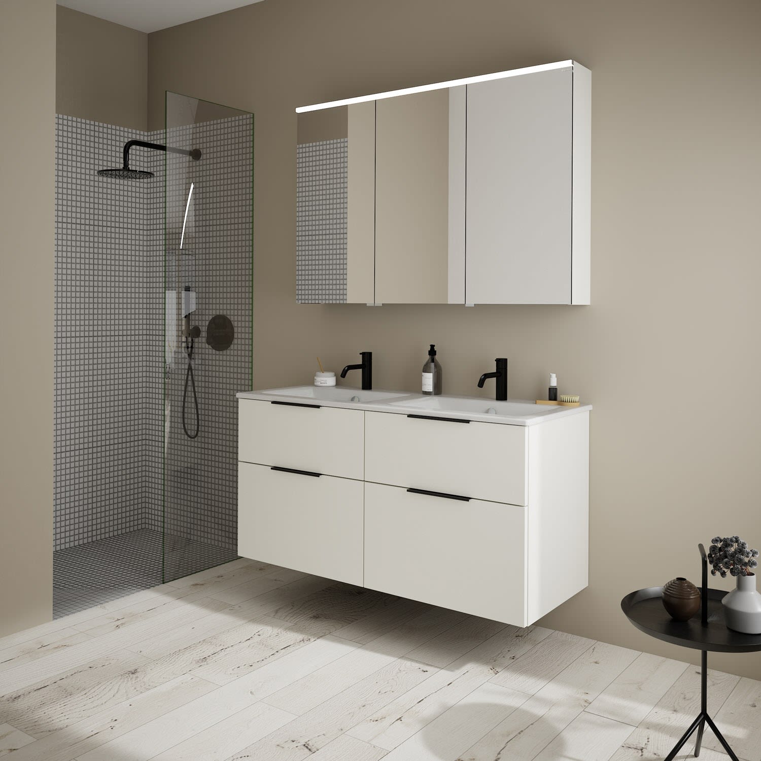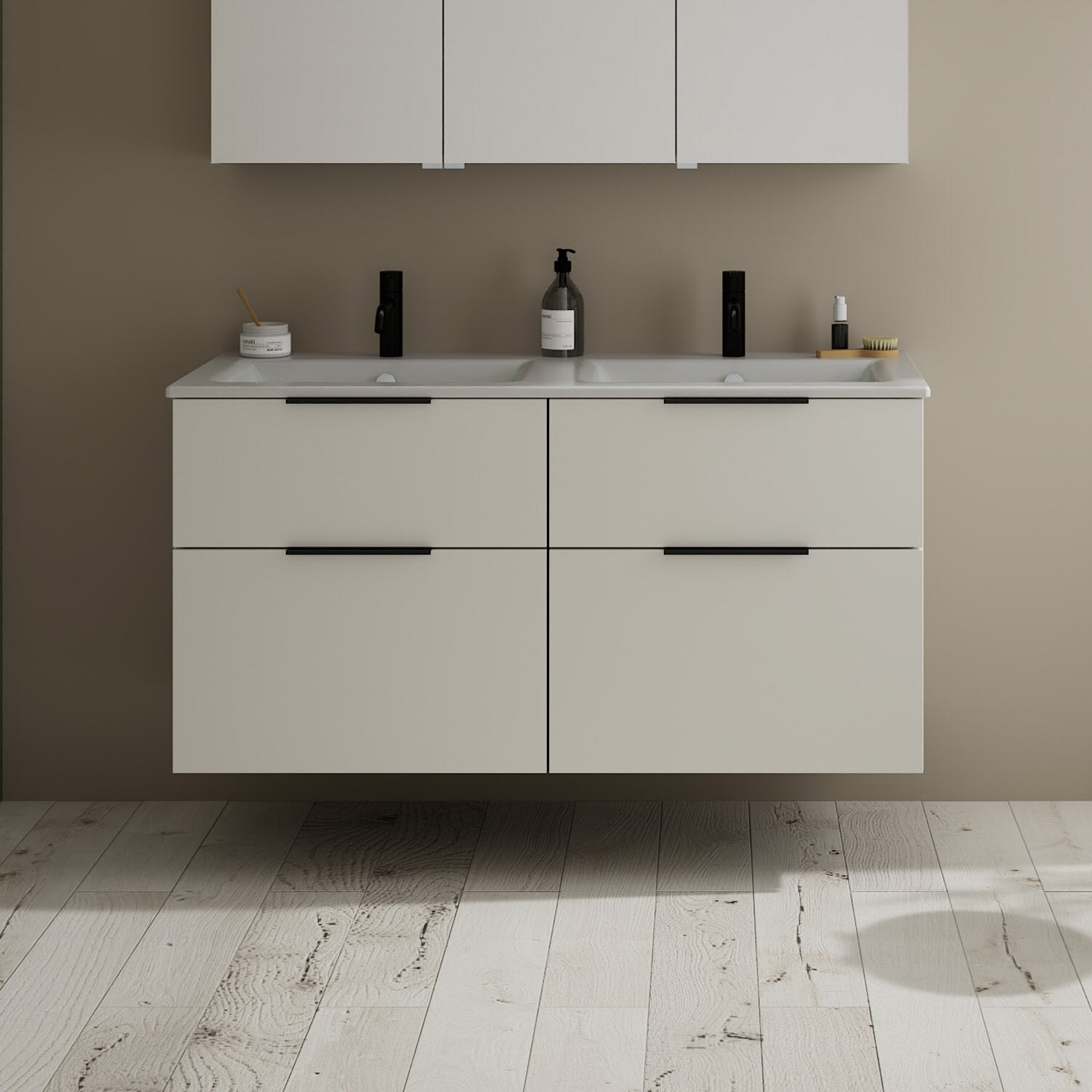 burgbad Eqio Waschtischkombination mit Keramik-Doppelwaschtisch Slim, 122 cm, mit Griff G0200