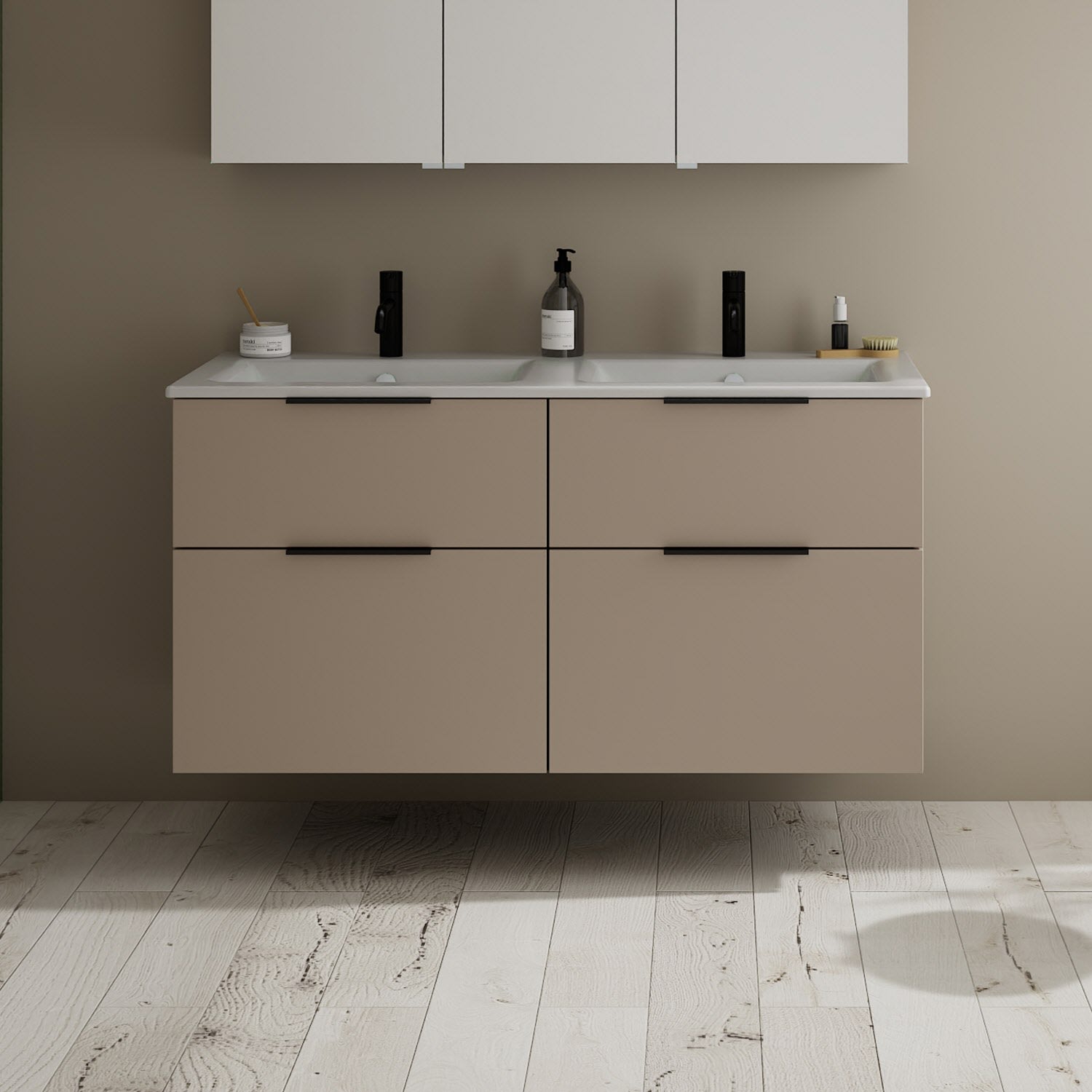 burgbad Eqio Waschtischkombination mit Keramik-Doppelwaschtisch Slim, 122 cm, mit Griff G0200