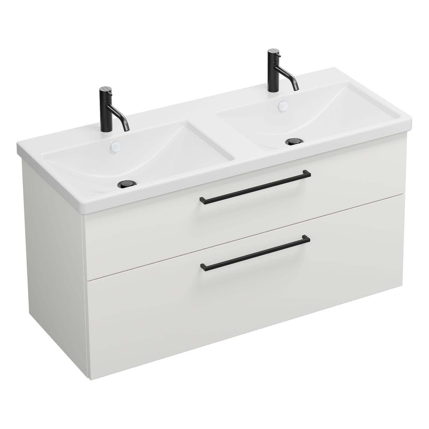 burgbad Eqio Waschtischkombination mit Keramik-Doppelwaschtisch, 123 cm, mit Stangengriff G0234