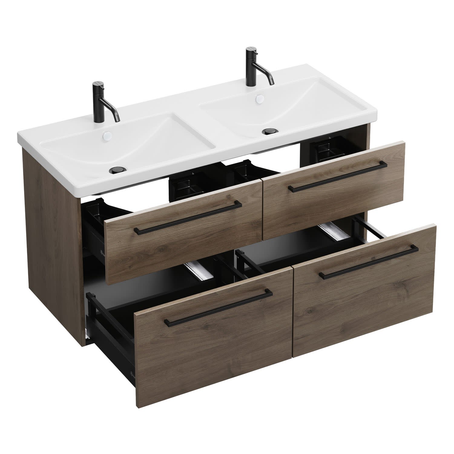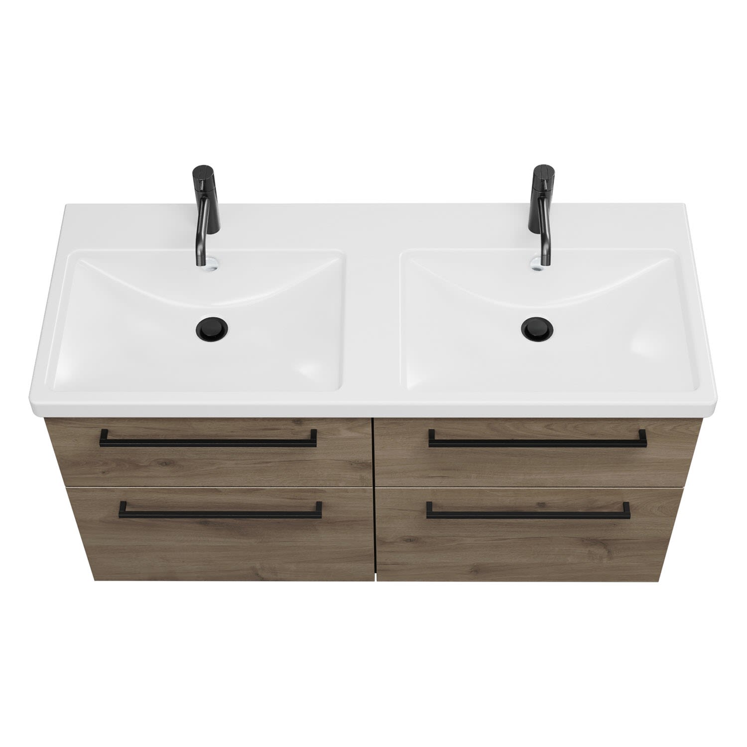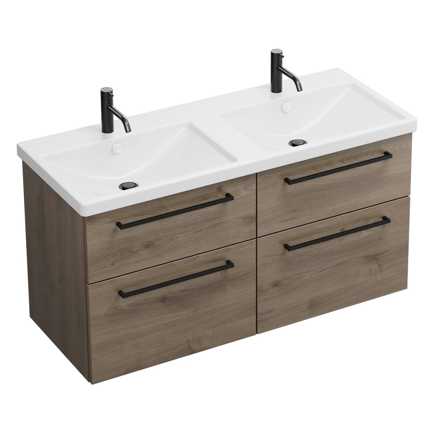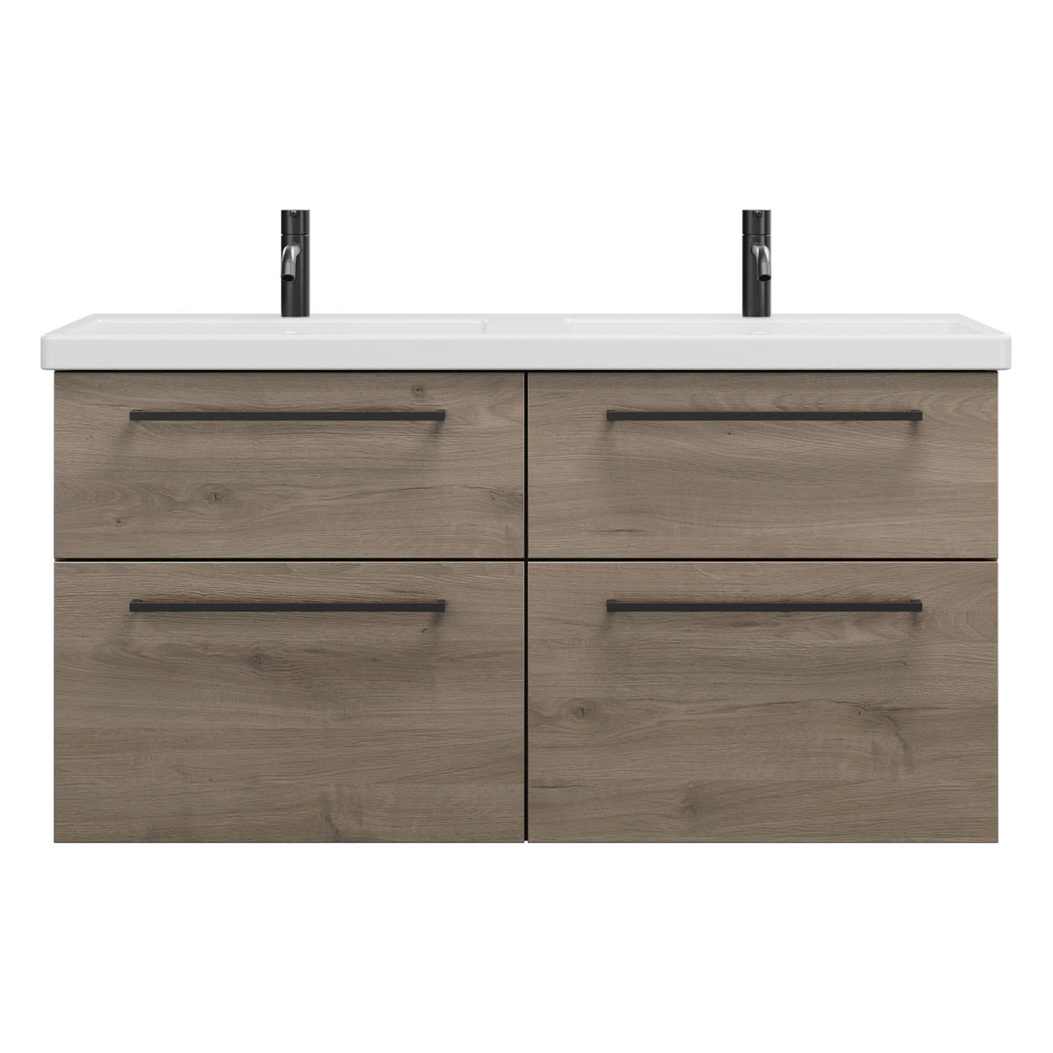 burgbad Eqio Waschtischkombination mit Keramik-Doppelwaschtisch, 123 cm, mit Stangengriff G0234