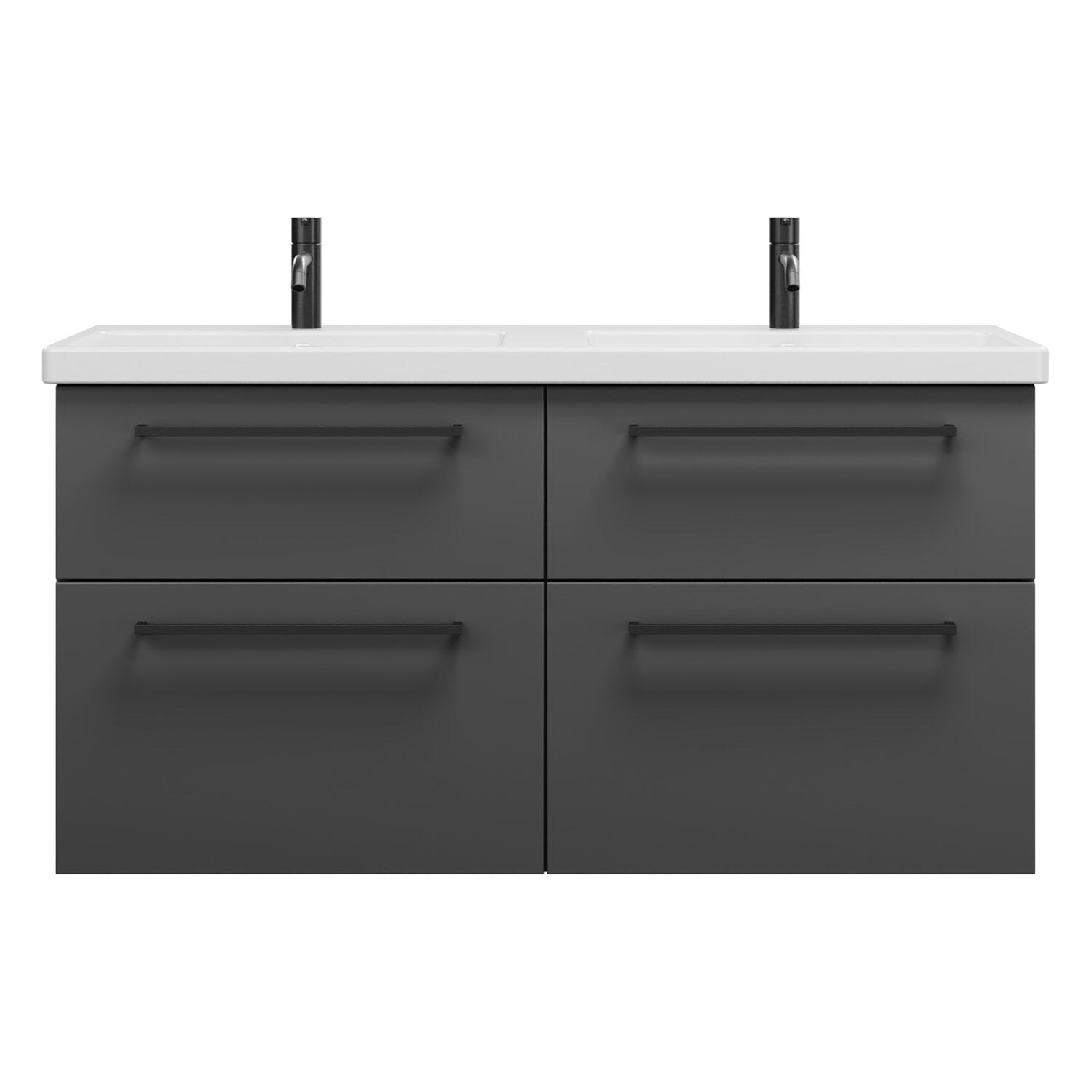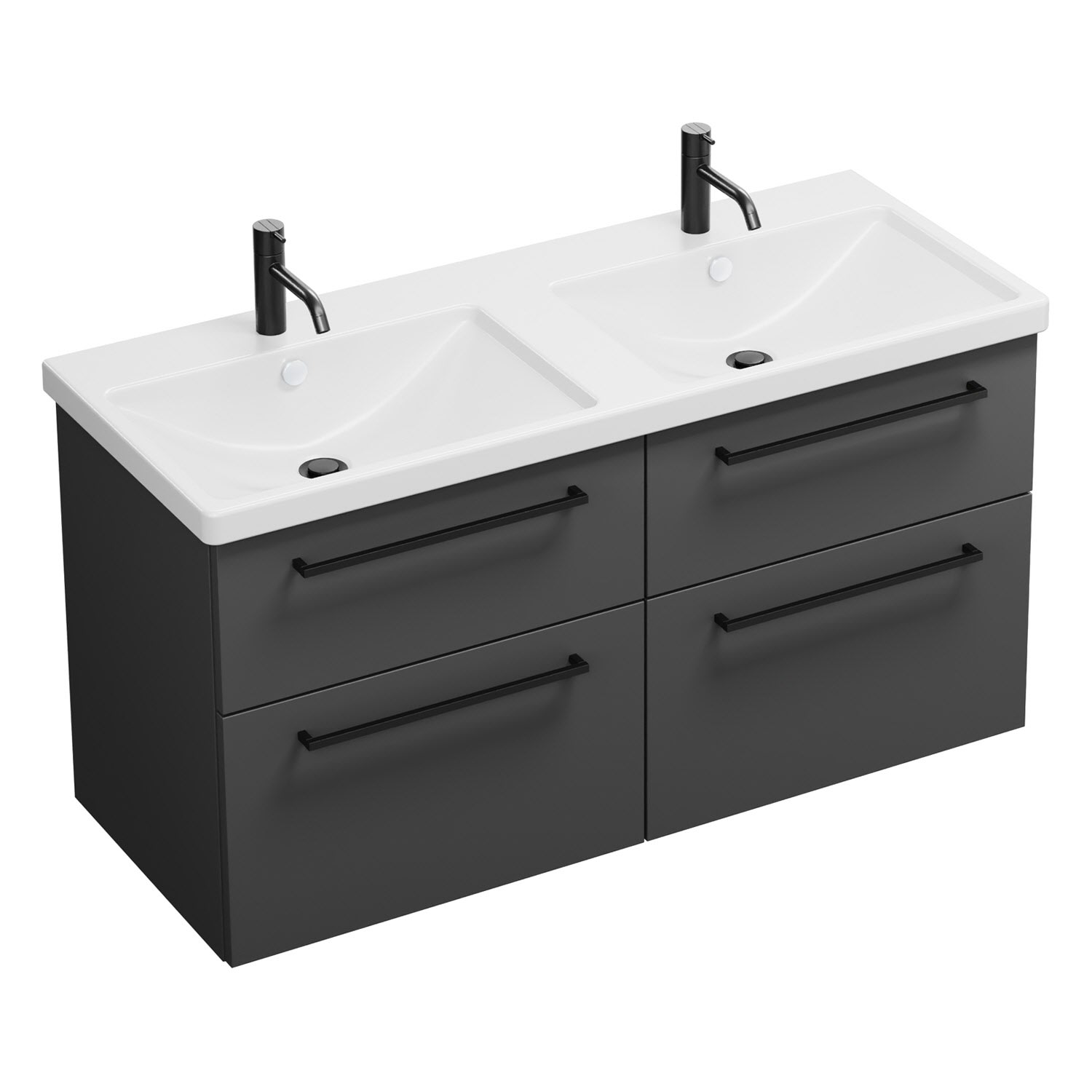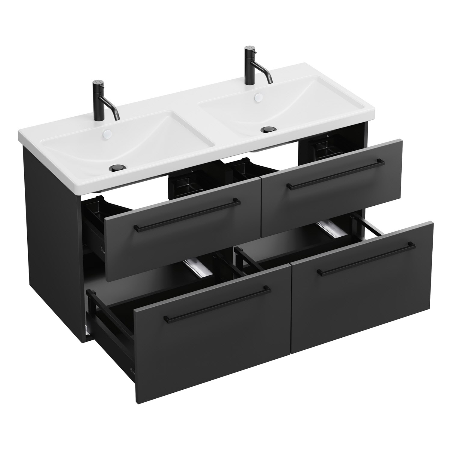 burgbad Eqio Waschtischkombination mit Keramik-Doppelwaschtisch, 123 cm, mit Stangengriff G0234