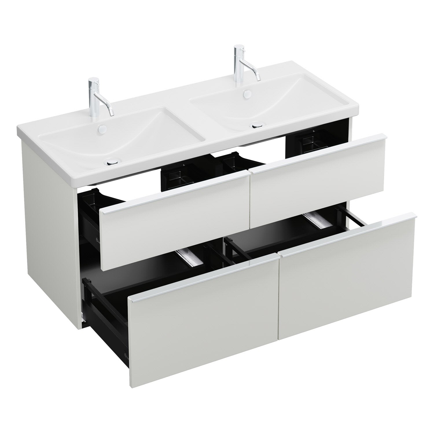 burgbad Eqio Waschtischkombination mit Keramik-Doppelwaschtisch, 123 cm, mit Griffleiste G0251