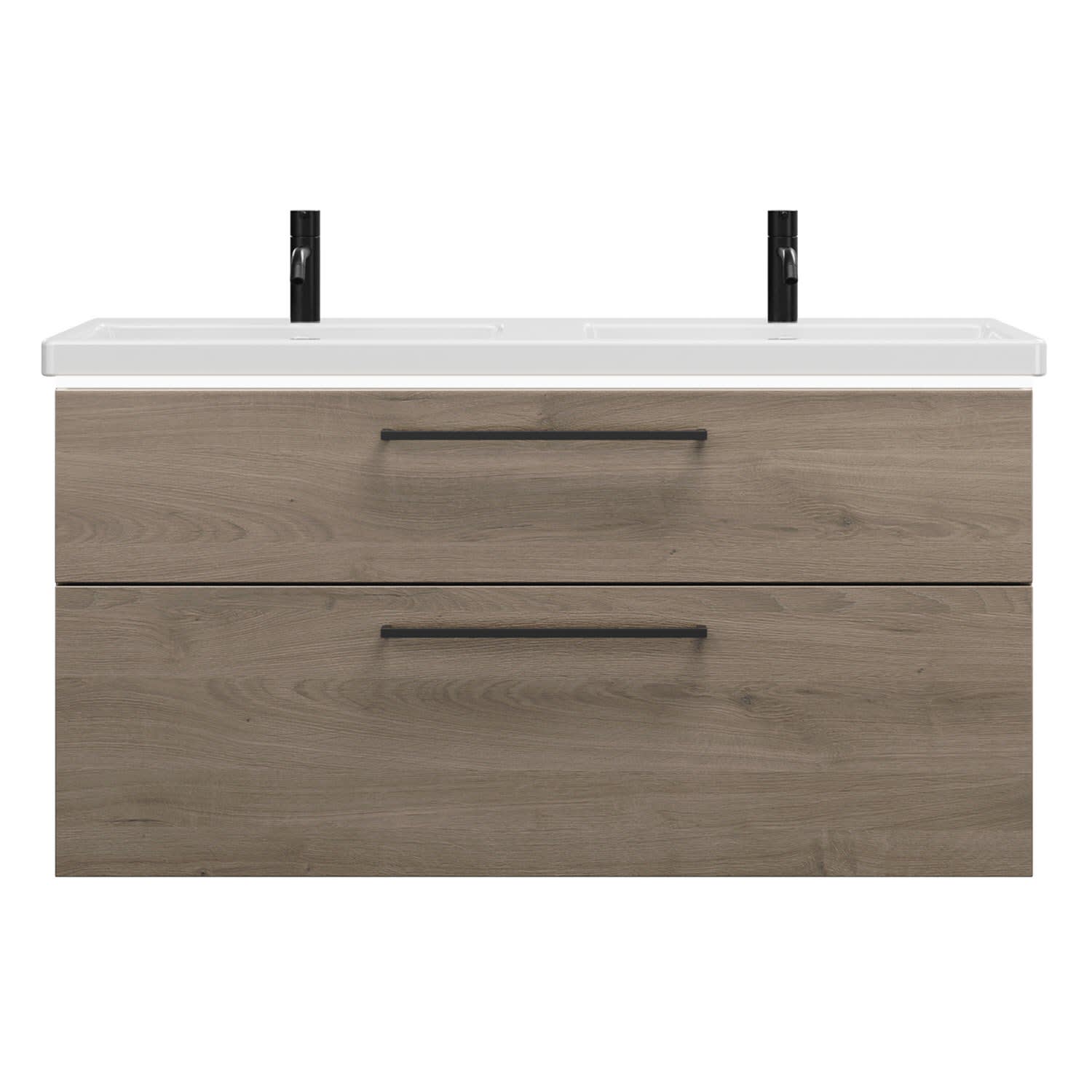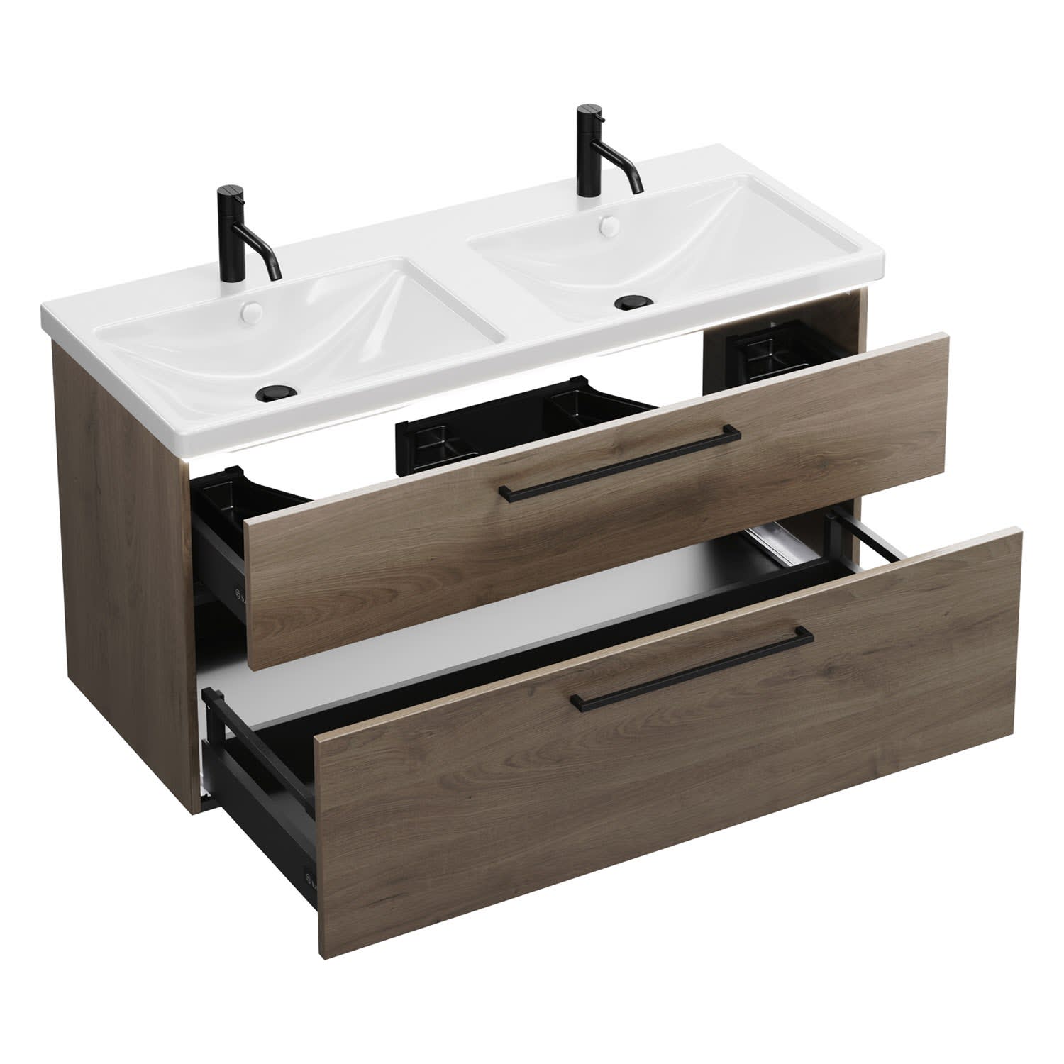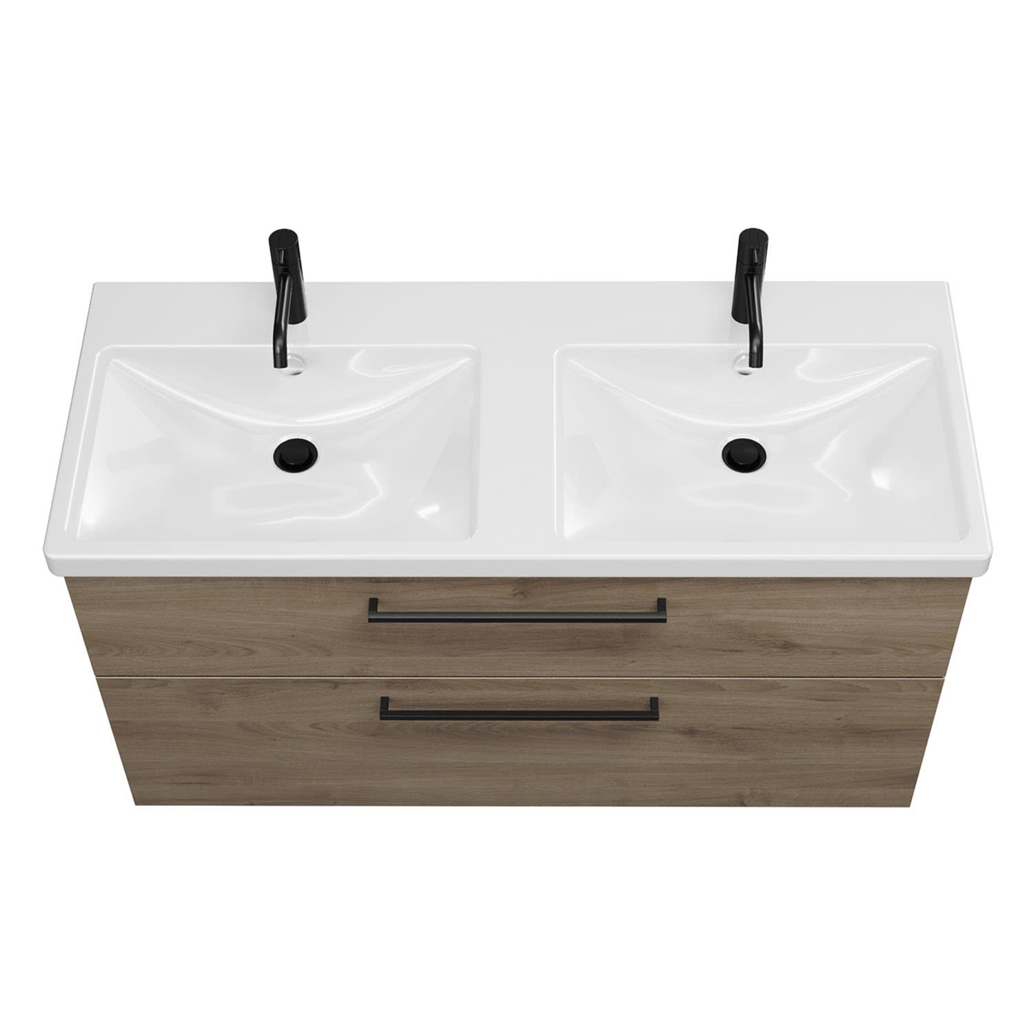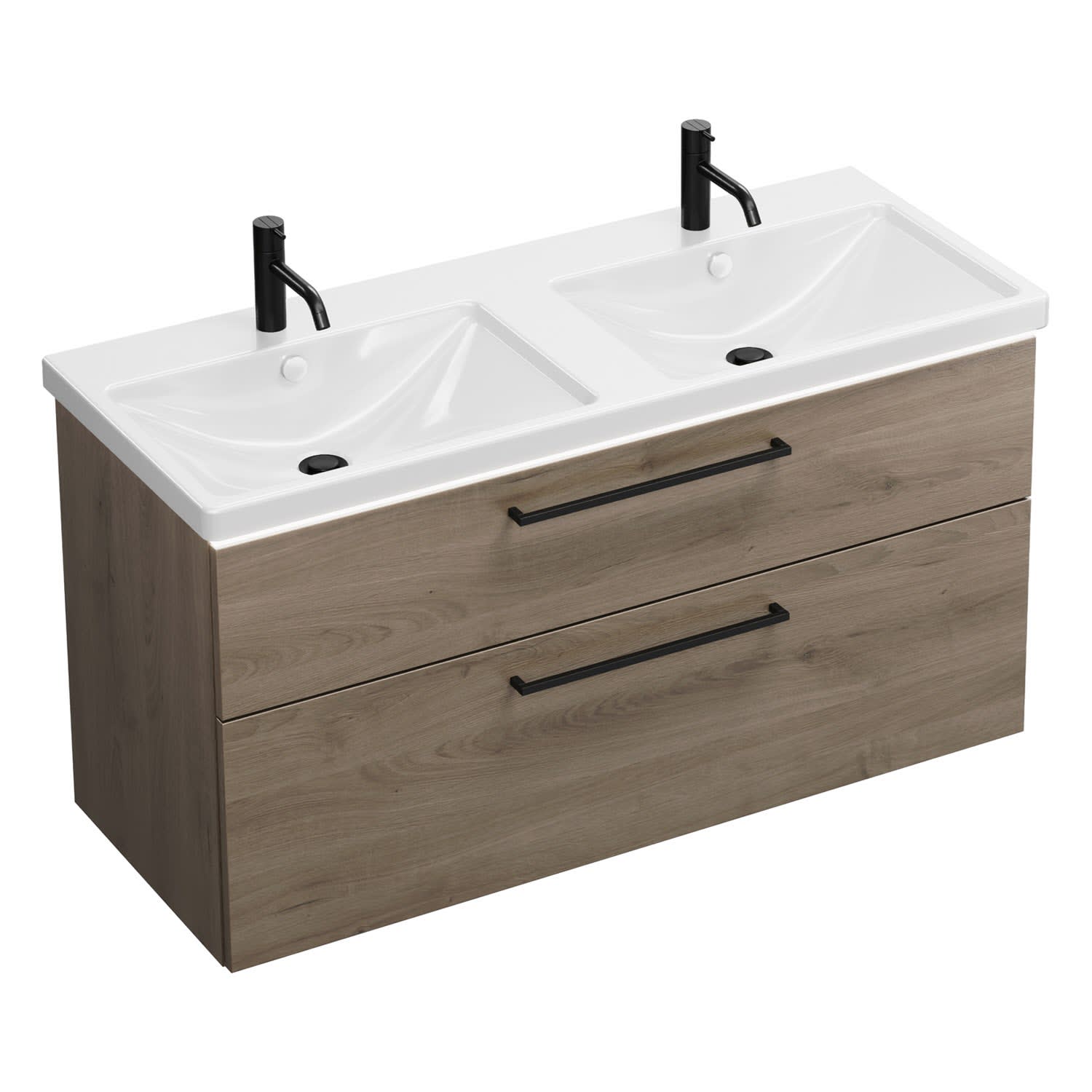 burgbad Eqio Waschtischkombination mit Keramik-Doppelwaschtisch mit LED-Beleuchtung, 123 cm, mit Stangengriff G0234