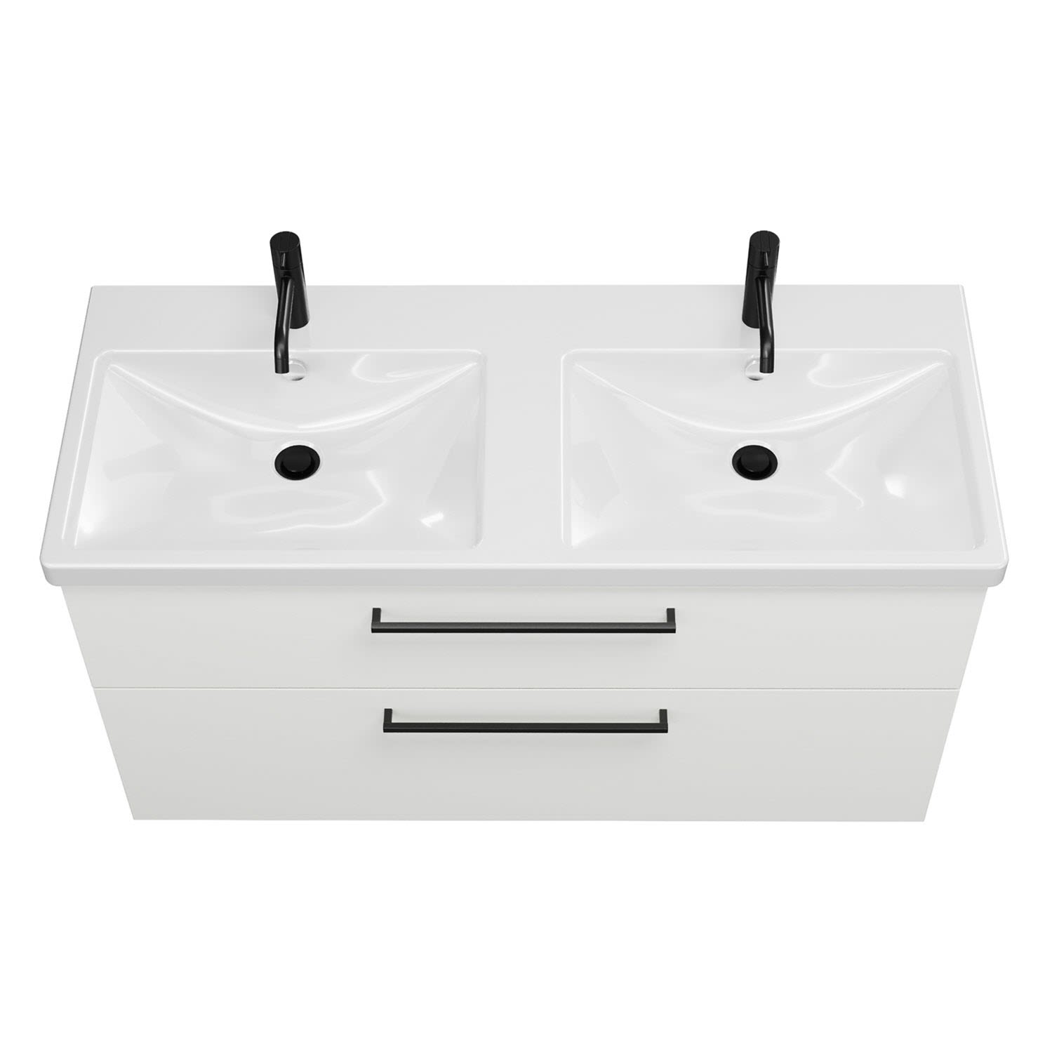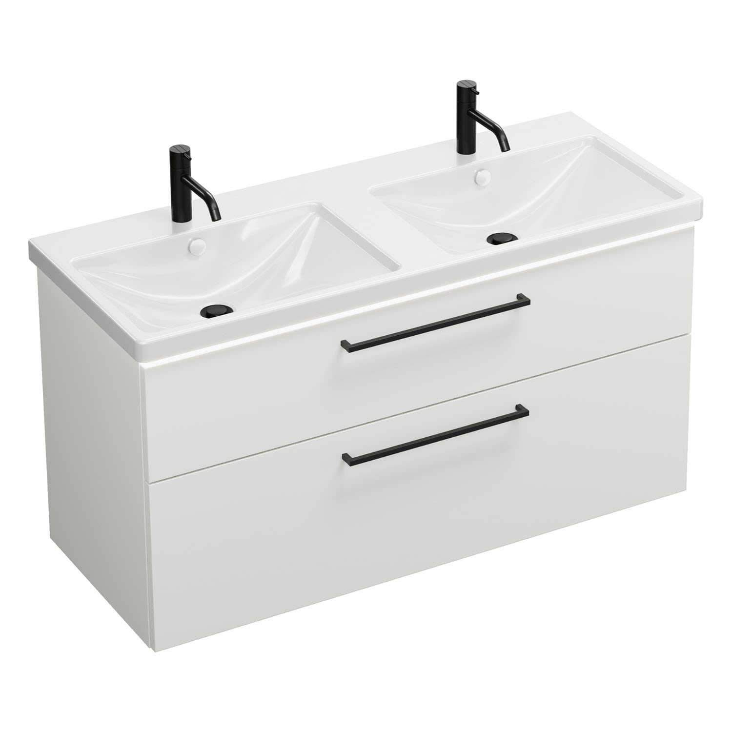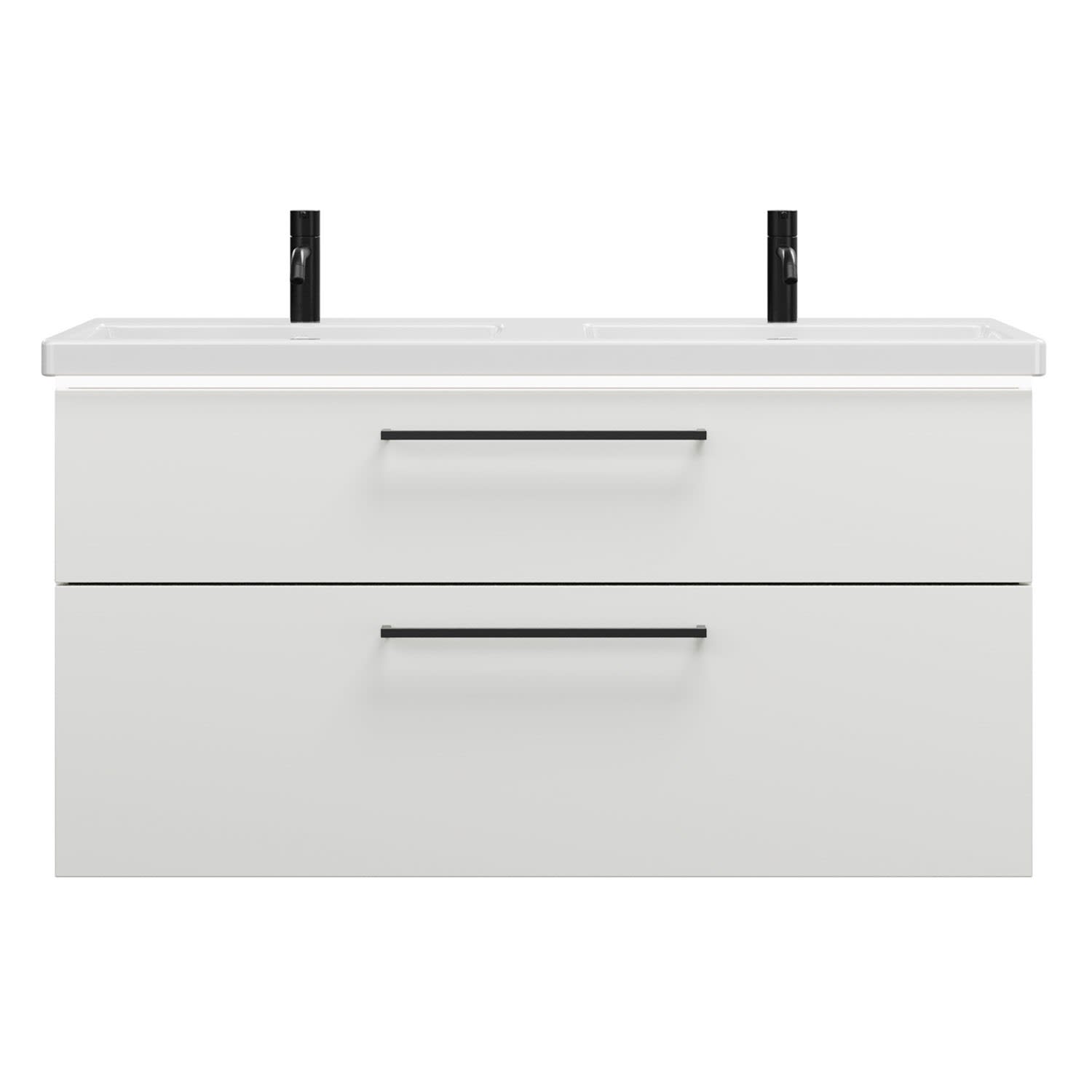 burgbad Eqio Waschtischkombination mit Keramik-Doppelwaschtisch mit LED-Beleuchtung, 123 cm, mit Stangengriff G0234