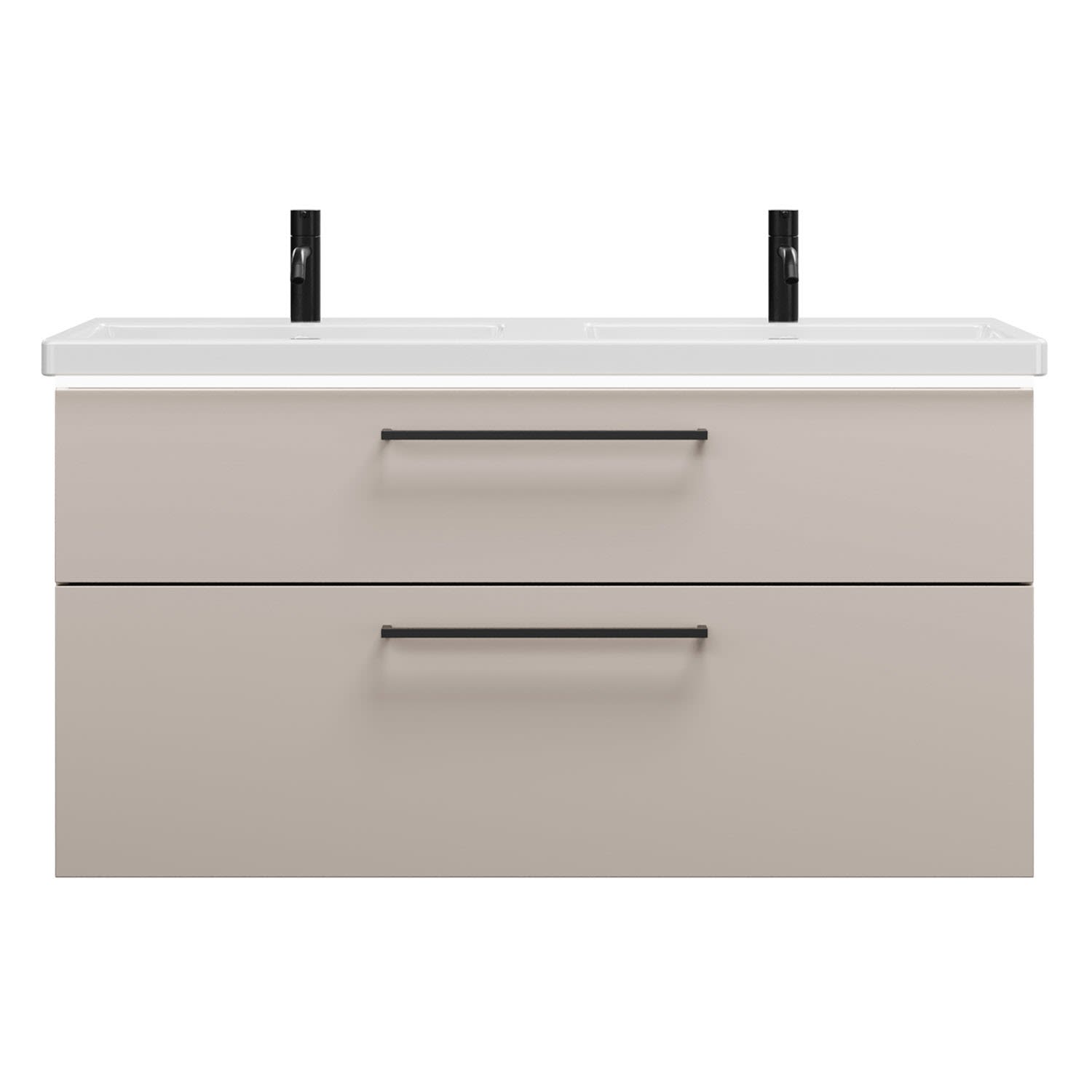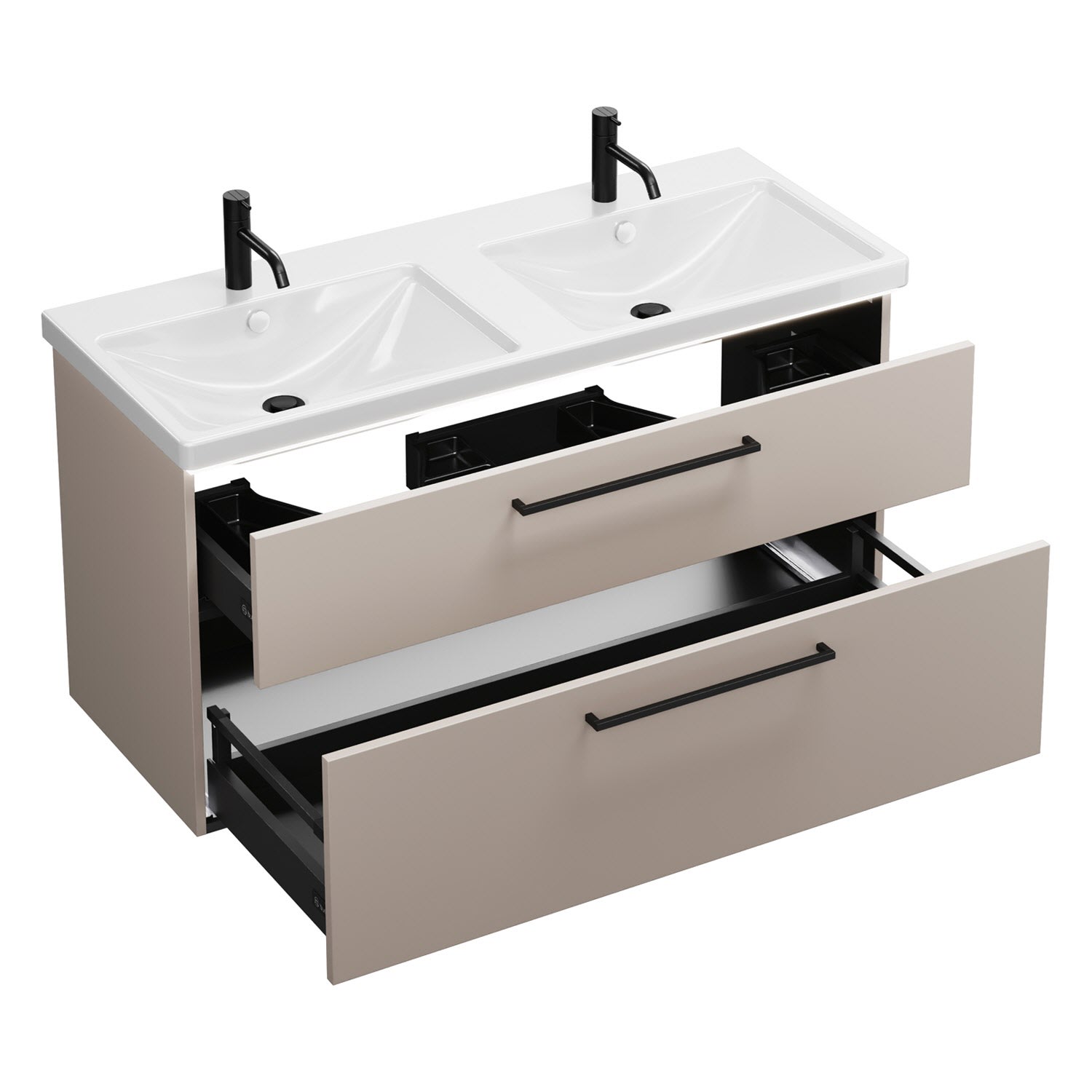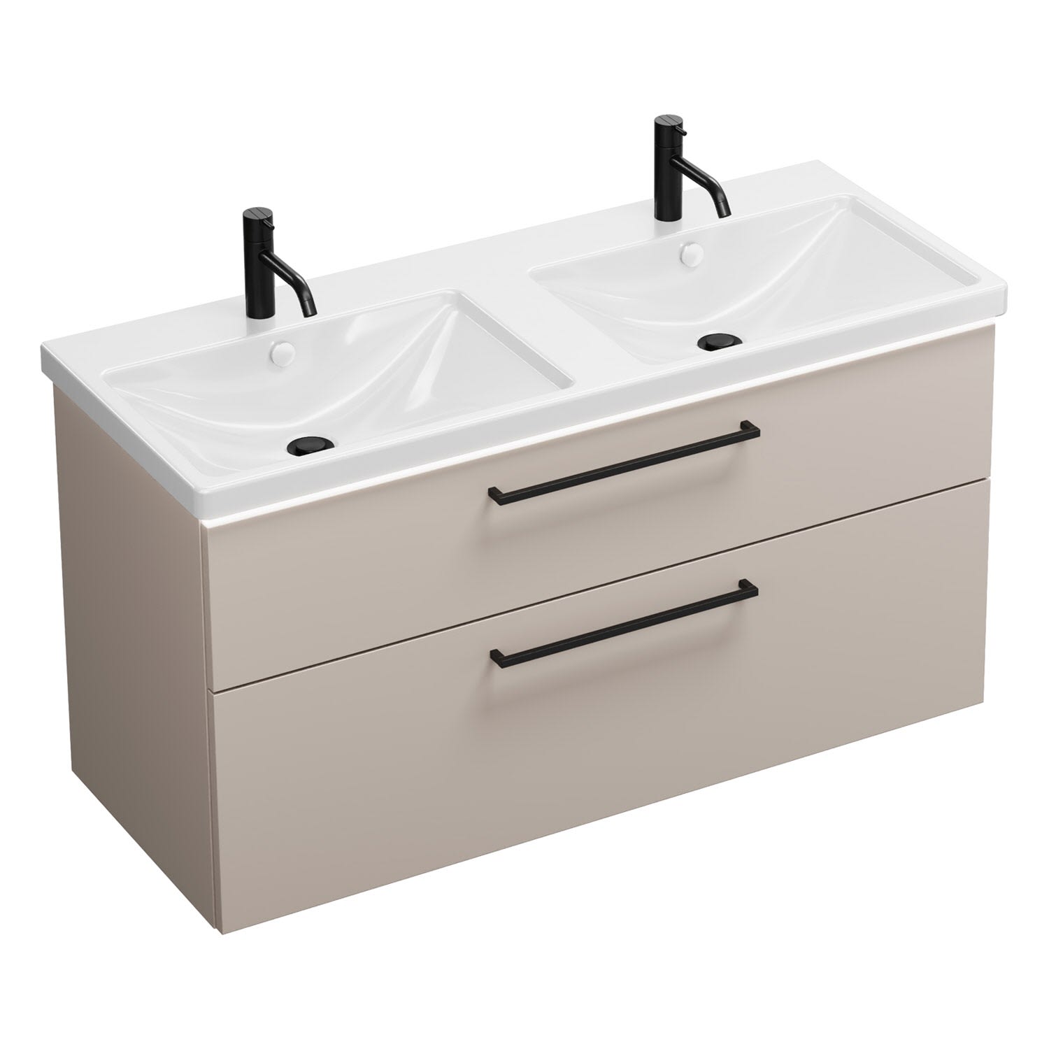 burgbad Eqio Waschtischkombination mit Keramik-Doppelwaschtisch mit LED-Beleuchtung, 123 cm, mit Stangengriff G0234