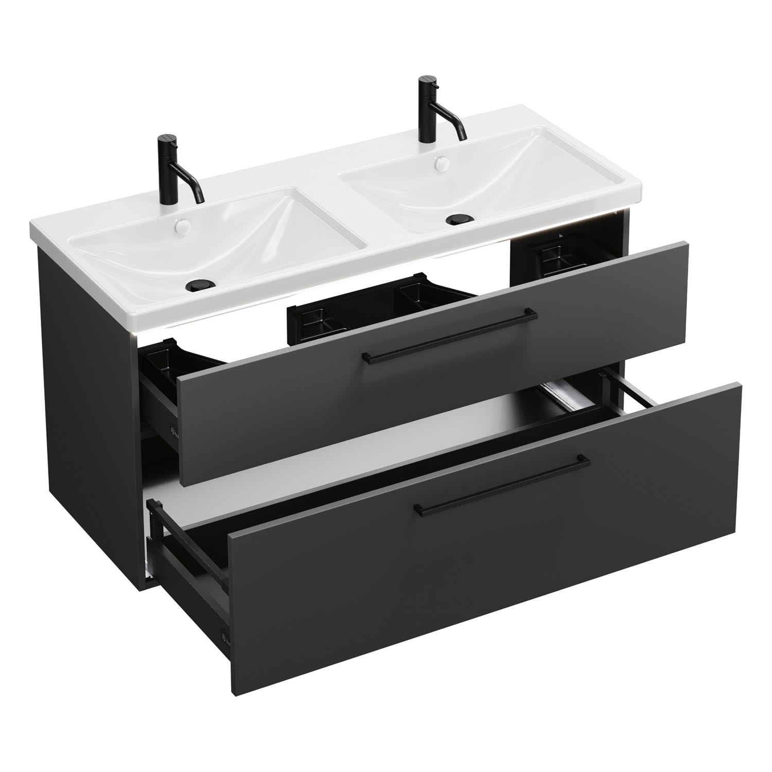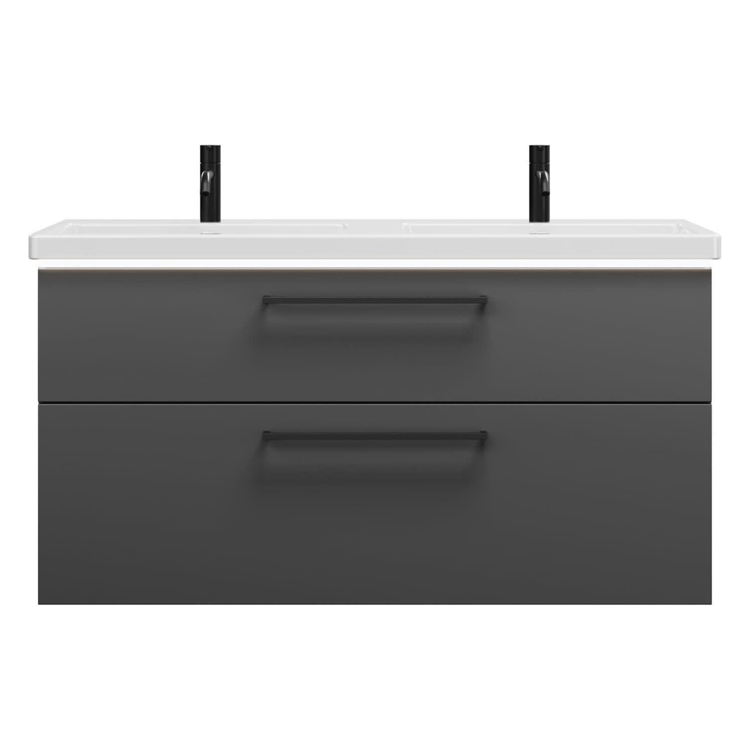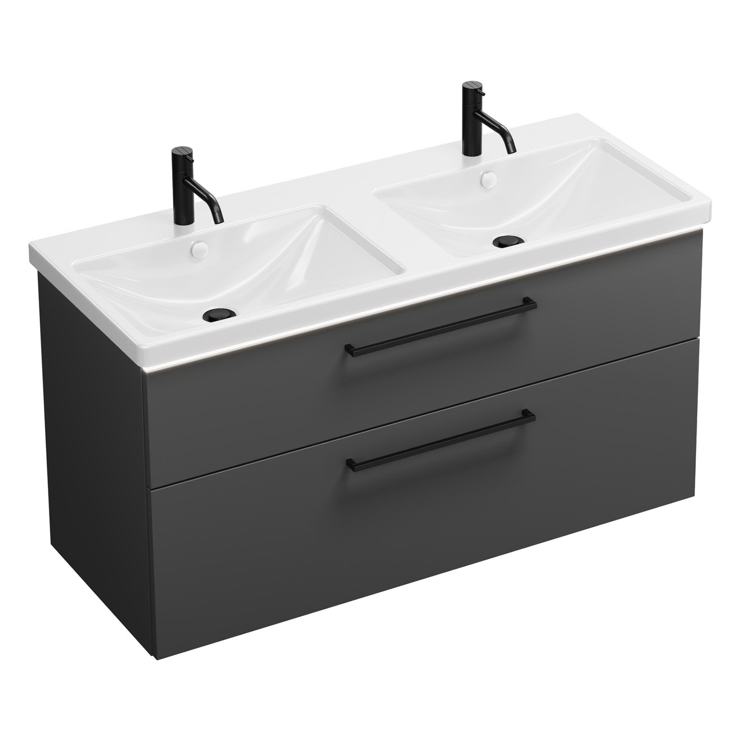 burgbad Eqio Waschtischkombination mit Keramik-Doppelwaschtisch mit LED-Beleuchtung, 123 cm, mit Stangengriff G0234