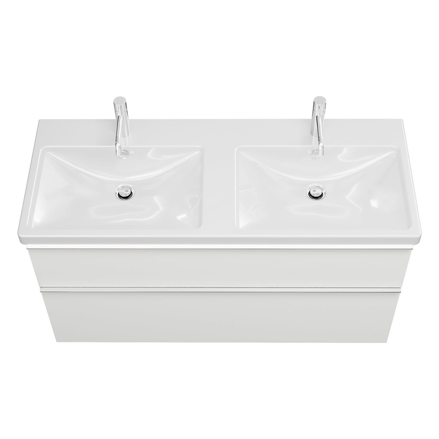 burgbad Eqio Waschtischkombination mit Keramik-Doppelwaschtisch mit LED-Beleuchtung, 123 cm, mit Griffleiste G0251