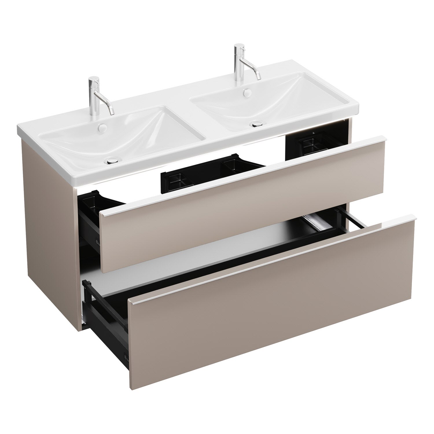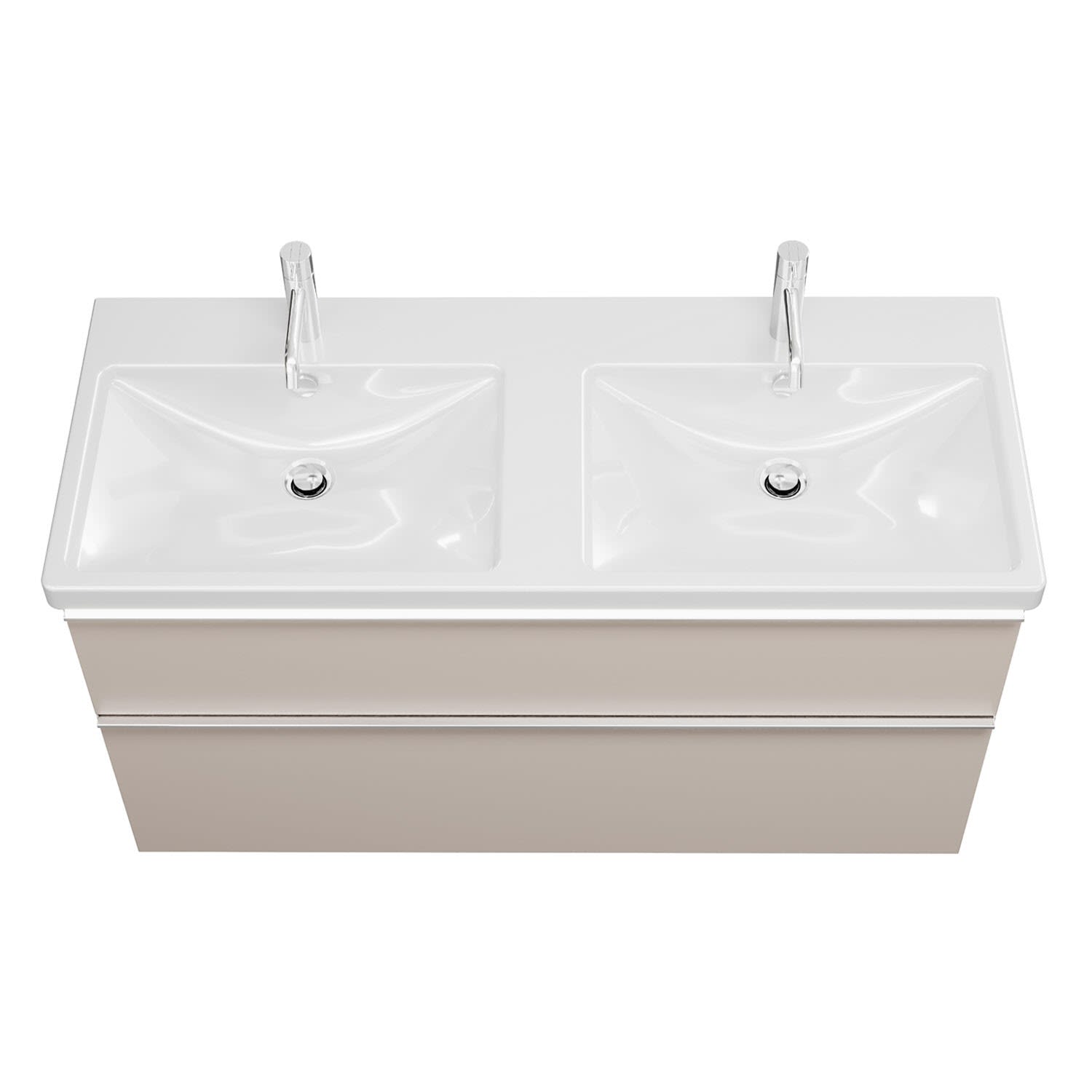burgbad Eqio Waschtischkombination mit Keramik-Doppelwaschtisch mit LED-Beleuchtung, 123 cm, mit Griffleiste G0251