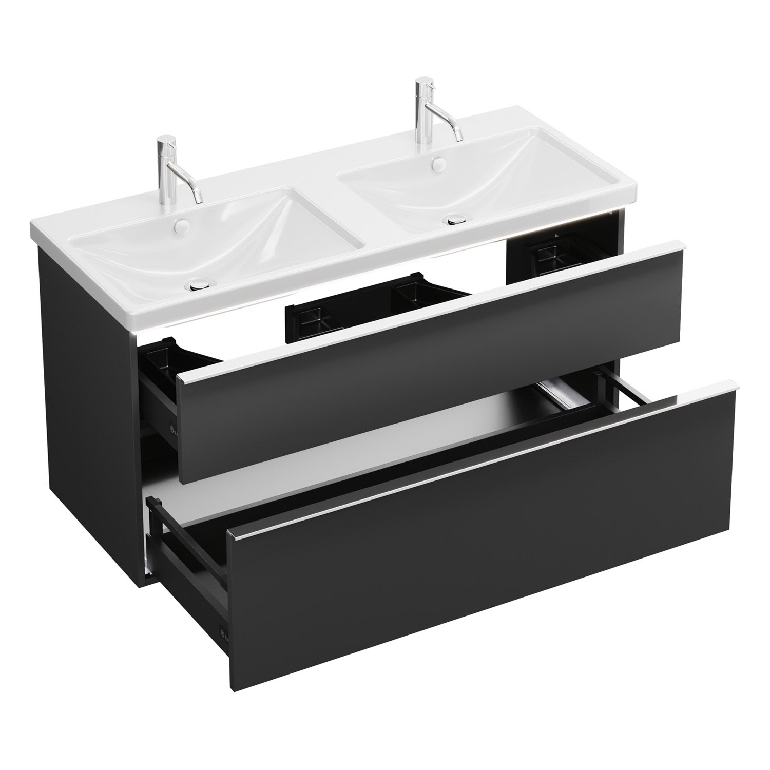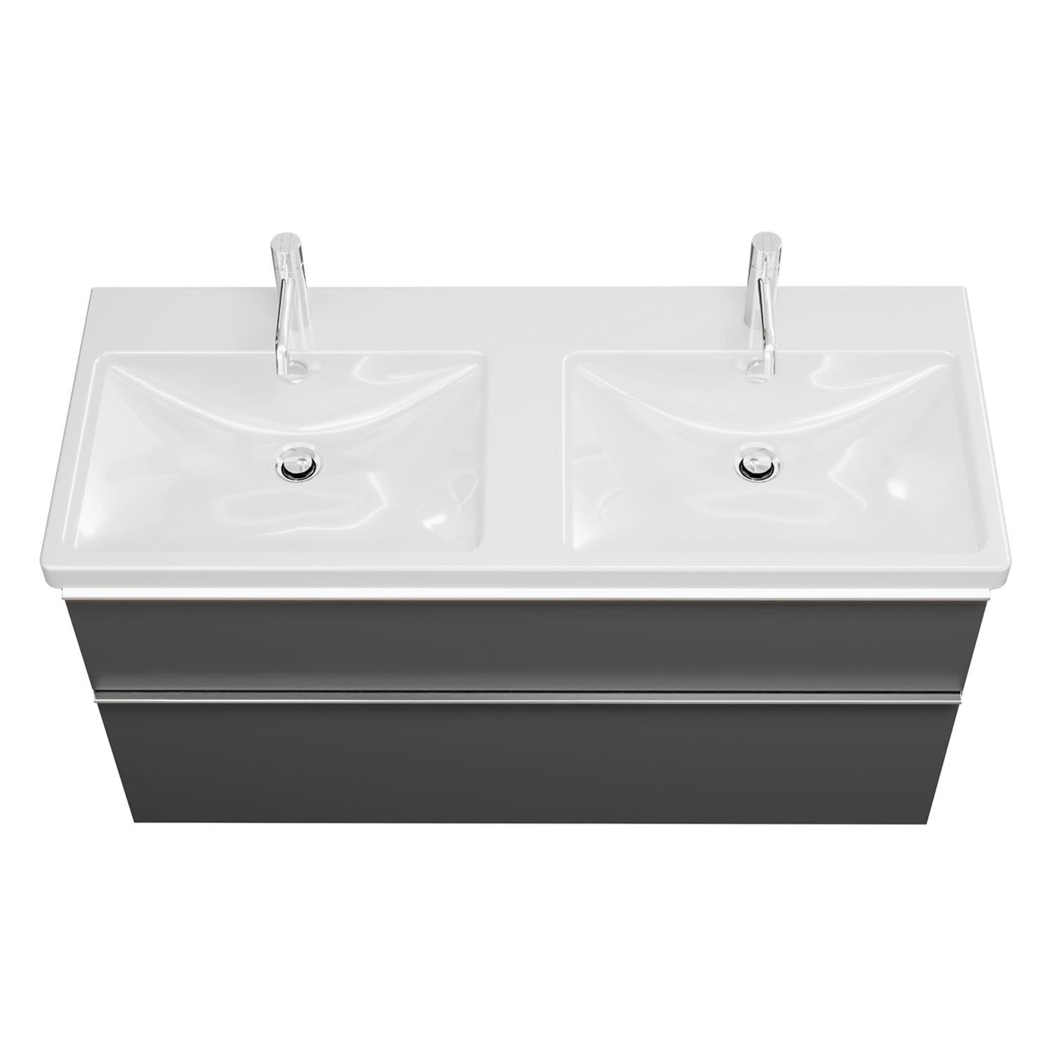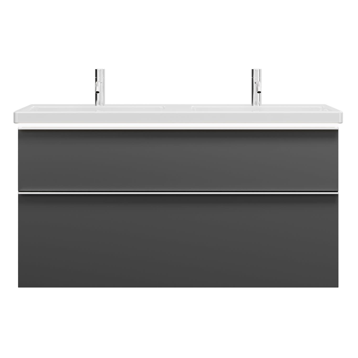 burgbad Eqio Waschtischkombination mit Keramik-Doppelwaschtisch mit LED-Beleuchtung, 123 cm, mit Griffleiste G0251