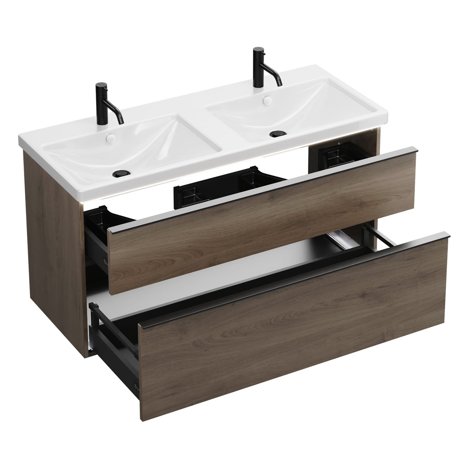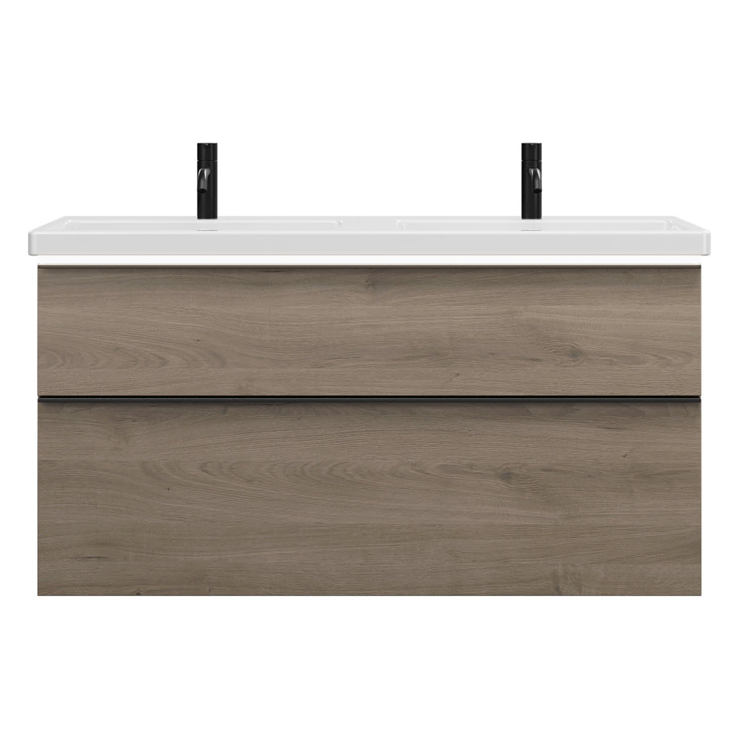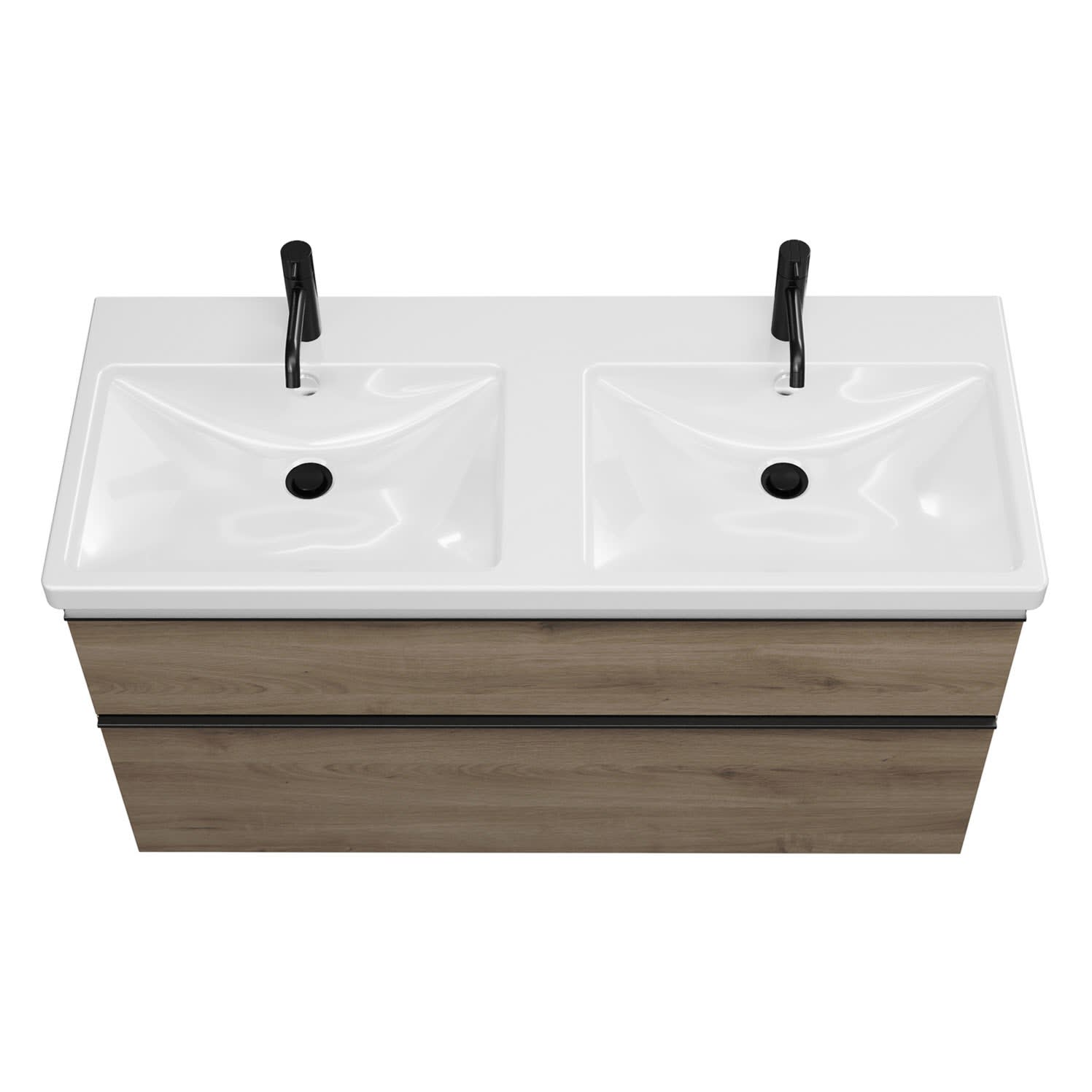 burgbad Eqio Waschtischkombination mit Keramik-Doppelwaschtisch mit LED-Beleuchtung, 123 cm, mit Griffleiste G0252