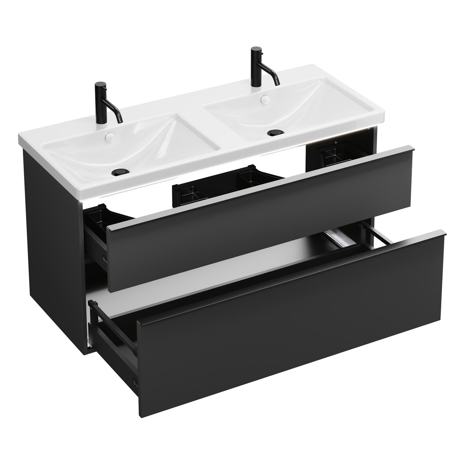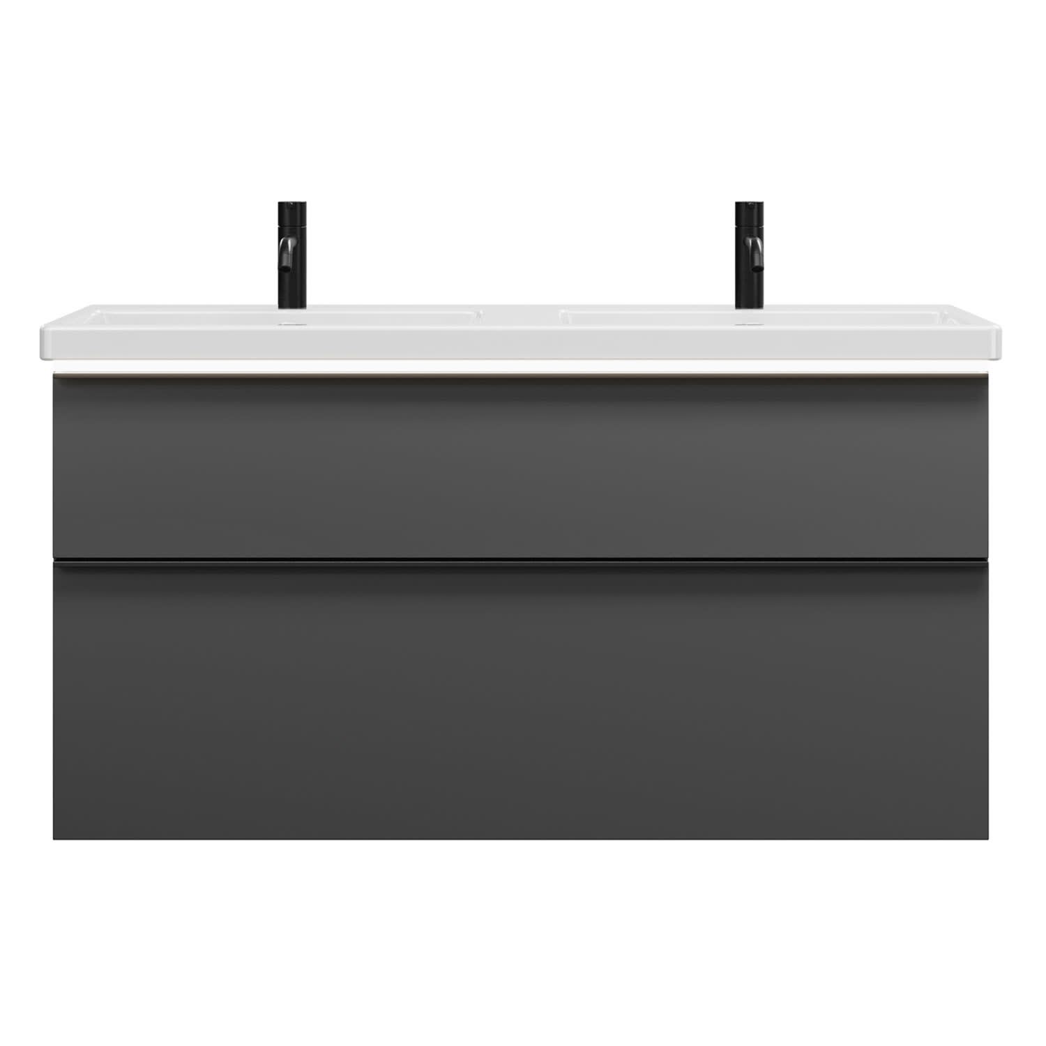 burgbad Eqio Waschtischkombination mit Keramik-Doppelwaschtisch mit LED-Beleuchtung, 123 cm, mit Griffleiste G0252