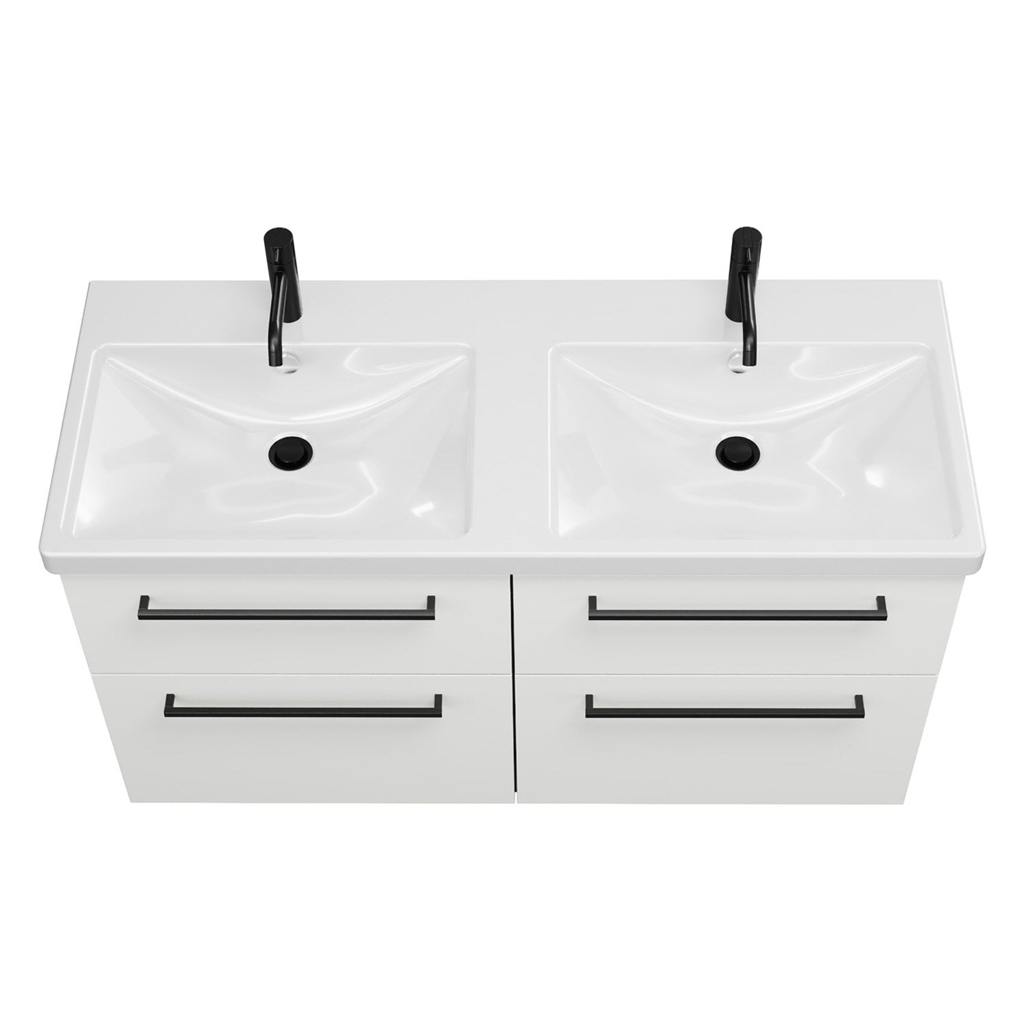 burgbad Eqio Waschtischkombination mit Keramik-Doppelwaschtisch mit LED-Beleuchtung, 123 cm, mit Stangengriff G0234