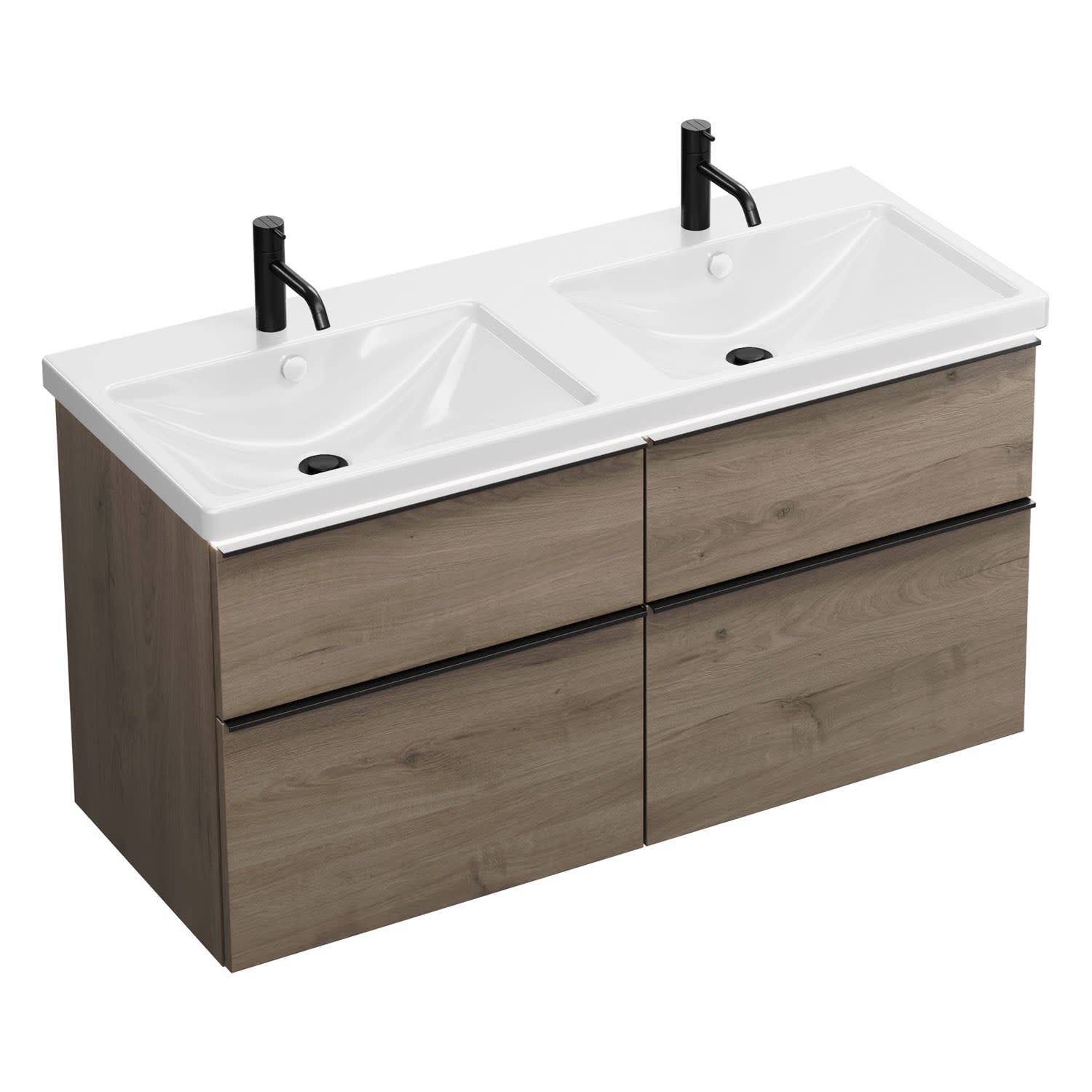 burgbad Eqio Waschtischkombination mit Keramik-Doppelwaschtisch mit LED-Beleuchtung, 123 cm, mit Griffleiste G0252