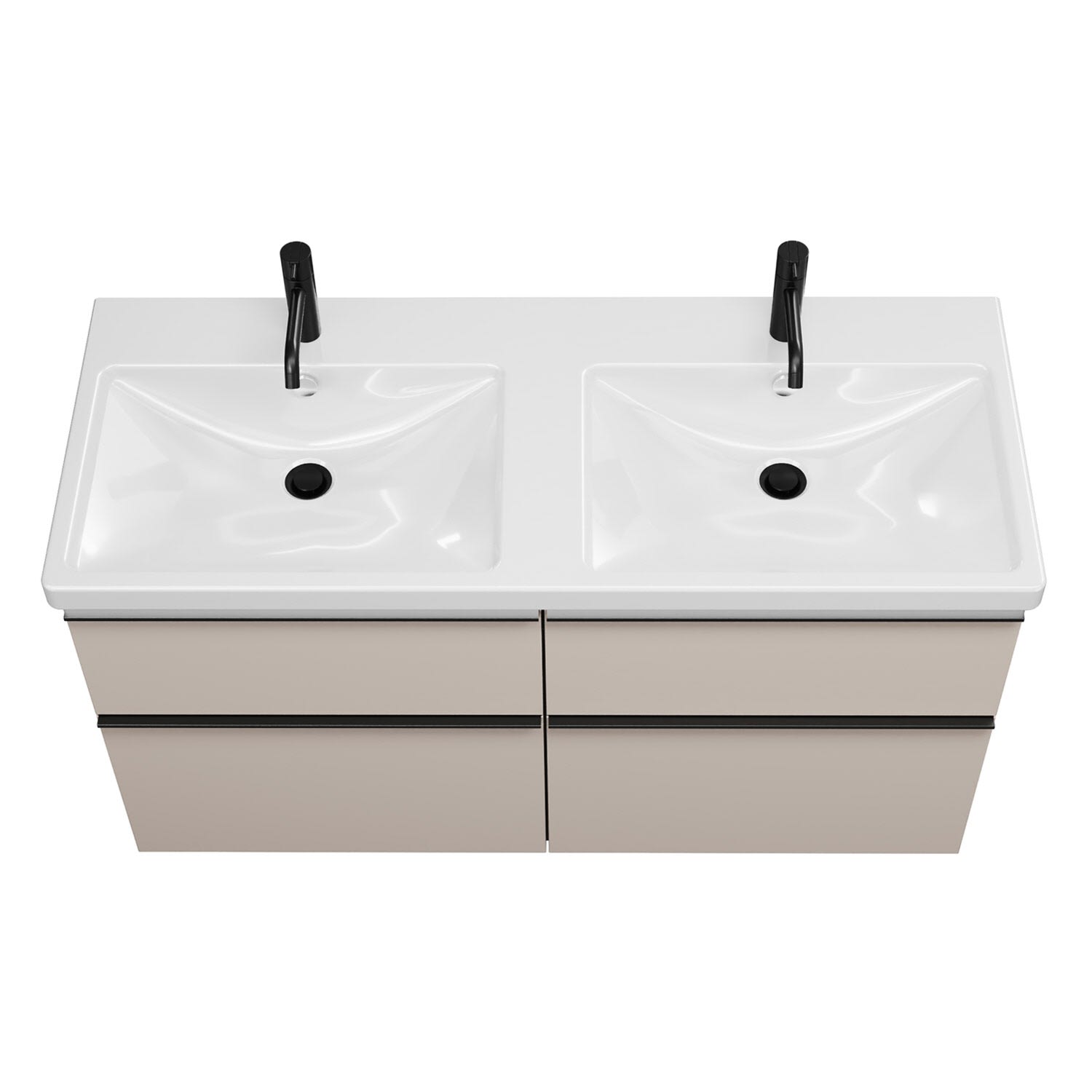 burgbad Eqio Waschtischkombination mit Keramik-Doppelwaschtisch mit LED-Beleuchtung, 123 cm, mit Griffleiste G0252