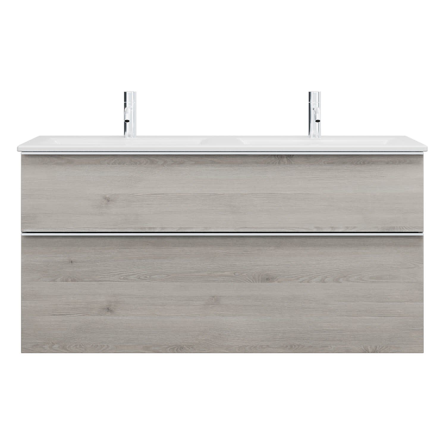 burgbad Eqio Waschtischkombination mit Keramik-Doppelwaschtisch Slim, 122 cm, mit Griffleiste G0251