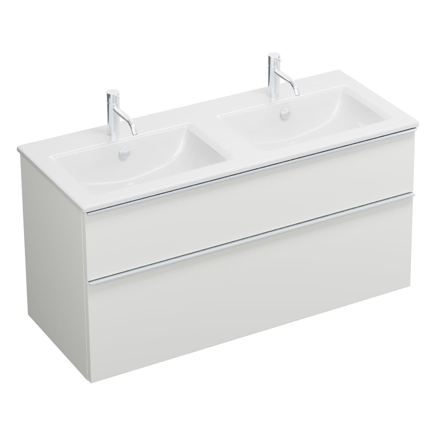 burgbad Eqio Waschtischkombination mit Keramik-Doppelwaschtisch Slim, 122 cm, mit Griffleiste G0251