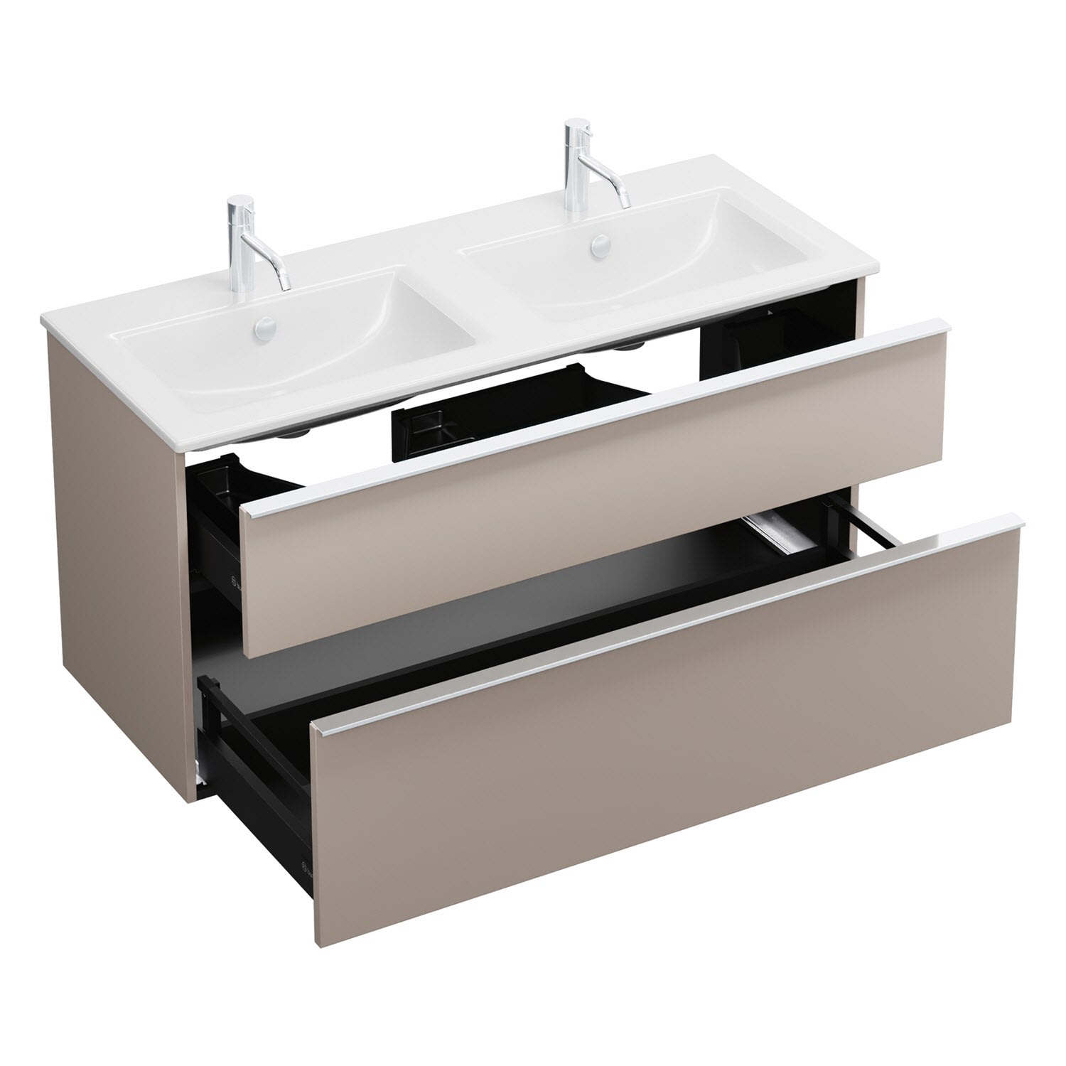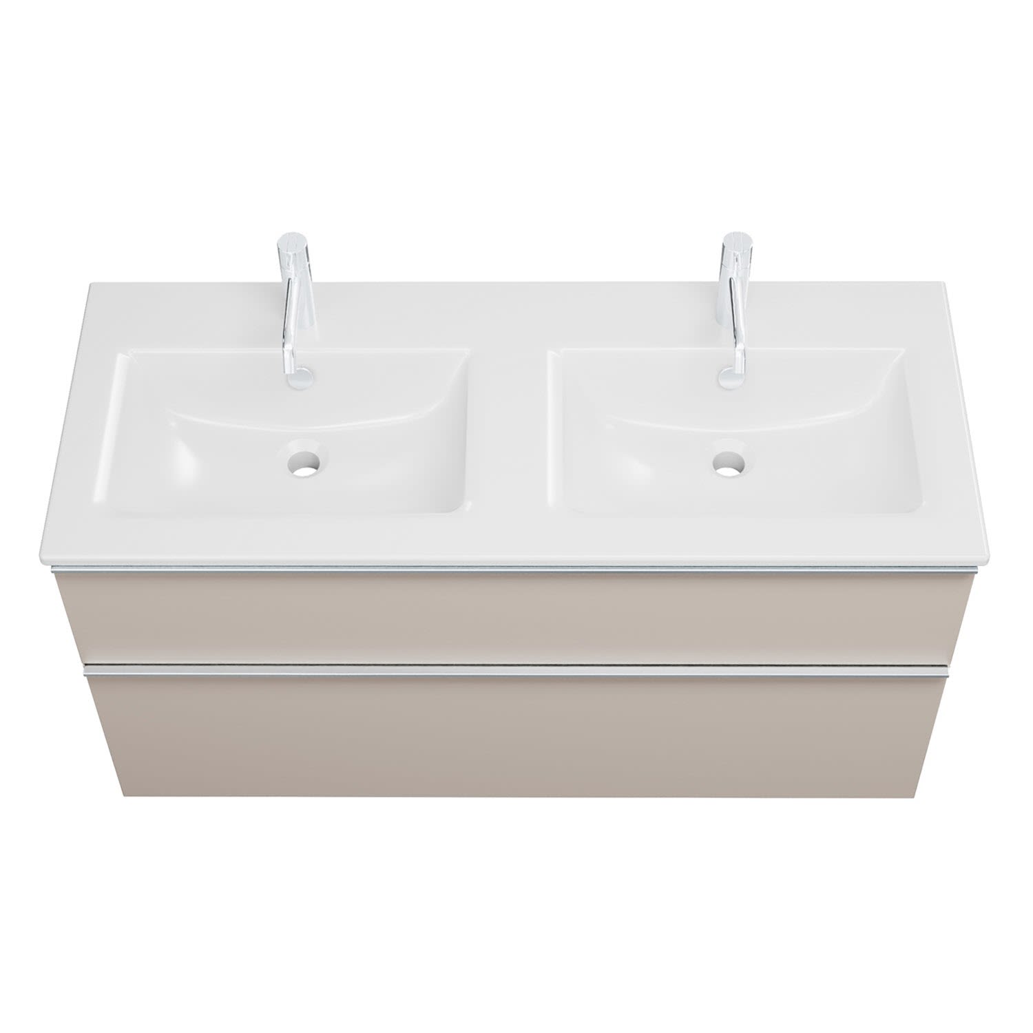 burgbad Eqio Waschtischkombination mit Keramik-Doppelwaschtisch Slim, 122 cm, mit Griffleiste G0251
