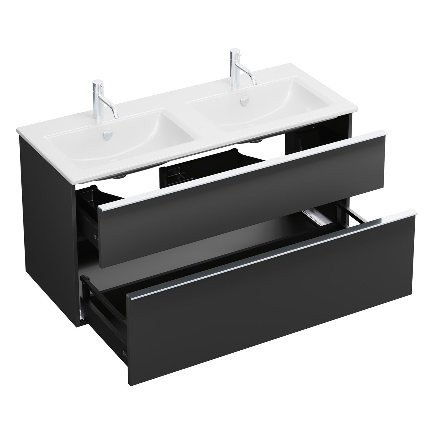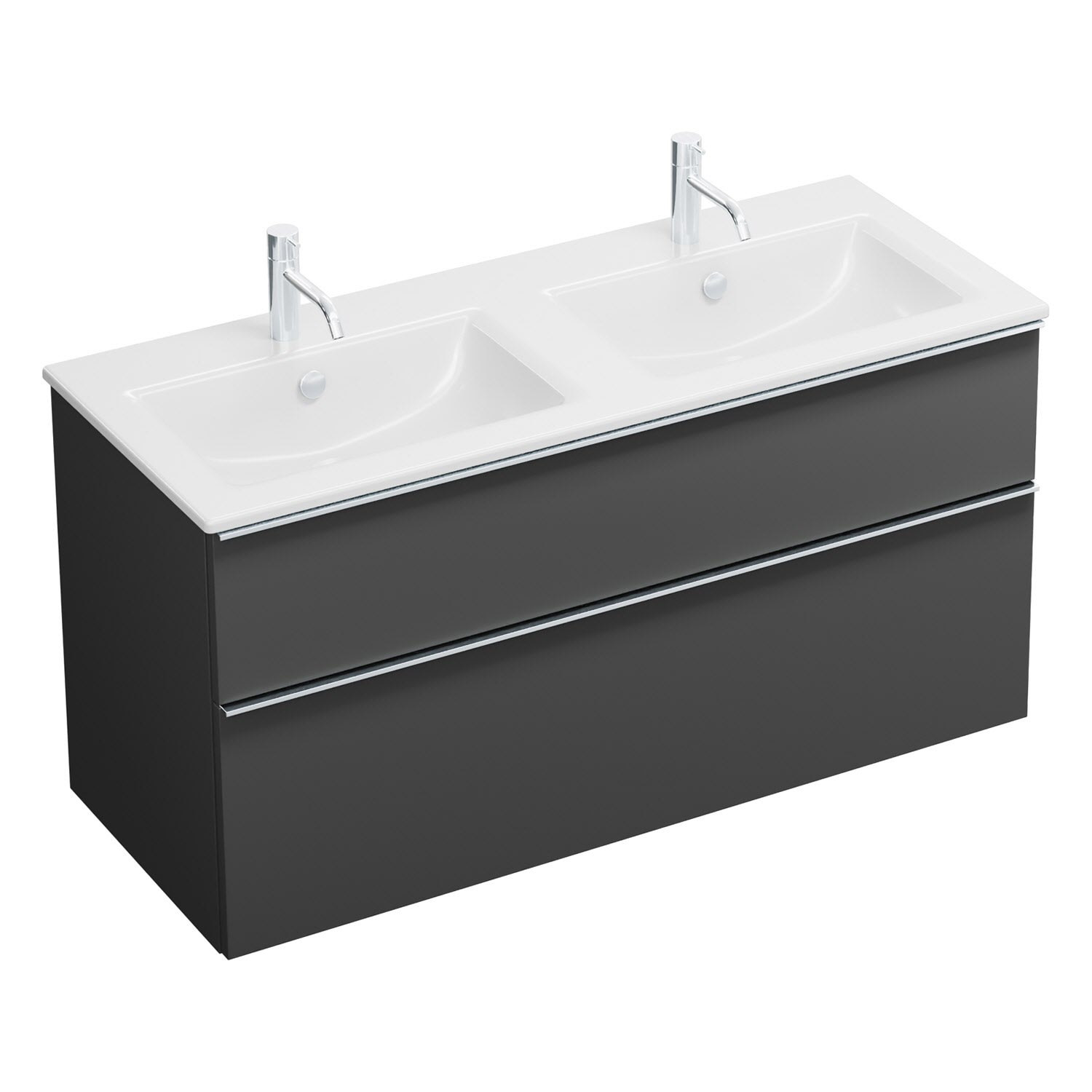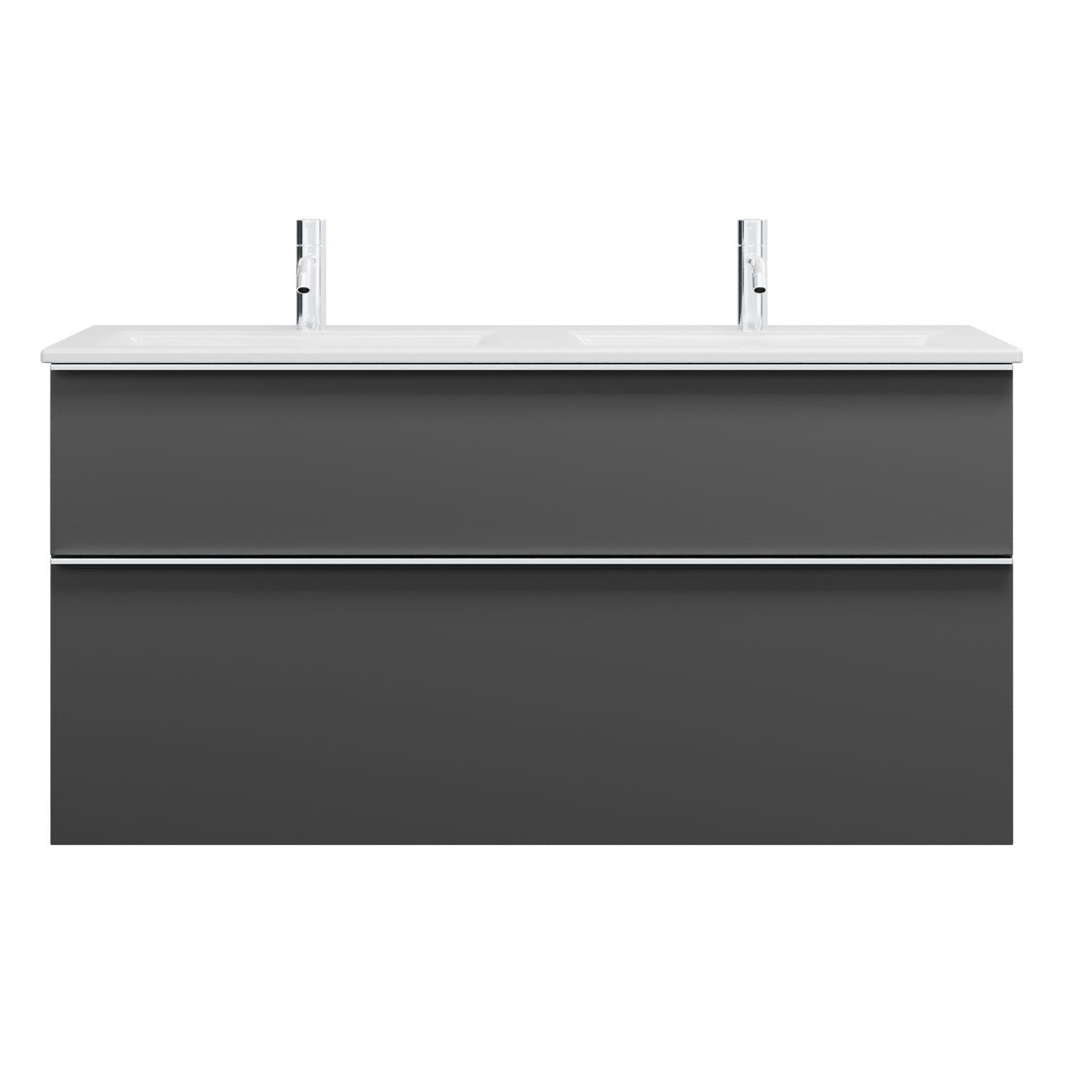 burgbad Eqio Waschtischkombination mit Keramik-Doppelwaschtisch Slim, 122 cm, mit Griffleiste G0251