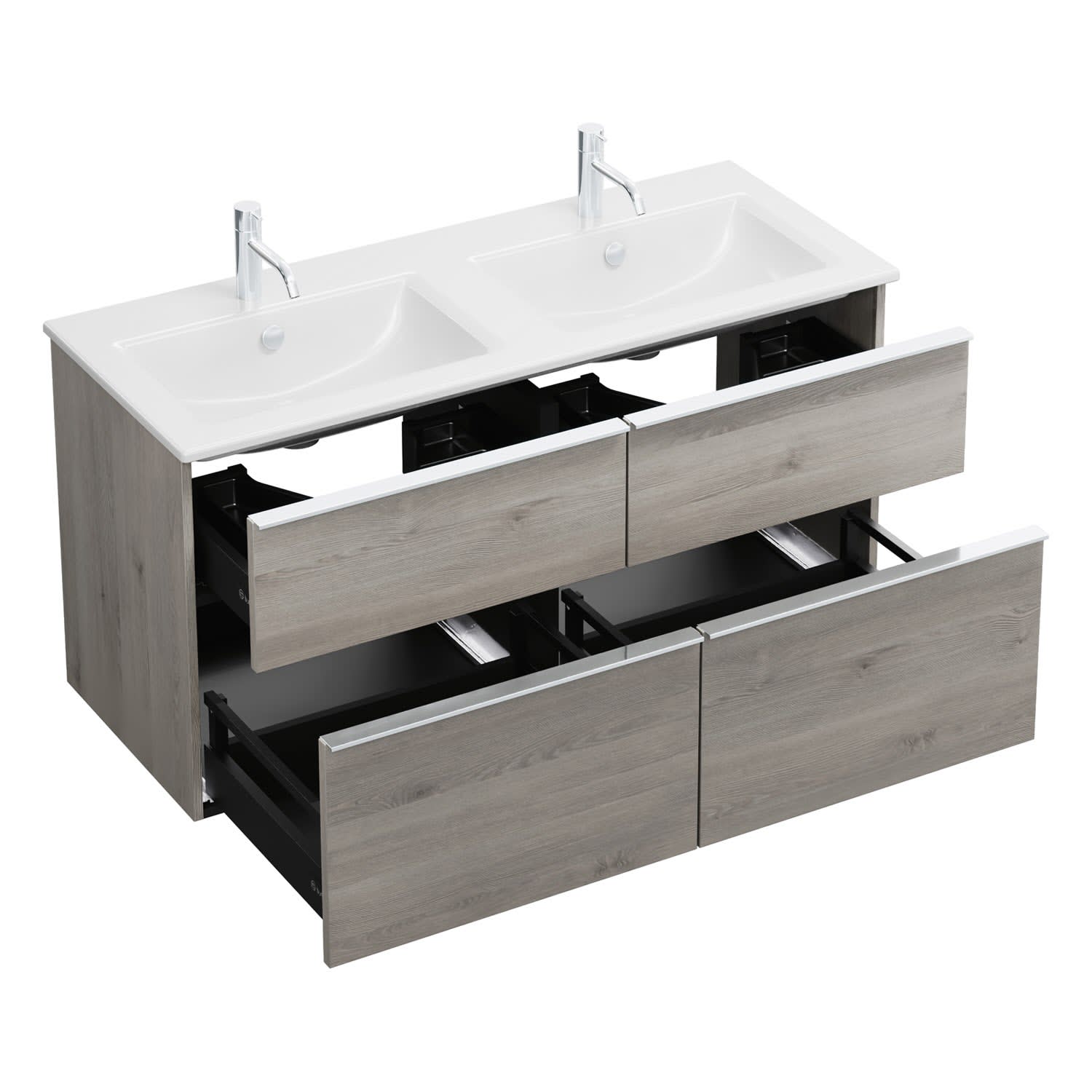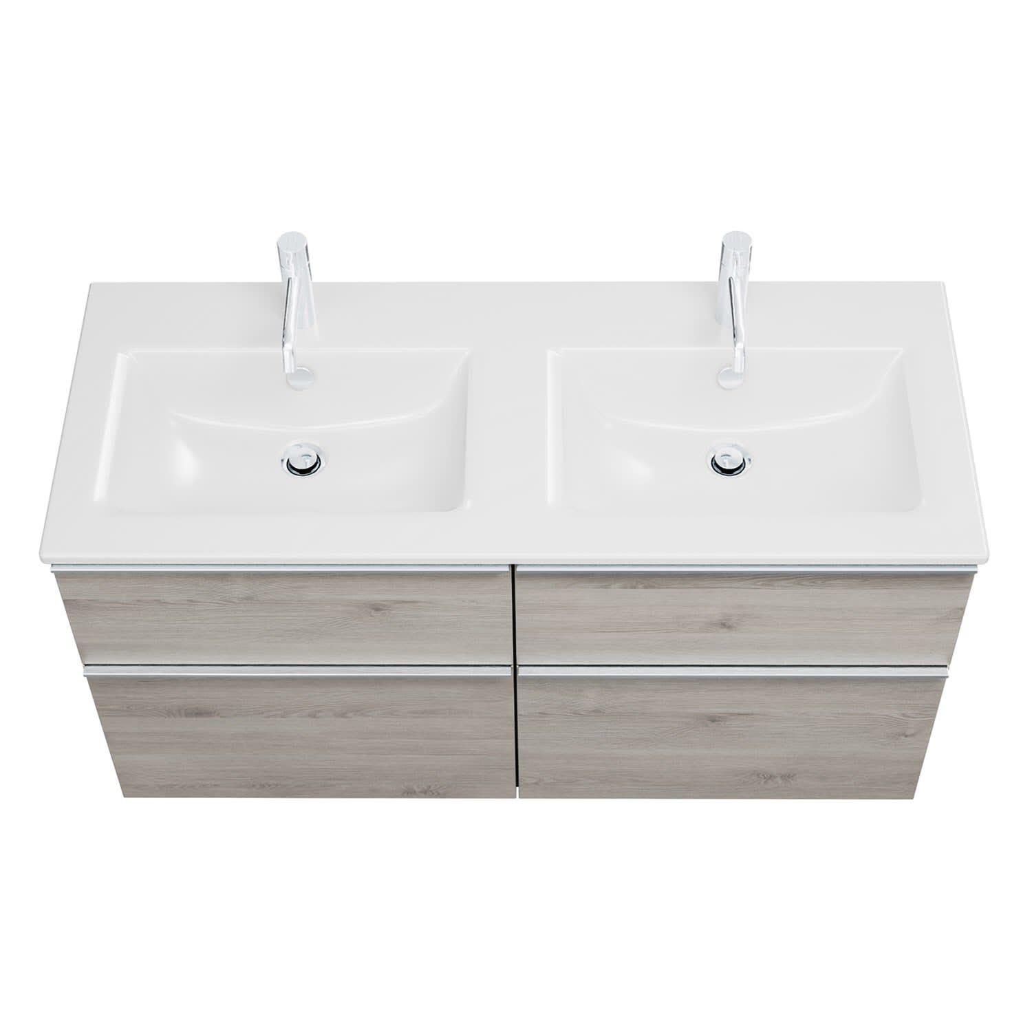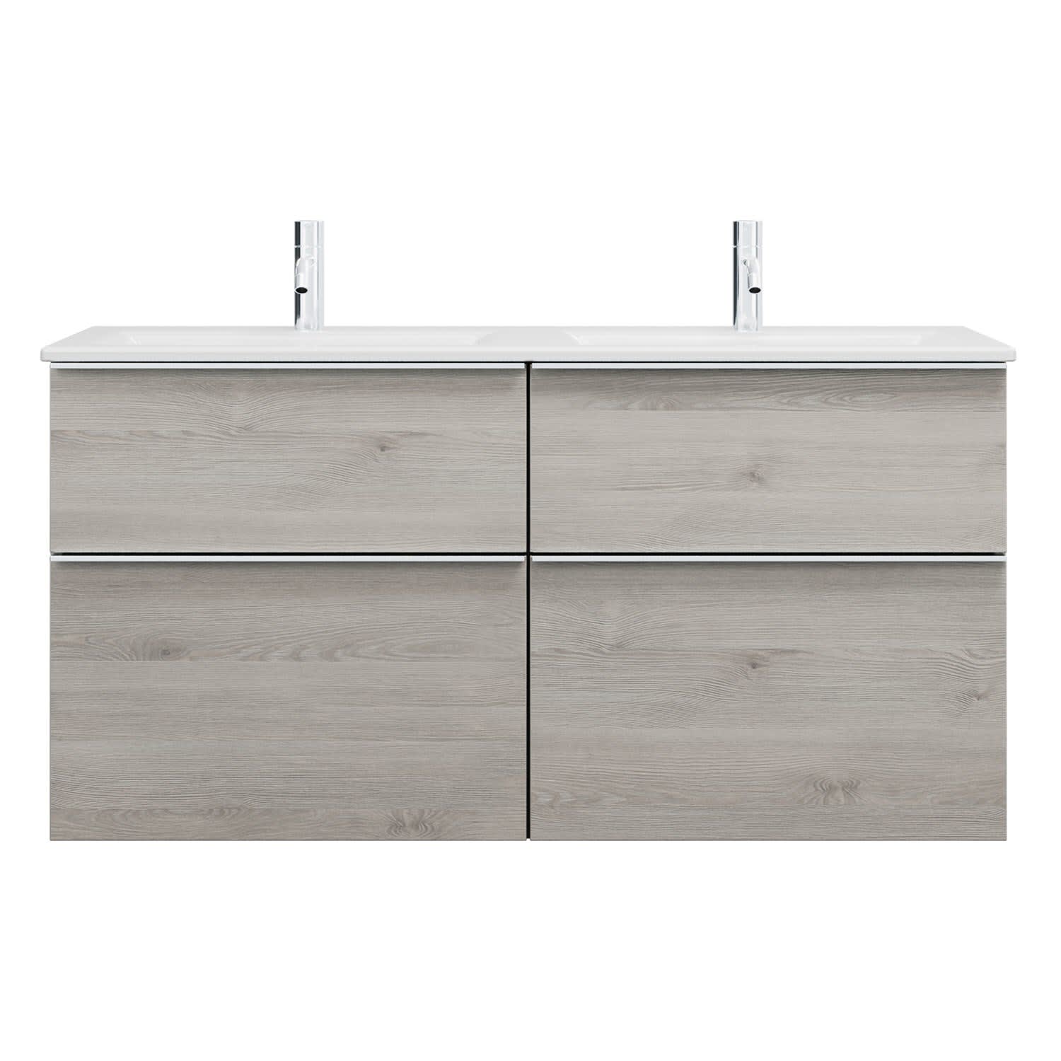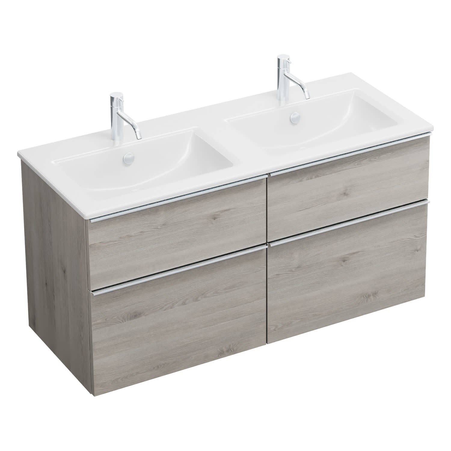 burgbad Eqio Waschtischkombination mit Keramik-Doppelwaschtisch Slim, 122 cm, mit Griffleiste G0251