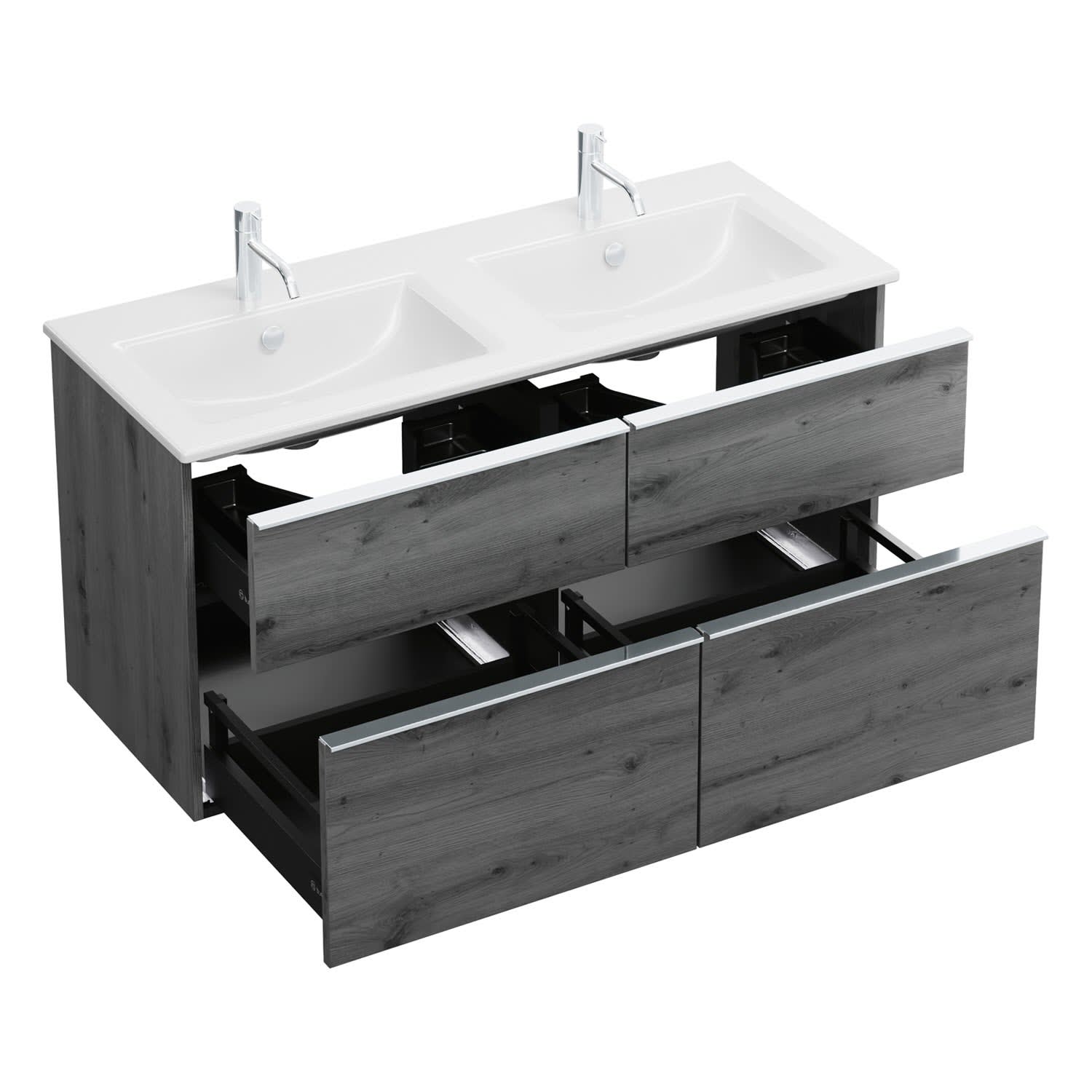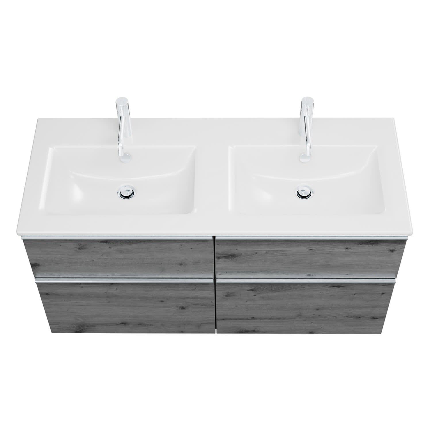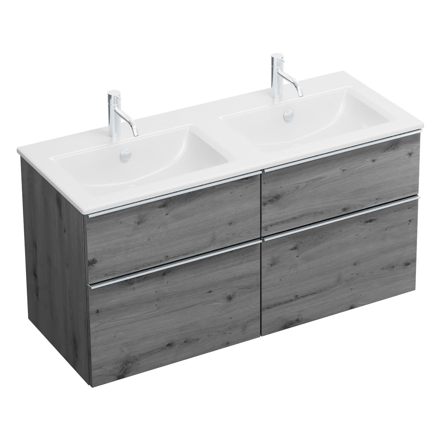 burgbad Eqio Waschtischkombination mit Keramik-Doppelwaschtisch Slim, 122 cm, mit Griffleiste G0251
