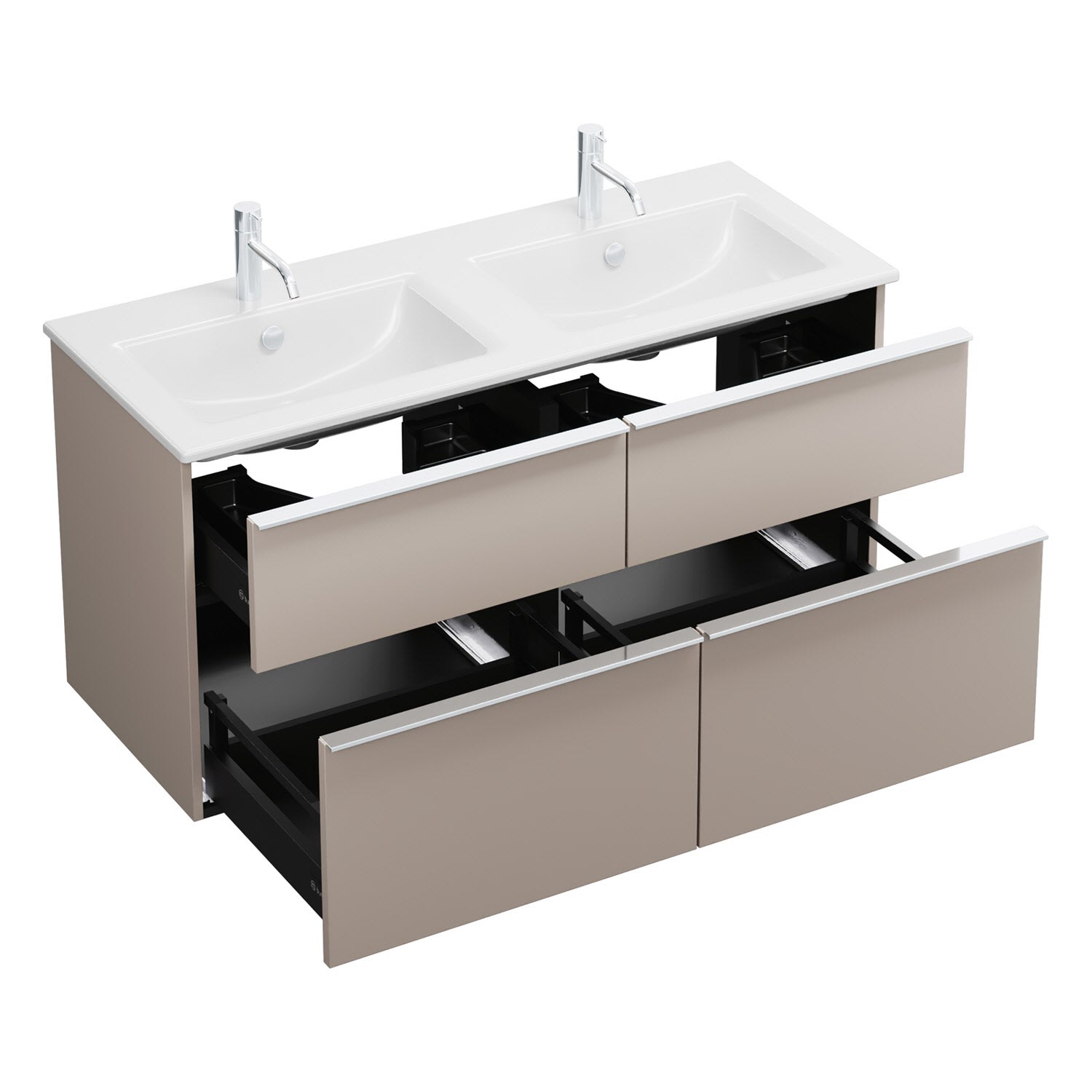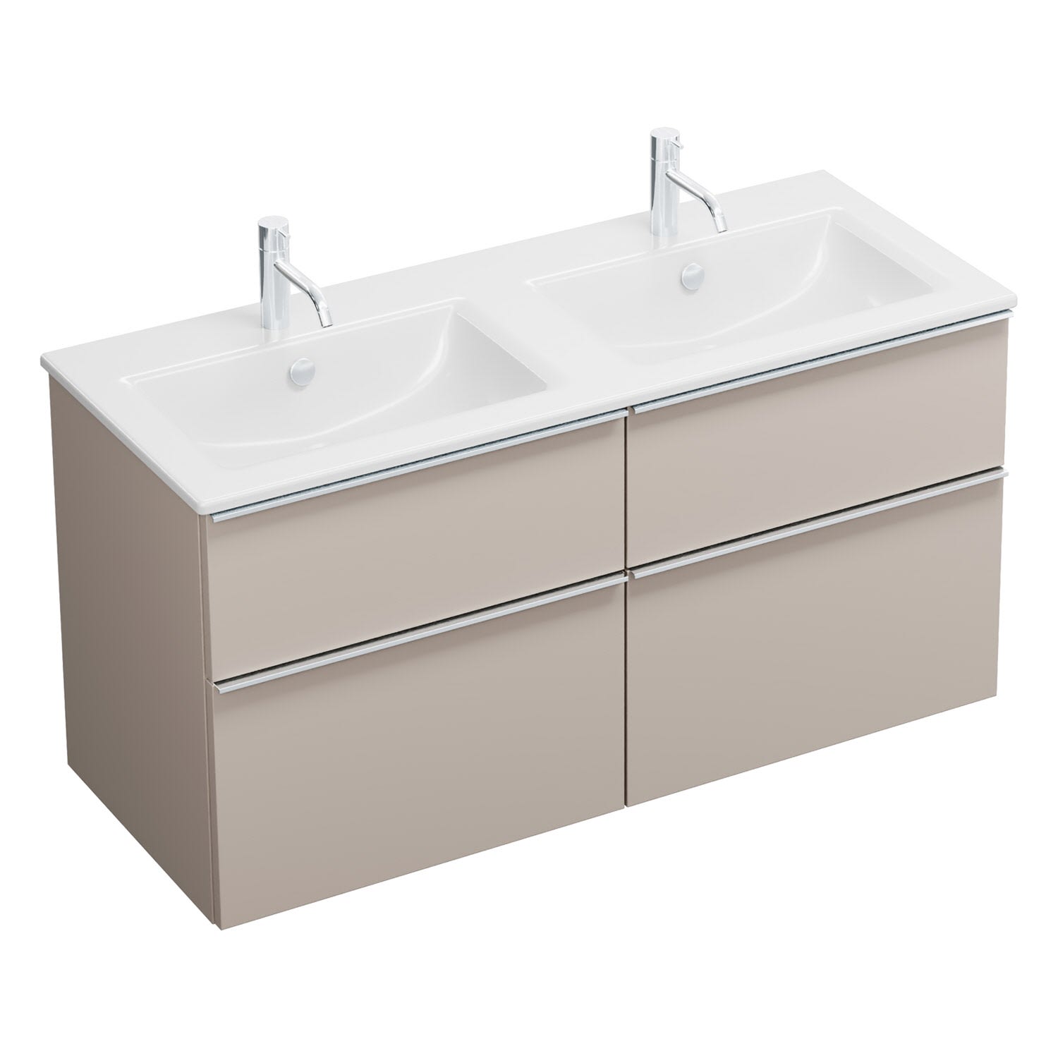 burgbad Eqio Waschtischkombination mit Keramik-Doppelwaschtisch Slim, 122 cm, mit Griffleiste G0251