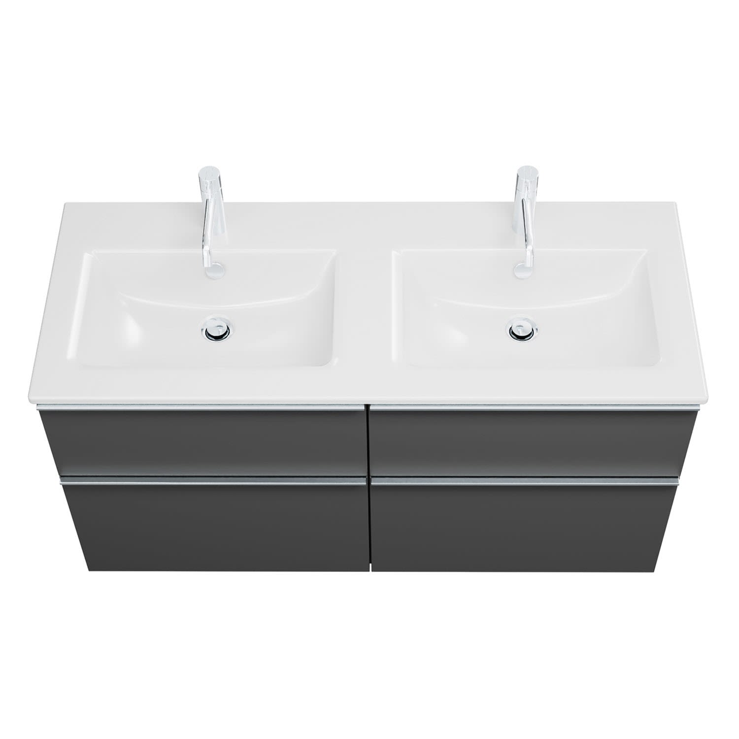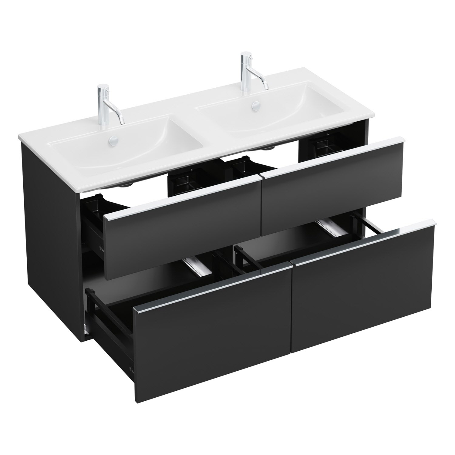 burgbad Eqio Waschtischkombination mit Keramik-Doppelwaschtisch Slim, 122 cm, mit Griffleiste G0251