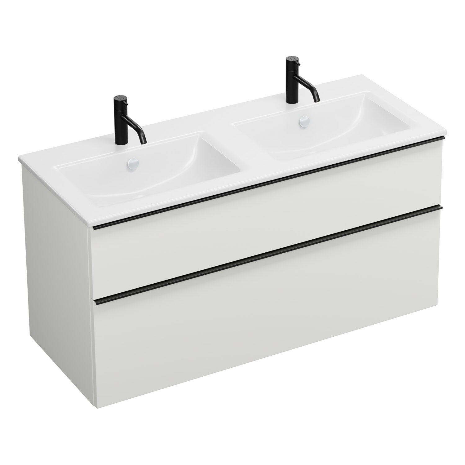 burgbad Eqio Waschtischkombination mit Keramik-Doppelwaschtisch Slim, 122 cm, mit Griffleiste G0252