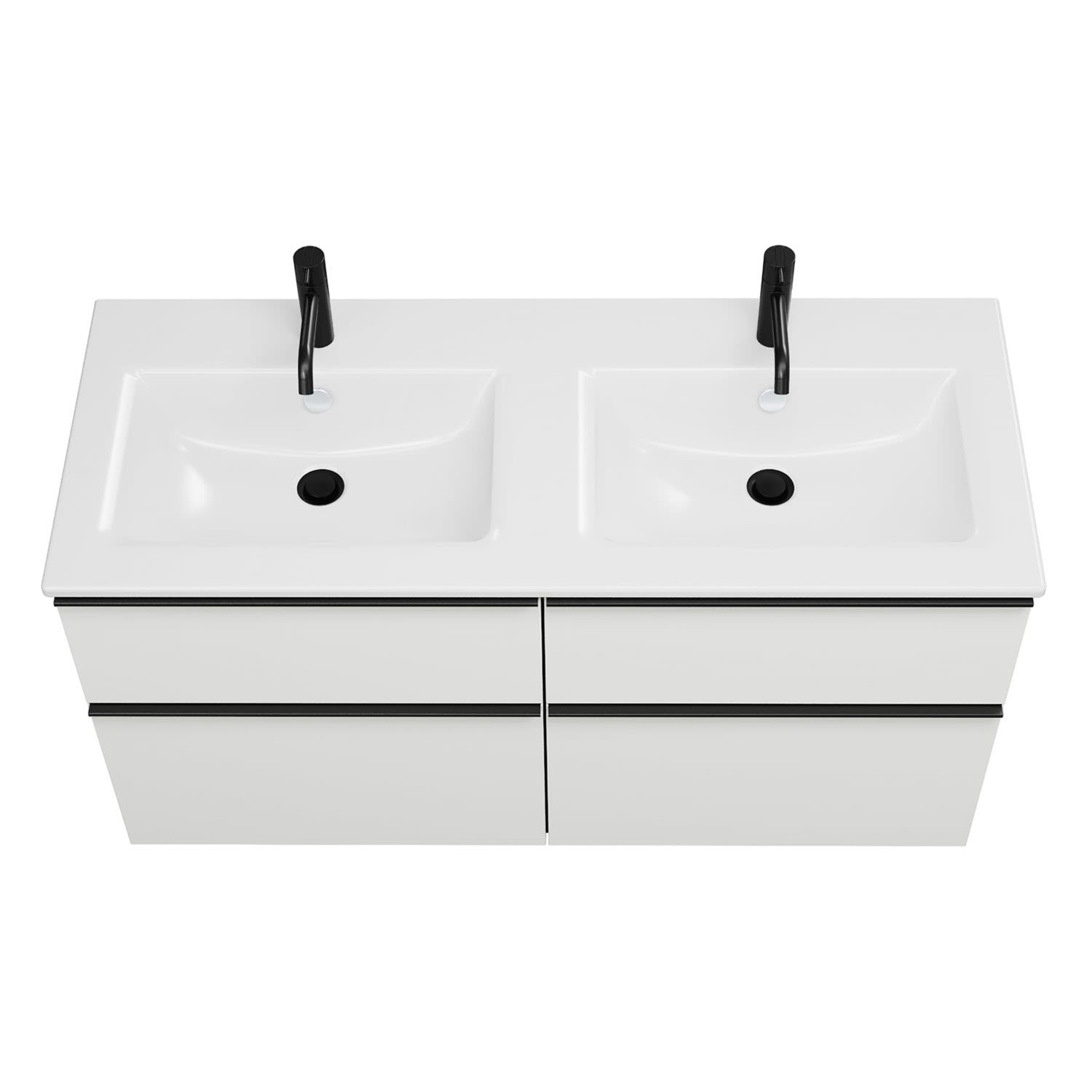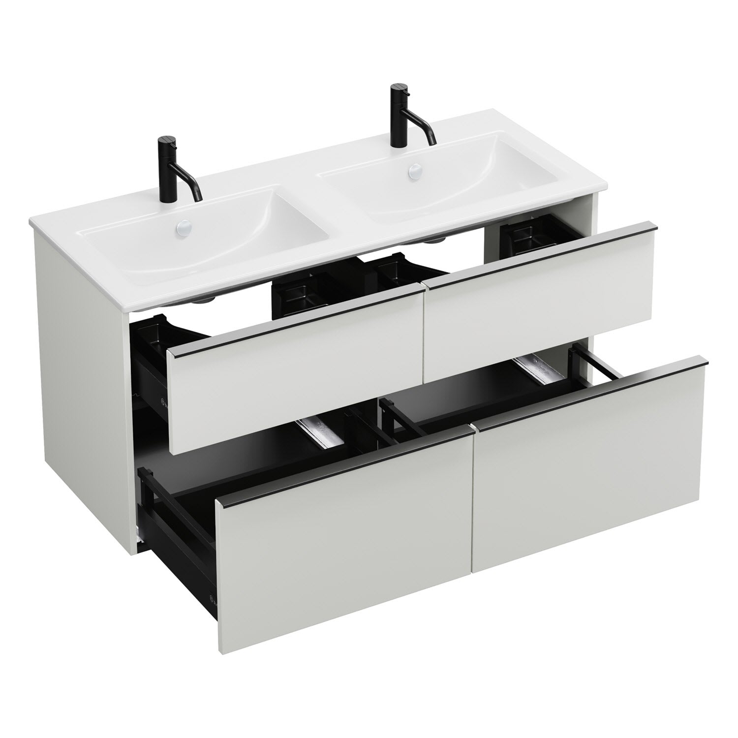 burgbad Eqio Waschtischkombination mit Keramik-Doppelwaschtisch Slim, 122 cm, mit Griffleiste G0252