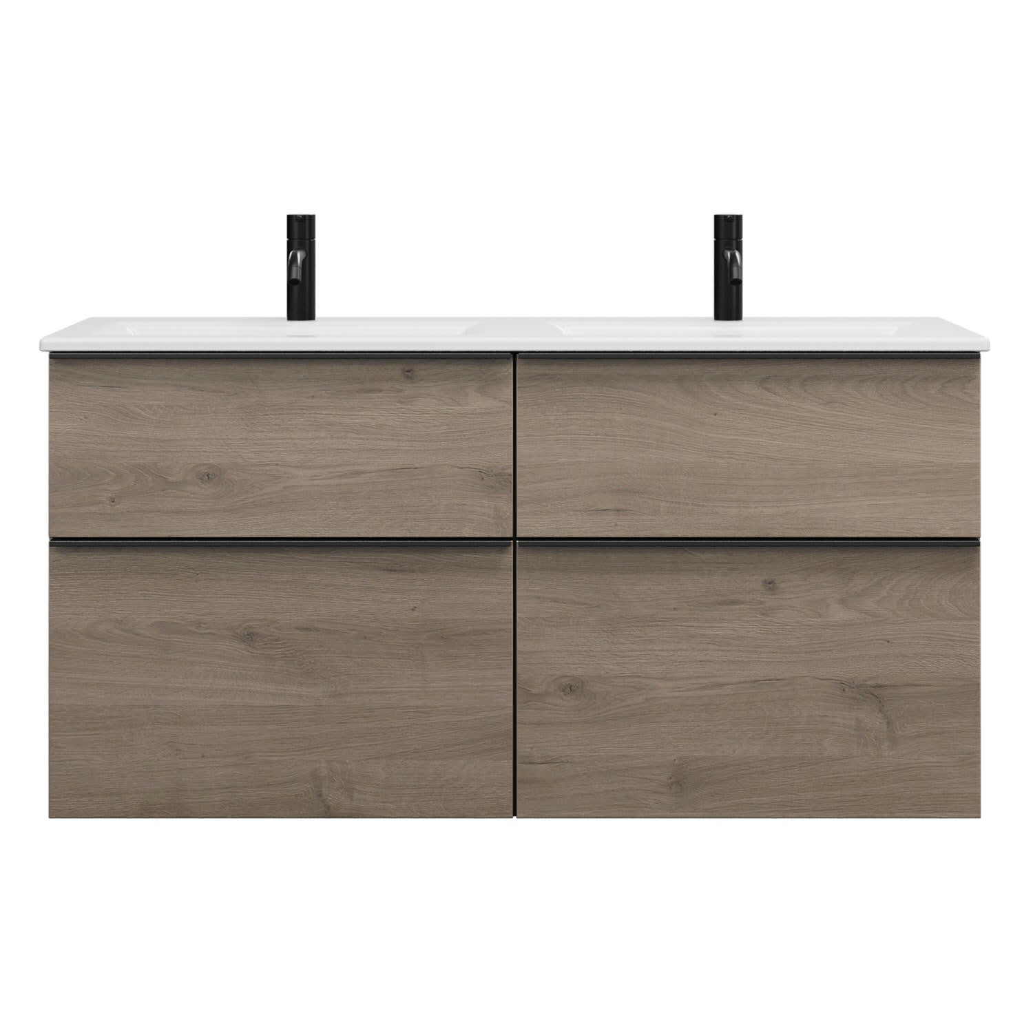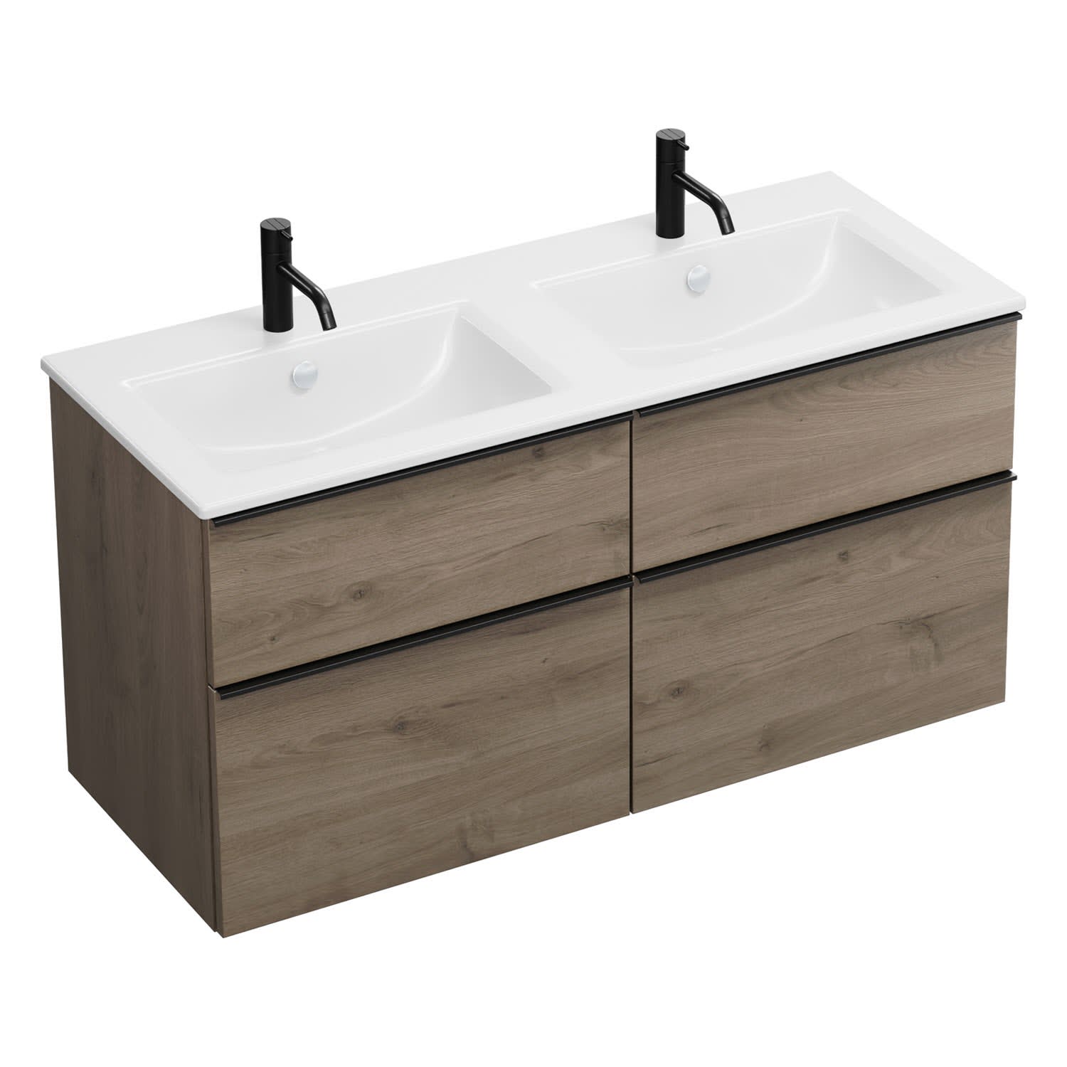 burgbad Eqio Waschtischkombination mit Keramik-Doppelwaschtisch Slim, 122 cm, mit Griffleiste G0252