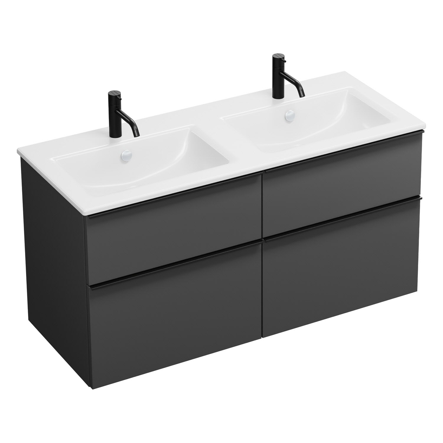 burgbad Eqio Waschtischkombination mit Keramik-Doppelwaschtisch Slim, 122 cm, mit Griffleiste G0252