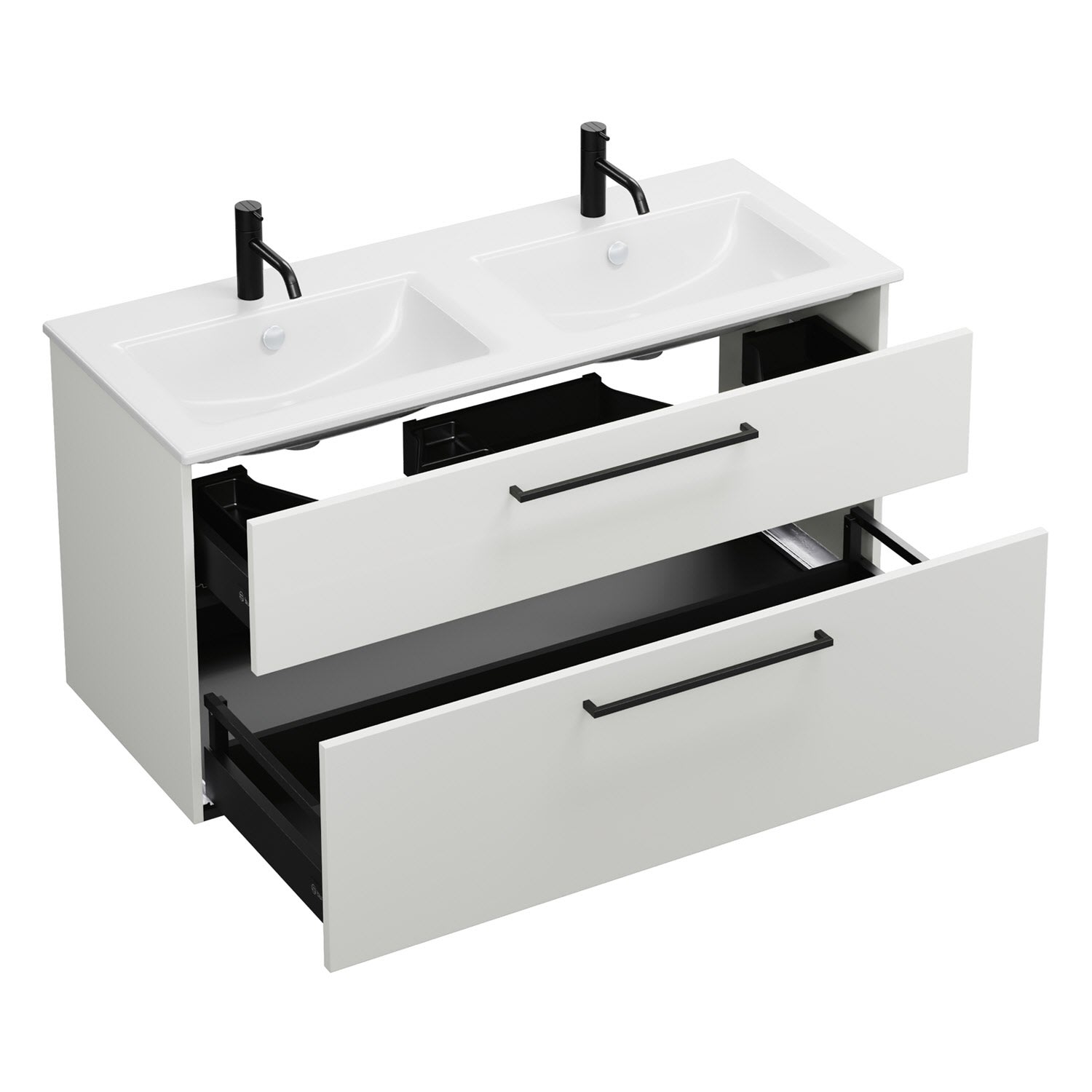 burgbad Eqio Waschtischkombination mit Keramik-Doppelwaschtisch Slim, 122 cm, mit Stangengriff G0234
