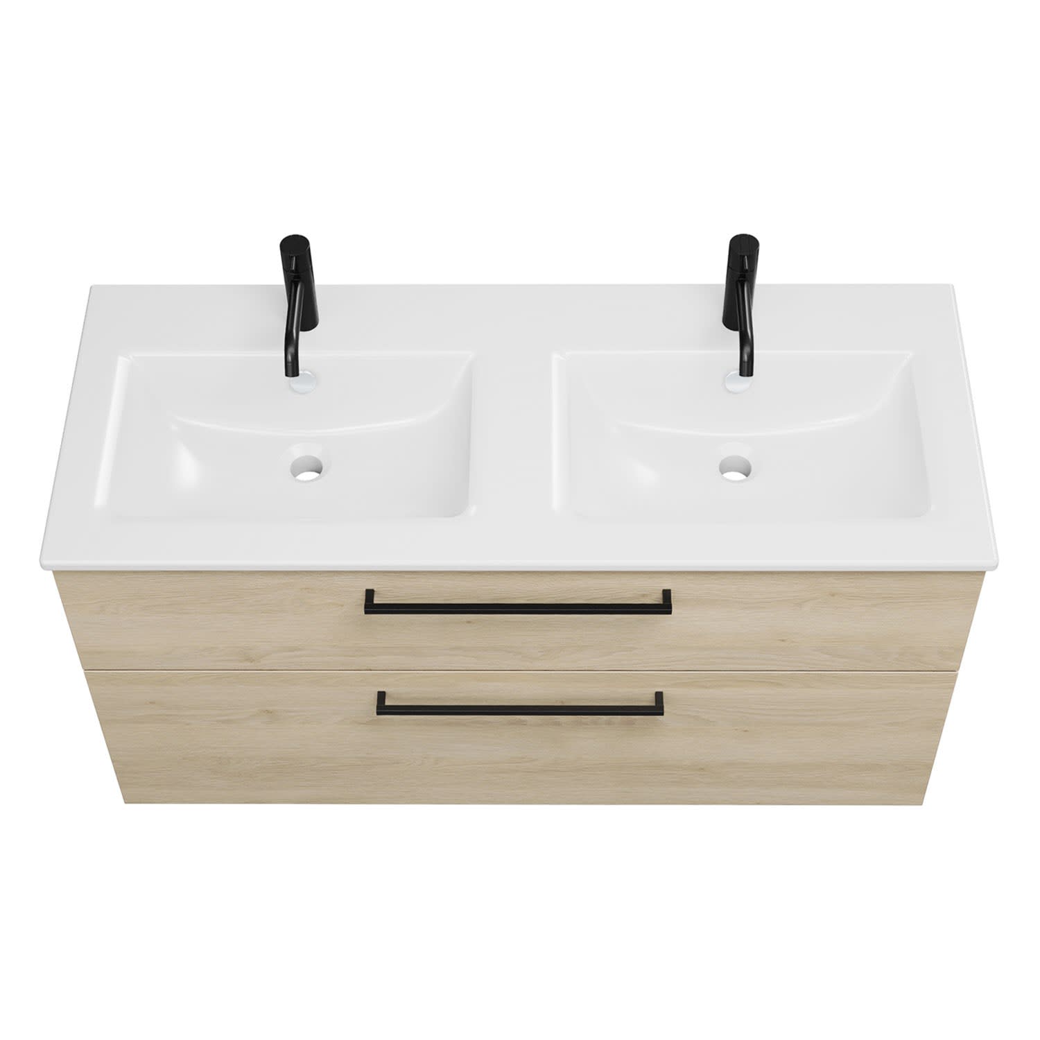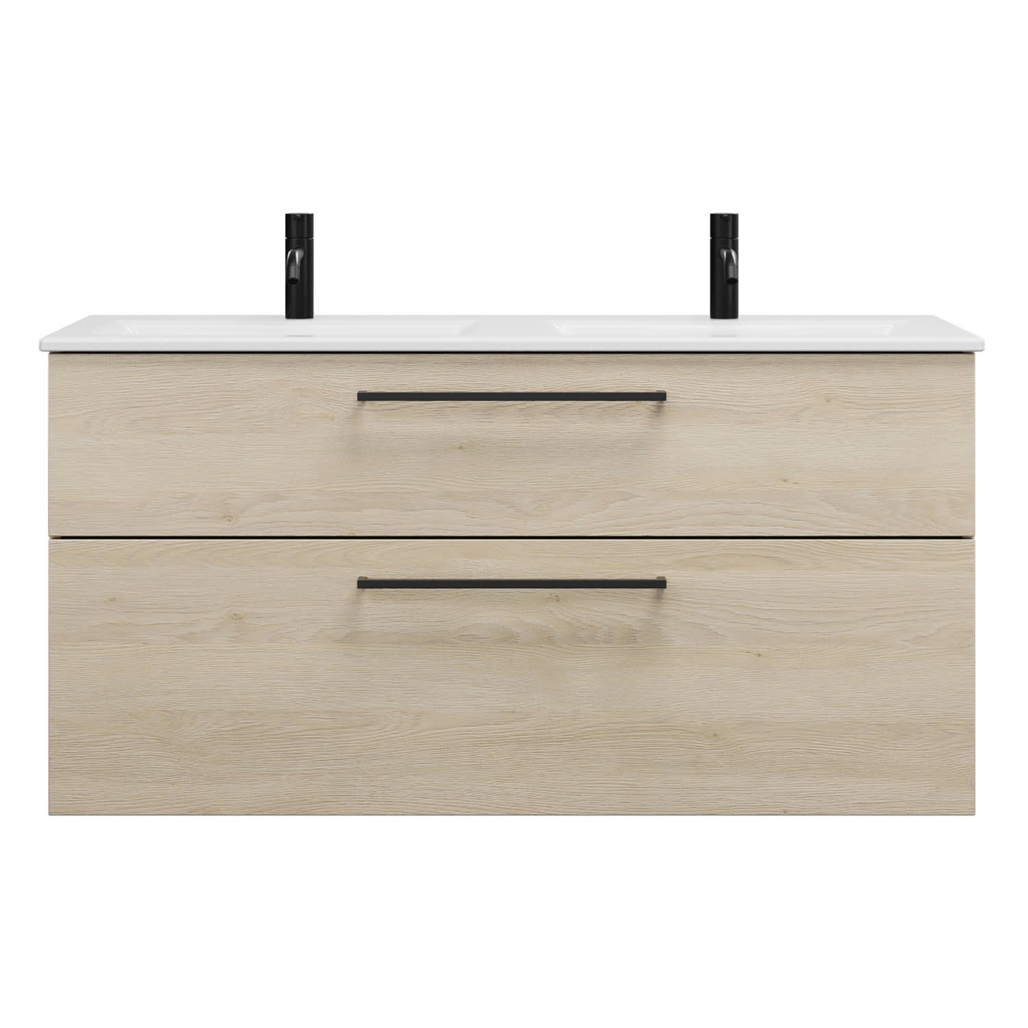 burgbad Eqio Waschtischkombination mit Keramik-Doppelwaschtisch Slim, 122 cm, mit Stangengriff G0234