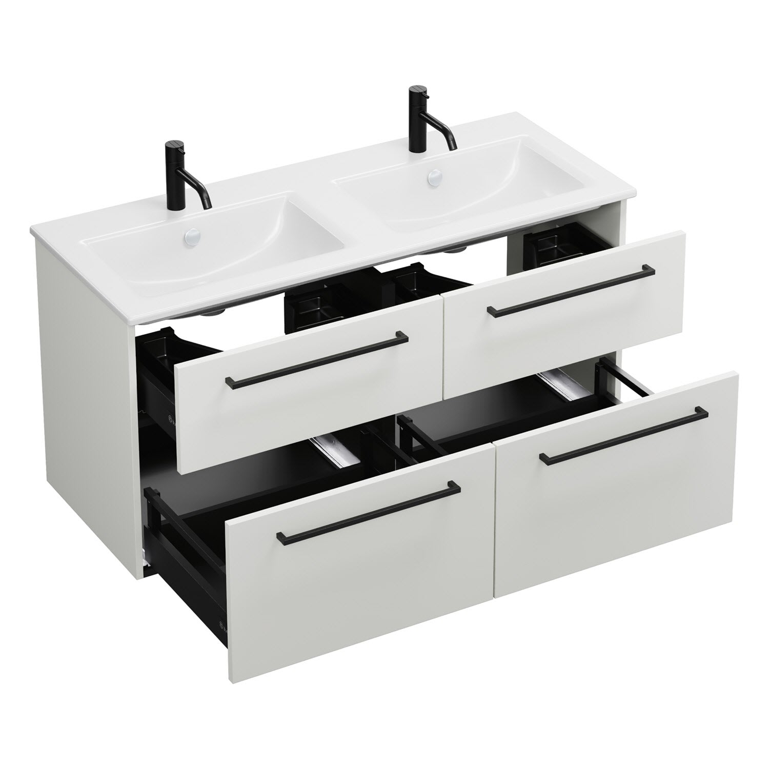 burgbad Eqio Waschtischkombination mit Keramik-Doppelwaschtisch Slim, 122 cm, mit Stangengriff G0234