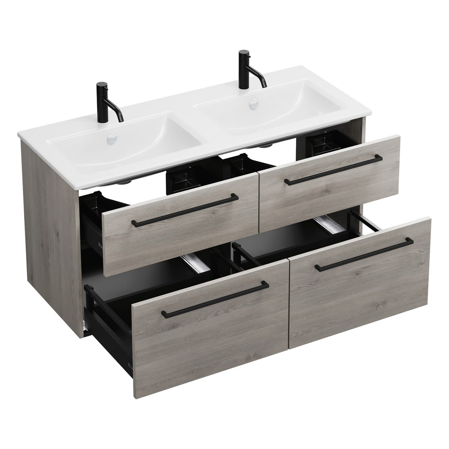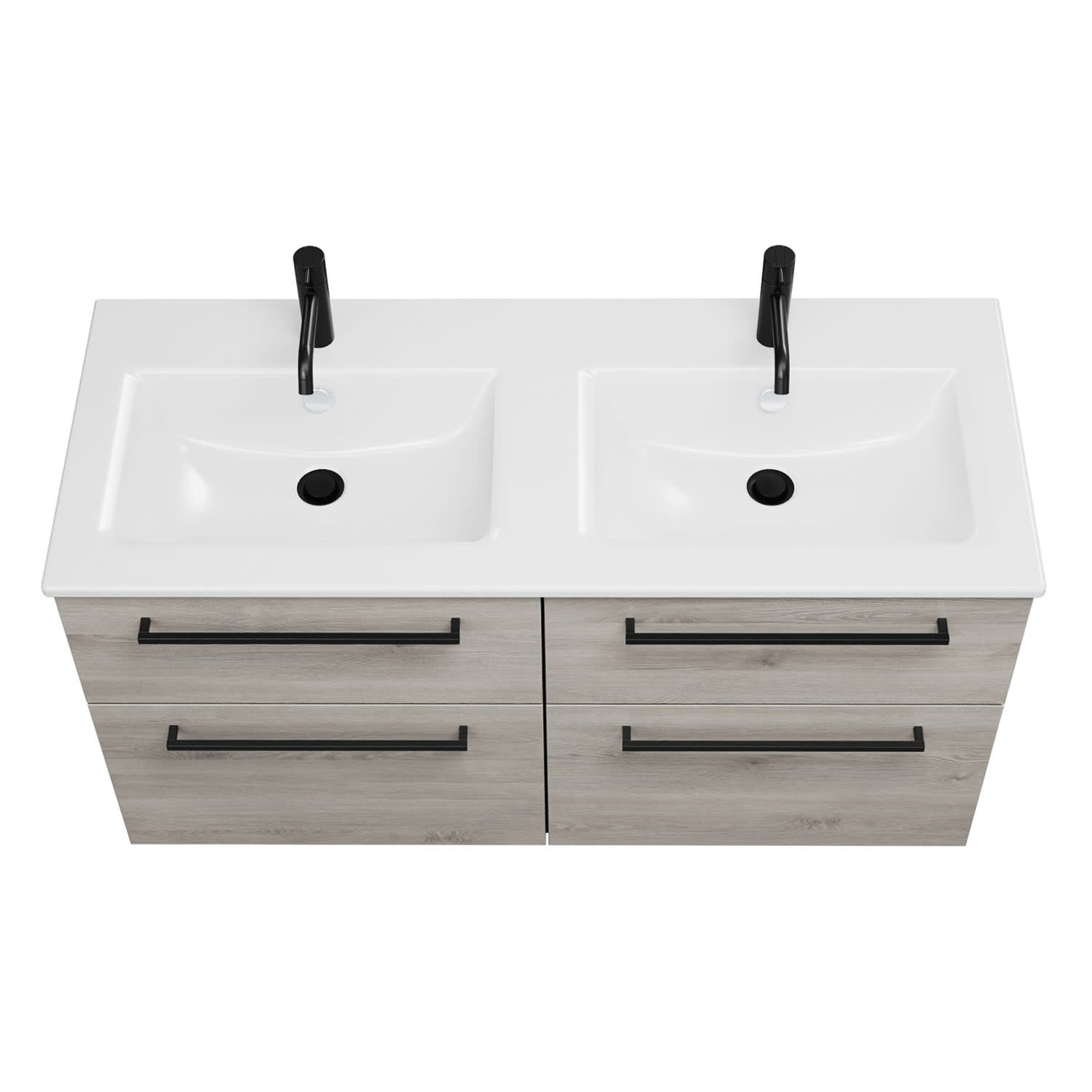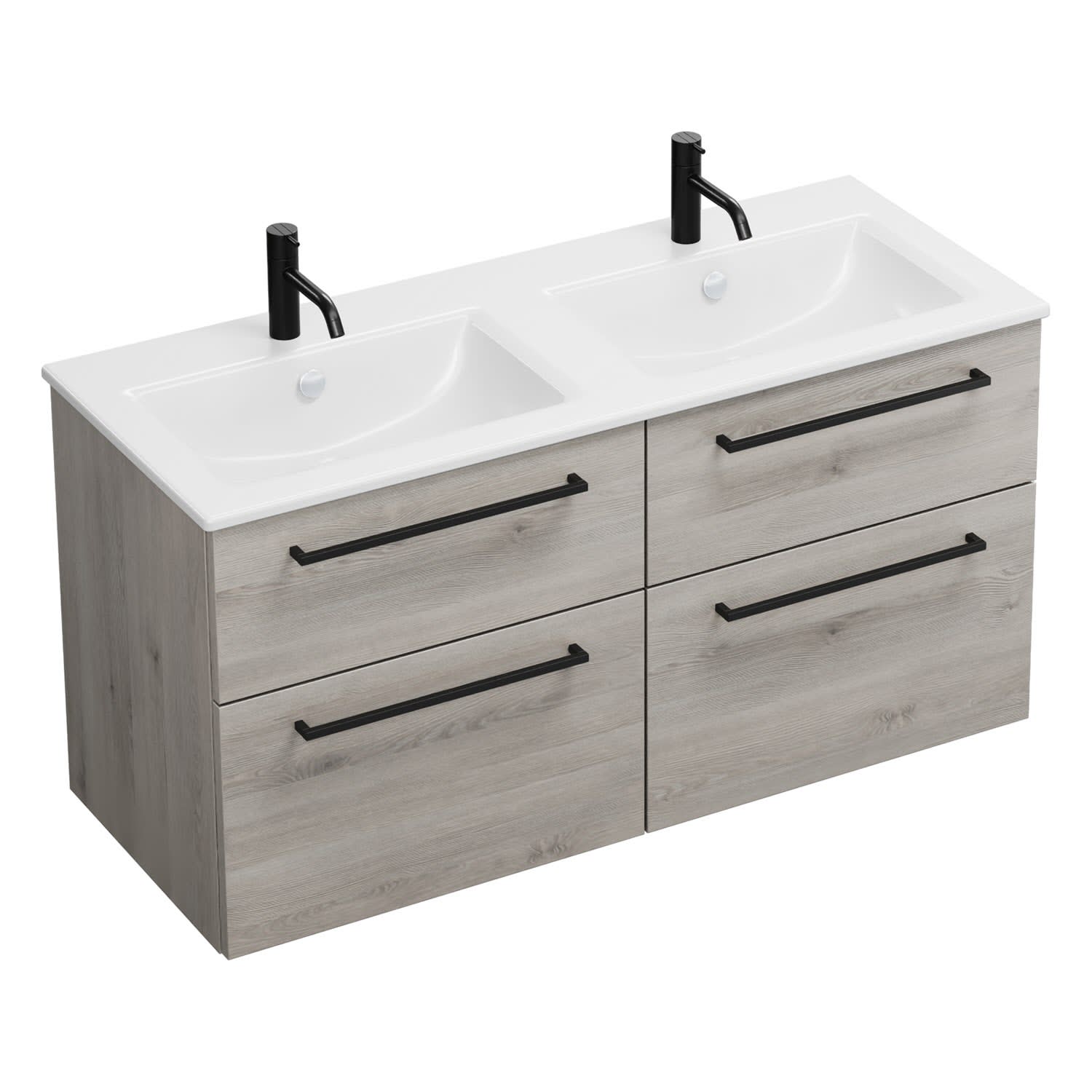 burgbad Eqio Waschtischkombination mit Keramik-Doppelwaschtisch Slim, 122 cm, mit Stangengriff G0234