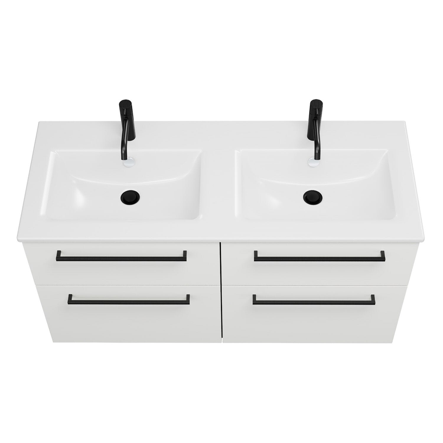 burgbad Eqio Waschtischkombination mit Keramik-Doppelwaschtisch Slim, 122 cm, mit Stangengriff G0234