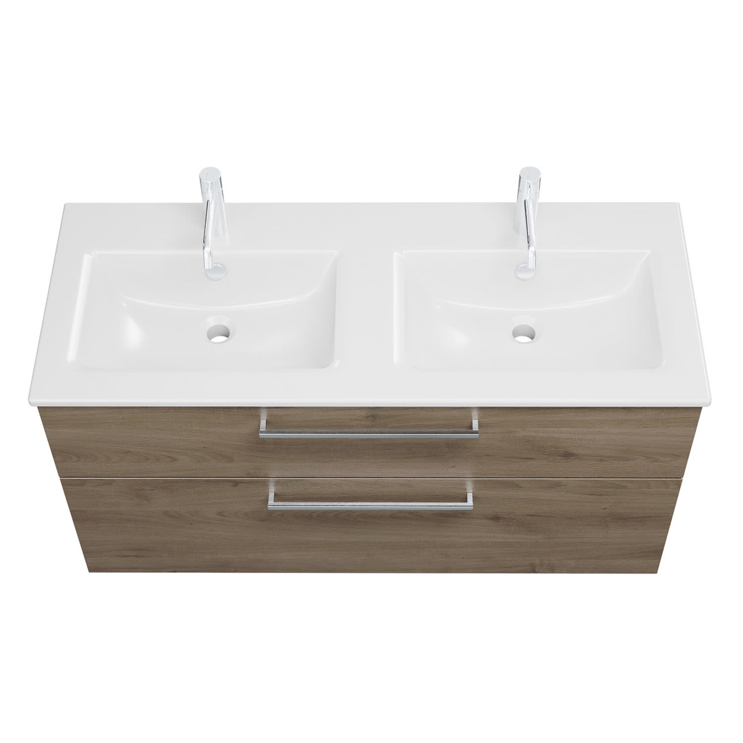 burgbad Eqio Waschtischkombination mit Keramik-Doppelwaschtisch Slim, 122 cm, mit Stangengriff P95