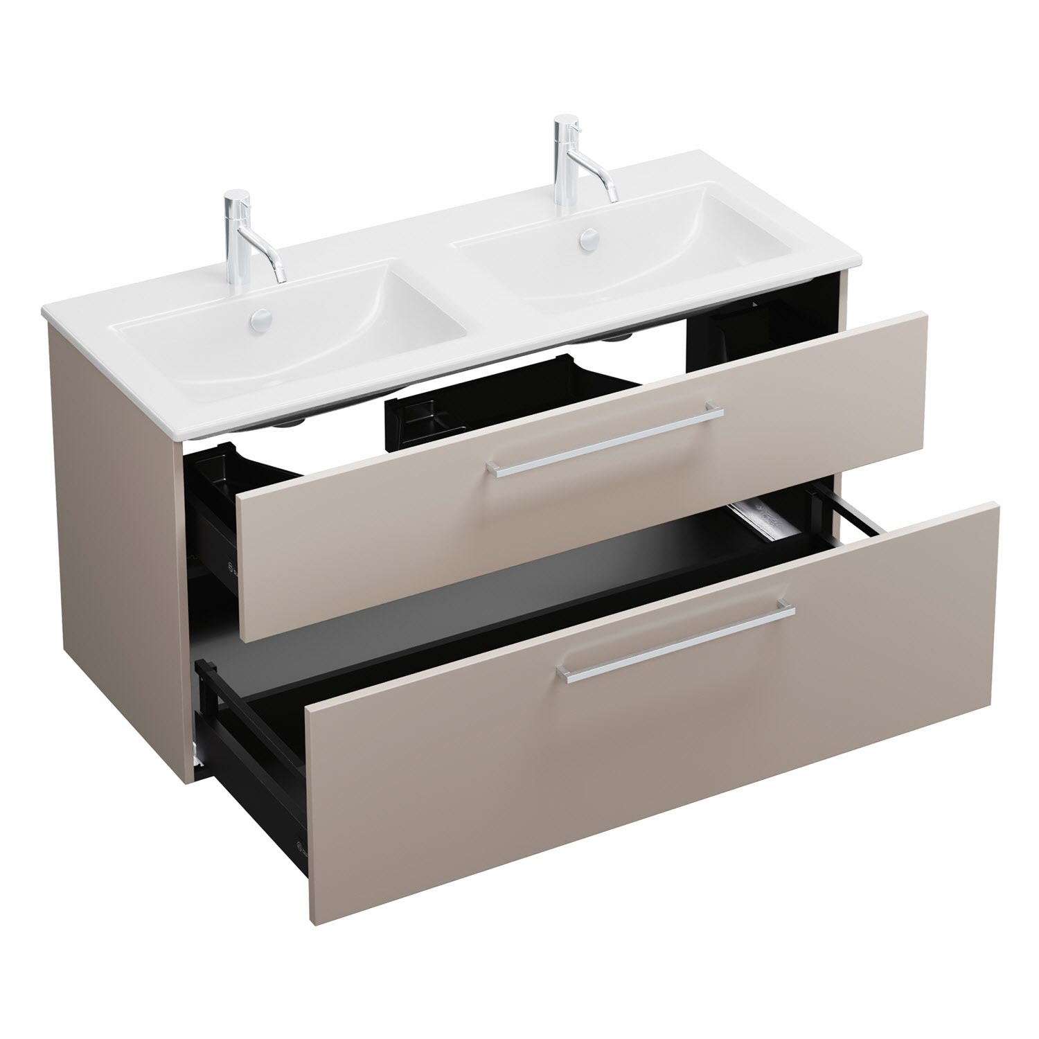 burgbad Eqio Waschtischkombination mit Keramik-Doppelwaschtisch Slim, 122 cm, mit Stangengriff P95