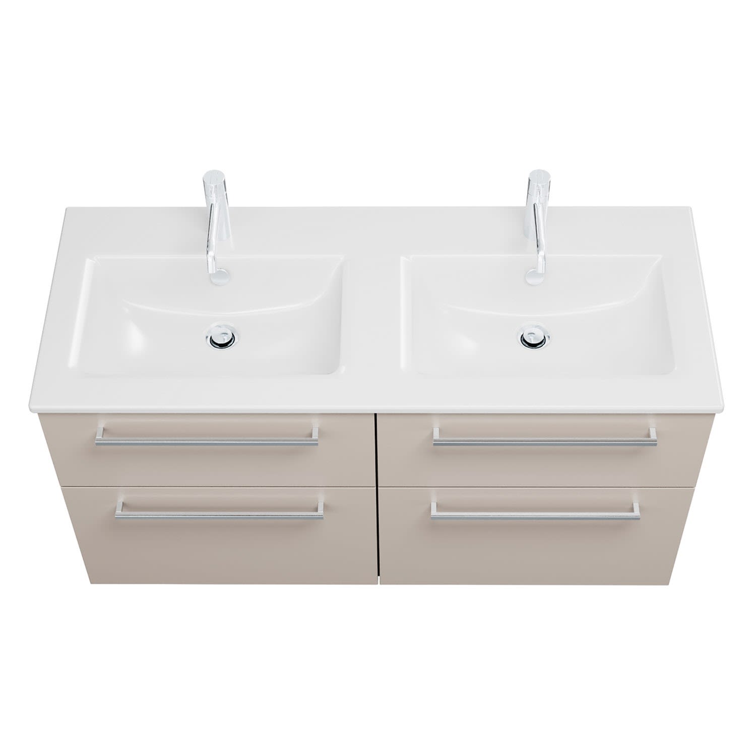 burgbad Eqio Waschtischkombination mit Keramik-Doppelwaschtisch Slim, 122 cm, mit Stangengriff P95