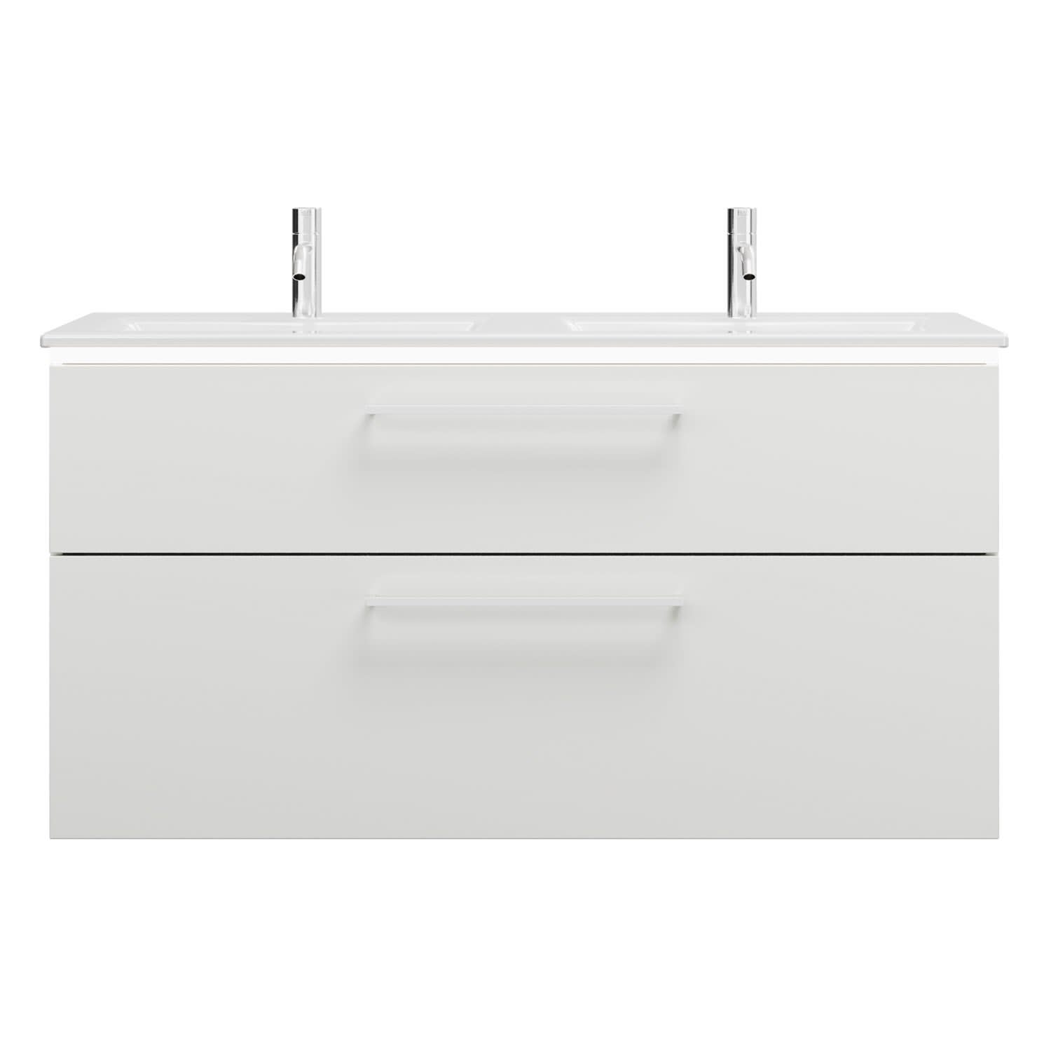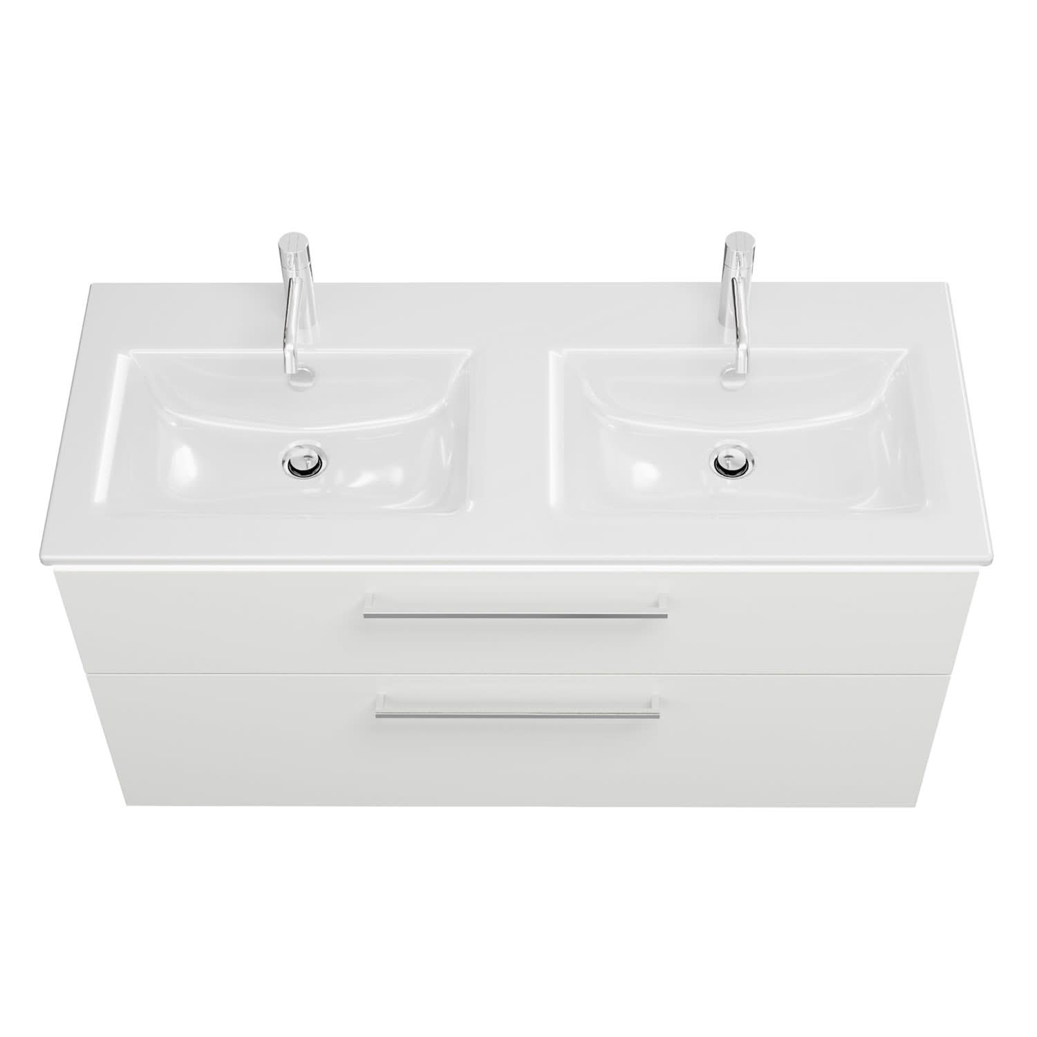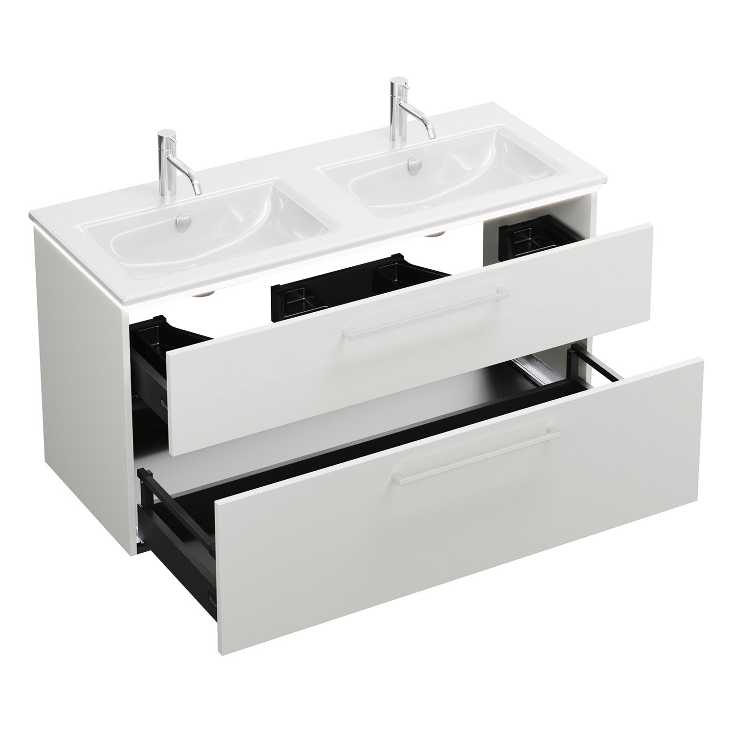burgbad Eqio Doppelwaschtischkombination mit Keramik-Doppelwaschtisch Slim und LED-Beleuchtung, 122 cm, mit Stangengriff P95