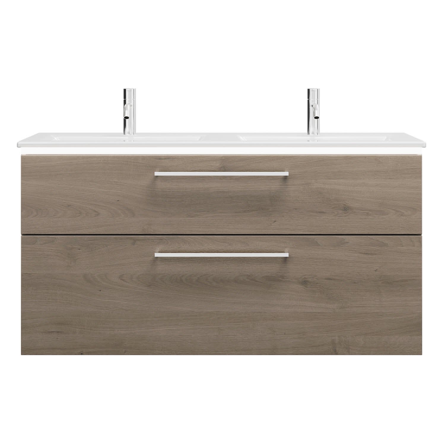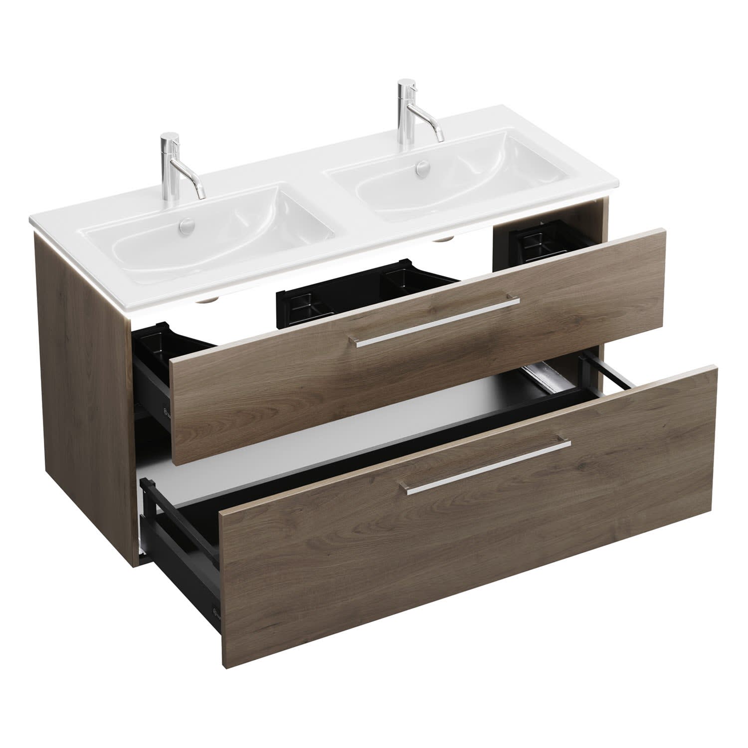 burgbad Eqio Doppelwaschtischkombination mit Keramik-Doppelwaschtisch Slim und LED-Beleuchtung, 122 cm, mit Stangengriff P95