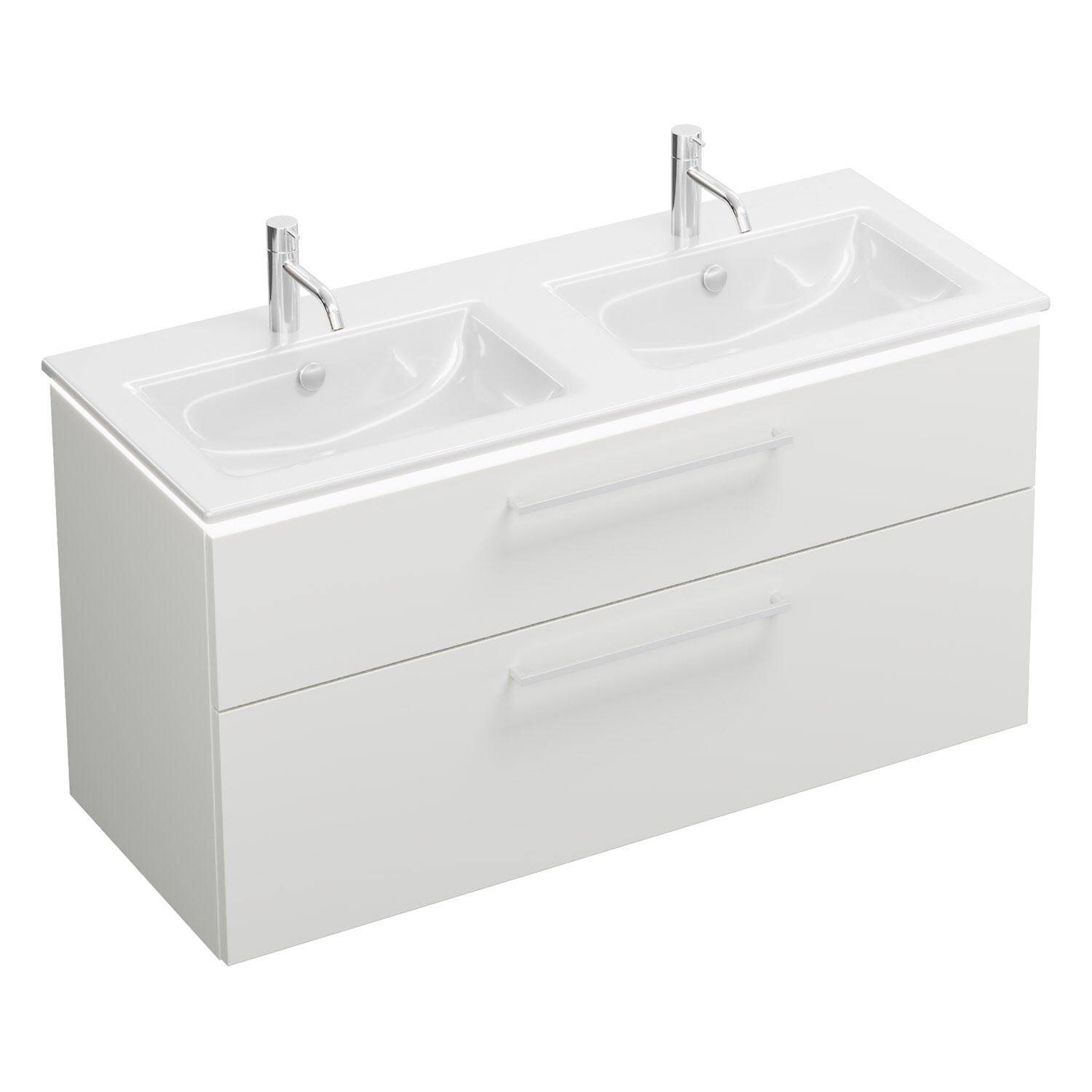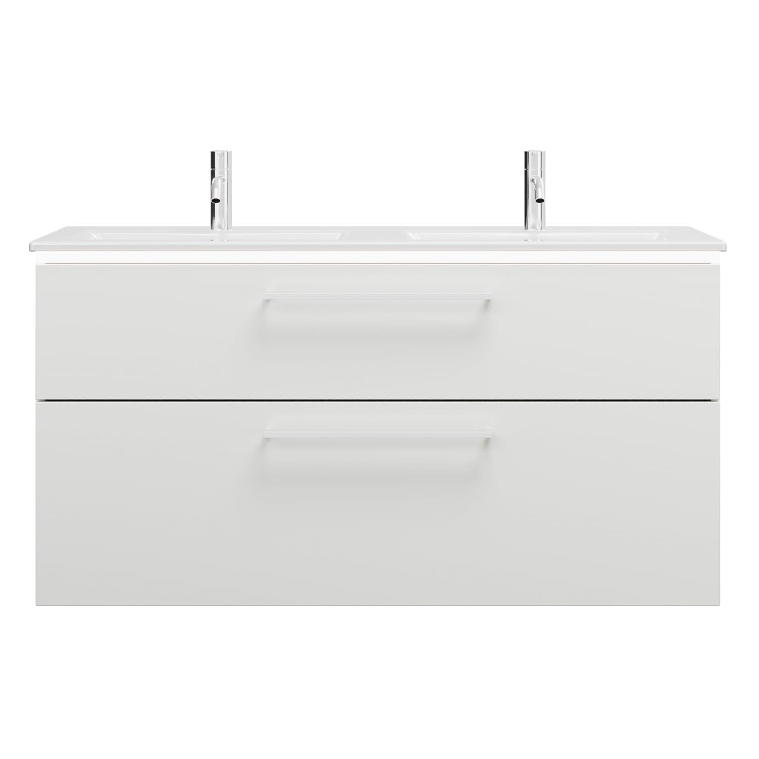 burgbad Eqio Doppelwaschtischkombination mit Keramik-Doppelwaschtisch Slim und LED-Beleuchtung, 122 cm, mit Stangengriff P95